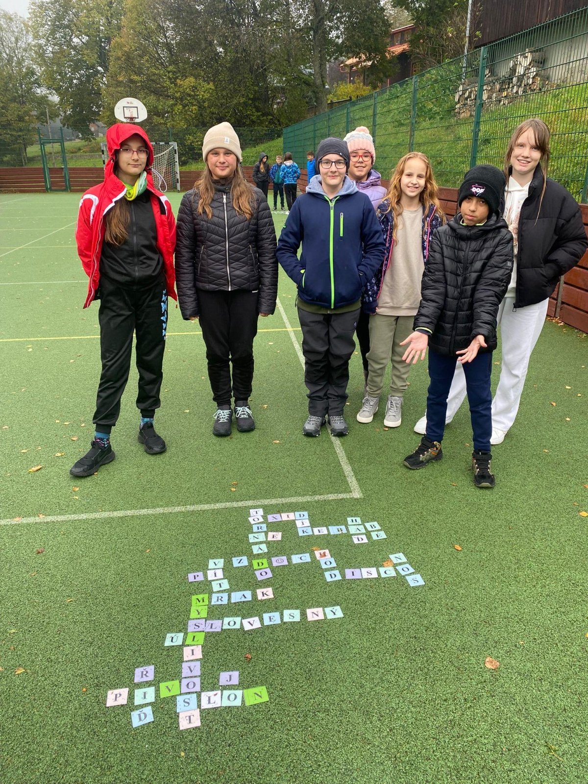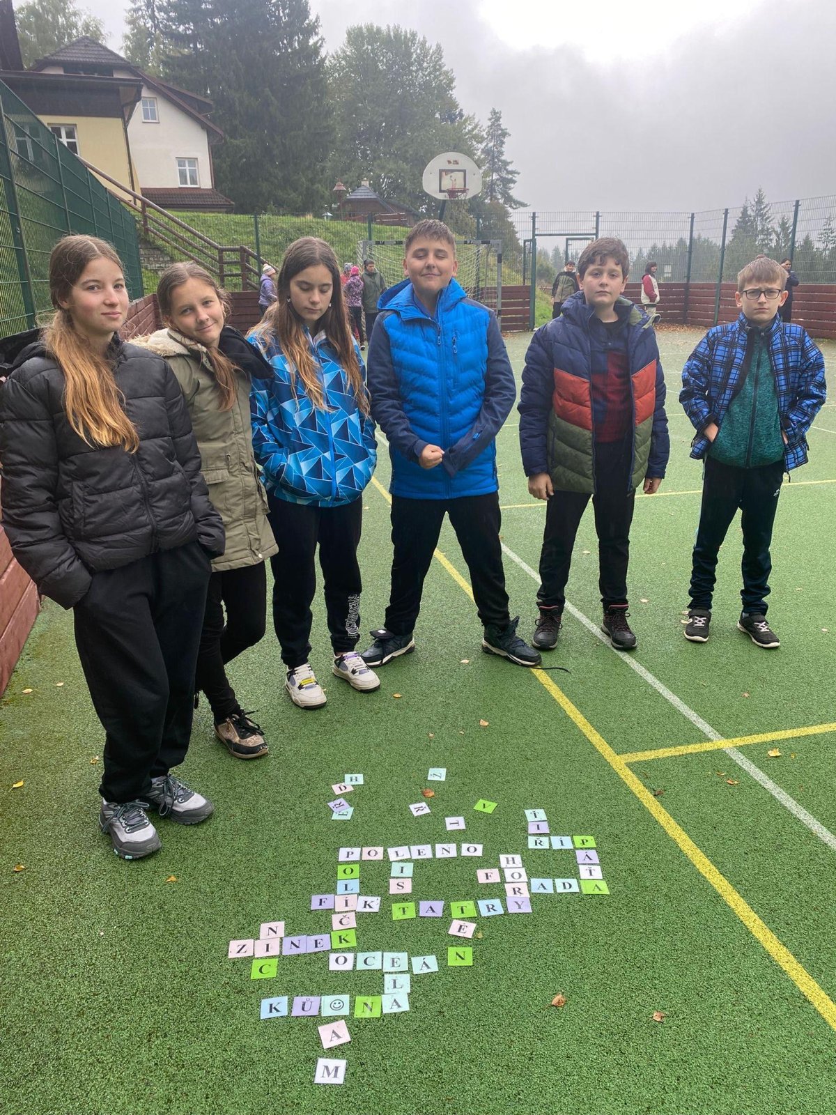 Během odpoledne jsme si stihli zahrát také několik venkovních her doslova mezi vodními kapkami – jako by nás provázel samotný vodní živel. Zahráli jsme si zábavný živý scrabble, kde jsme běhali, sbírali písmena a skládali slova, a také napínavou přebíhanou mezi živly, při které jsme se museli rychle rozhodovat a dávat pozor, aby nás “živly” nechytily.