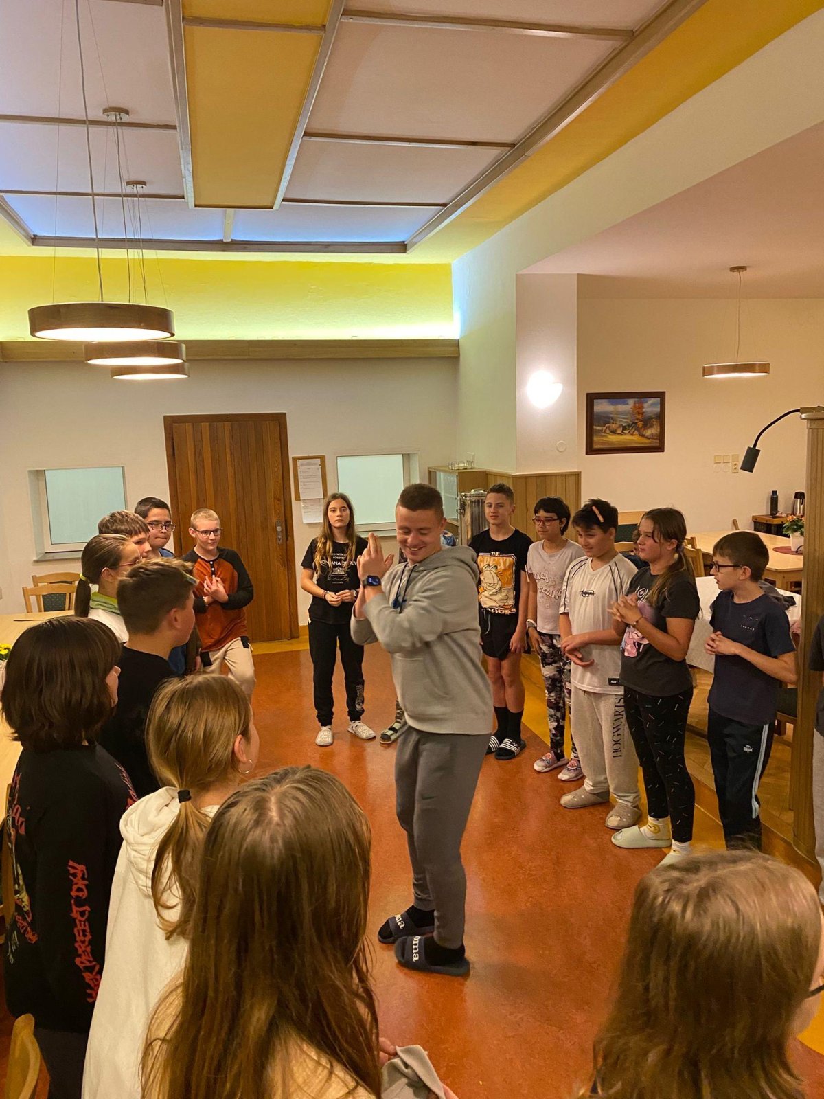Po večeři nastal velký okamžik – předváděli jsme své rituální tance a pokřiky, které jsme celý den připravovali. Poté jsme hráli několik zábavných seznamovacích her, při kterých jsme se o sobě dozvěděli zase něco nového. Večer jsme zakončili veselou tančírnou, kde jsme se pořádně vyřádili a užili si spoustu smíchu a pohybu.