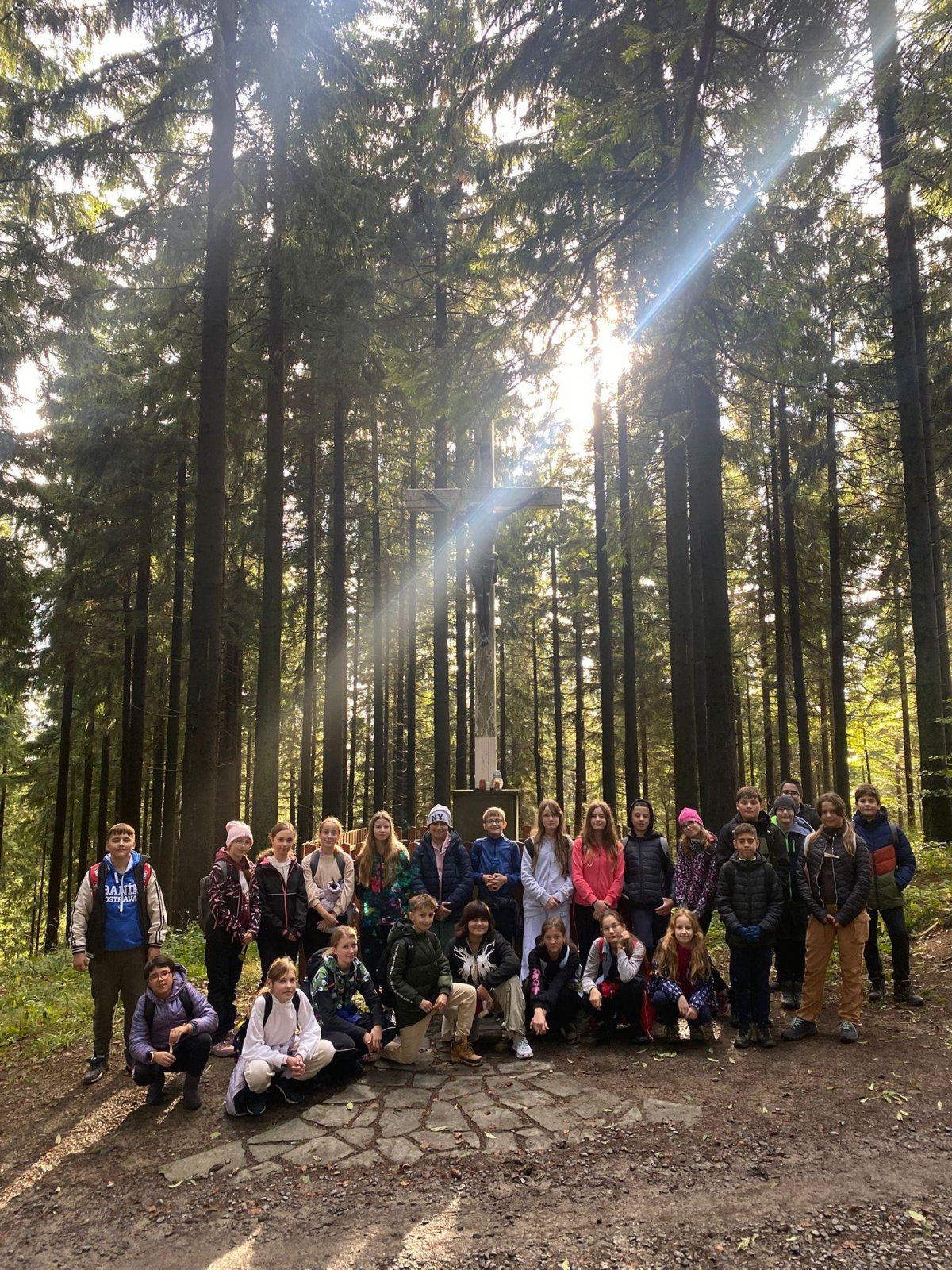 Odpoledne jsme vyrazili na desetikilometrovou túru na Bílý kříž. Cestou jsme podle rozstříhané fotografie hledali její druhou polovinu – museli jsme být pozorní a spolupracovat, abychom ji objevili. Na zpáteční cestě jsme tvořili živé obrazy z přírodních materiálů, což nás hodně bavilo a vznikly z toho opravdu originální výtvory.
