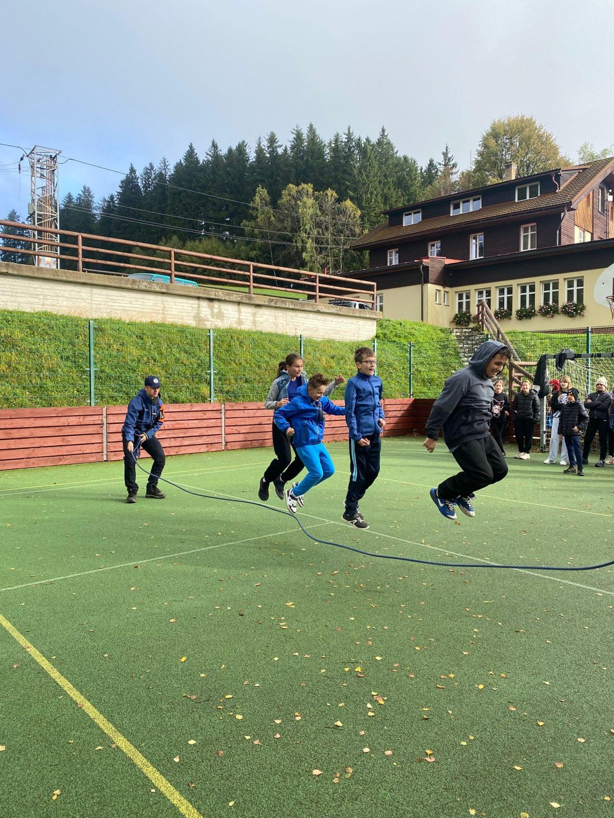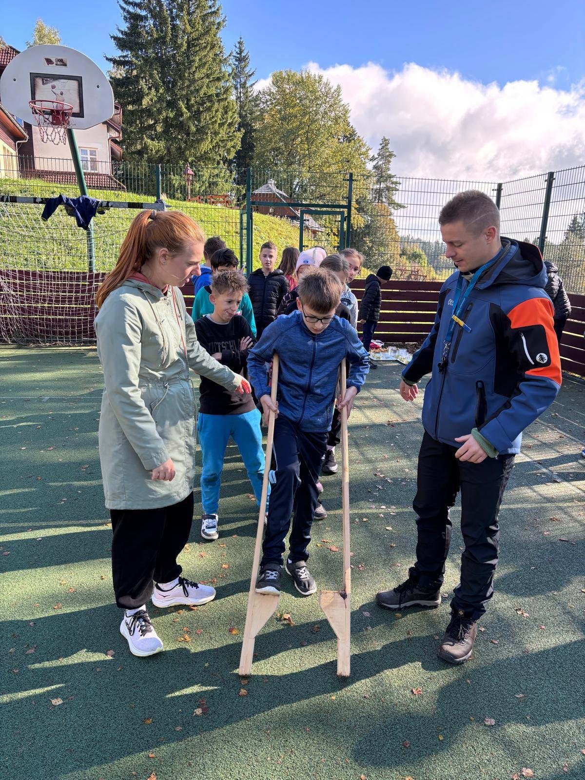 Dopoledne jsme strávili na čerstvém vzduchu sportovními aktivitami. Skákali jsme přes lano, hráli jsme kámen, nůžky, papír, vyzkoušeli jsme si chůzi na chůdách a nechyběl ani malý, ale velmi napínavý fotbalový zápas. Během her jsme se hodně nasmáli, fandili si a podporovali se navzájem – některé disciplíny byly pořádnou výzvou, ale zvládli jsme je skvěle.