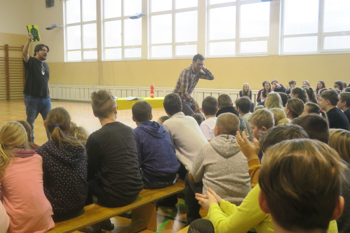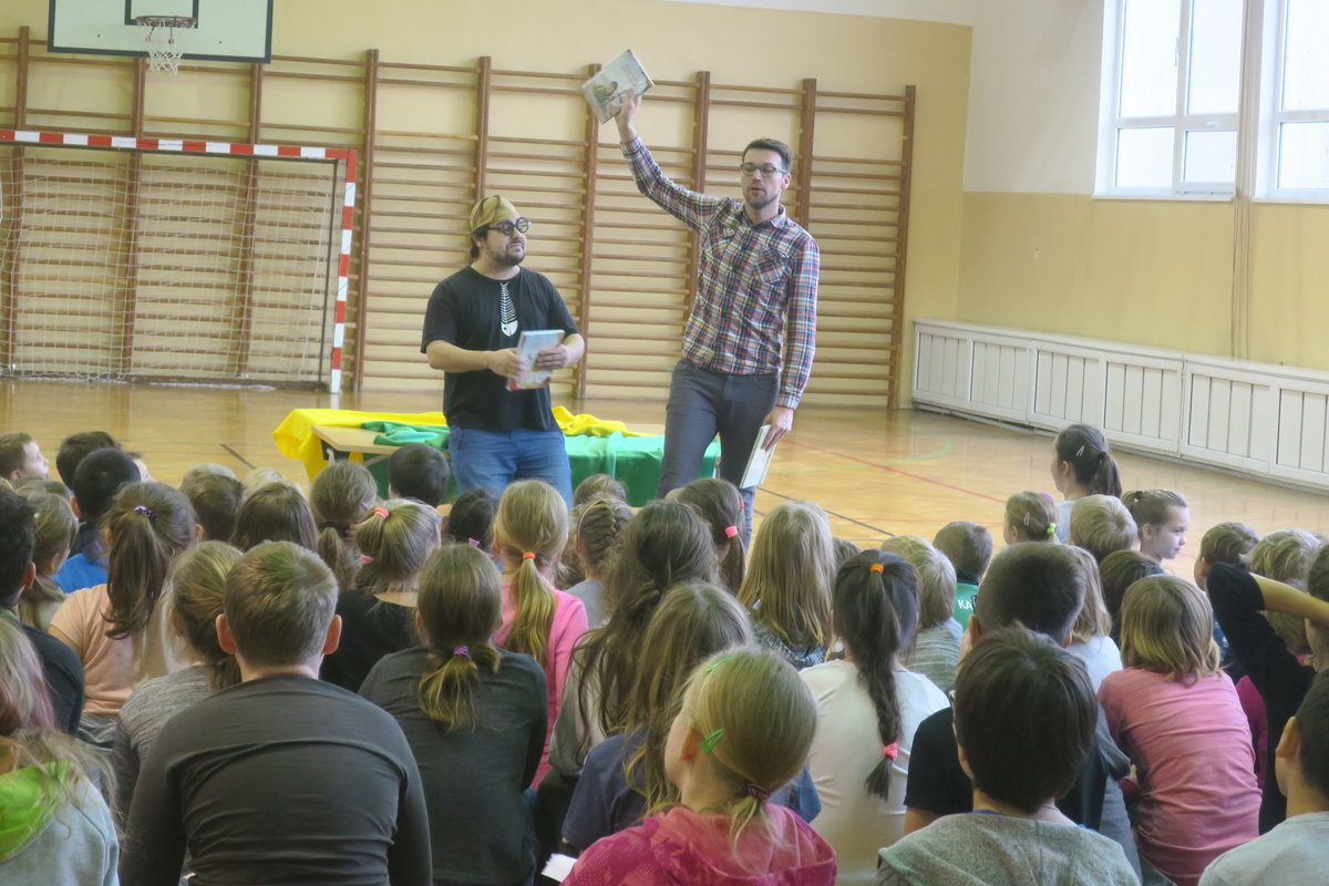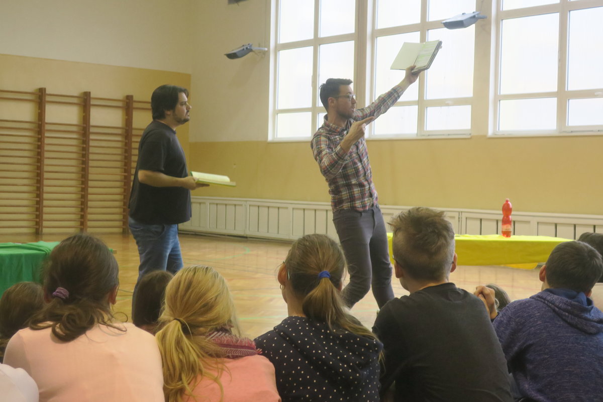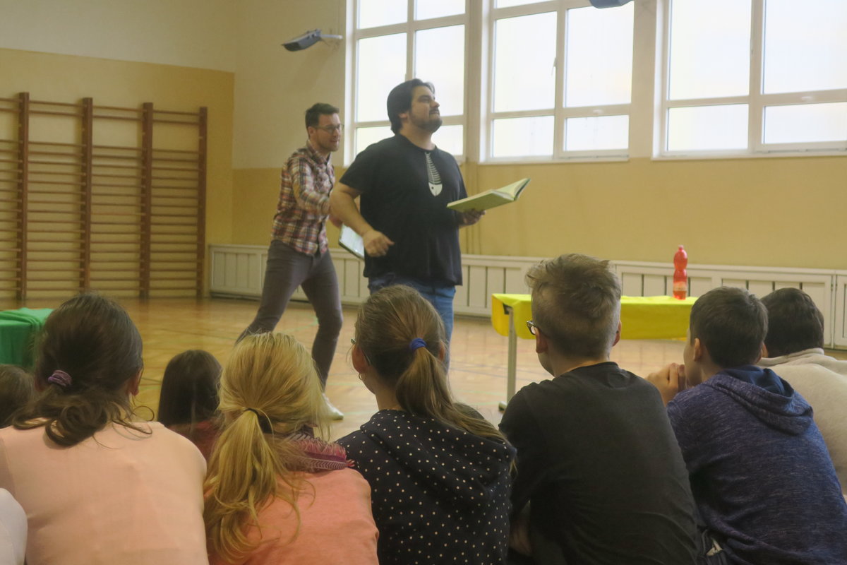 Čtvrtek 1. 2. 2018 zpříjemnil žákům i pedagogům ve škole svou návštěvou herec a režisér Lukáš Hejlík. Známý je např. ze seriálů Ošklivka Katka nebo Ordinace v růžové zahradě. Se svým kolegou Alanem Novotným nejprve vtáhl v rámci LISTOVÁNÍ menší děti do Dobrodružství strýčka Ludvíka, aby se následně proběhl se staršími žáky jako Usain Bolt. Cílem divadelních představení s knížkou v ruce je propagovat čtenářství a tím i sebevzdělávání.