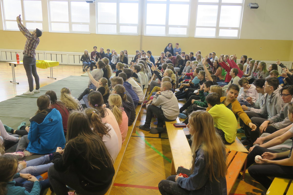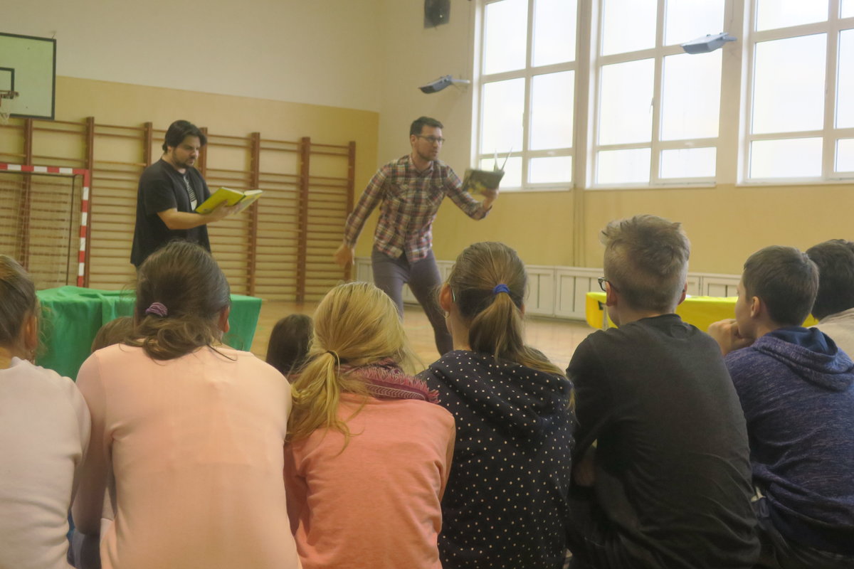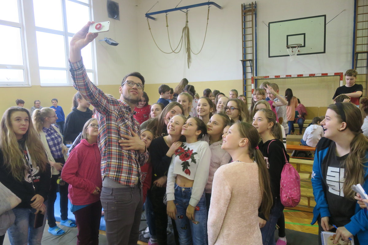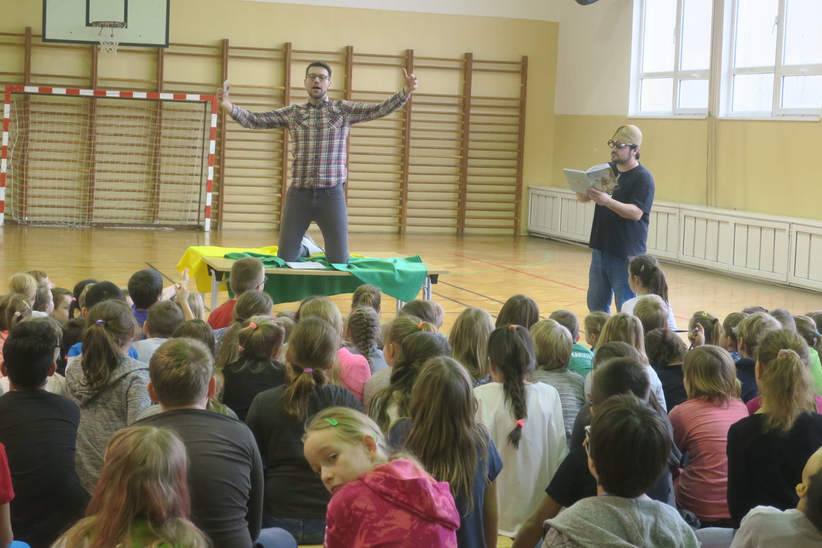 Čtvrtek 1. 2. 2018 zpříjemnil žákům i pedagogům ve škole svou návštěvou herec a režisér Lukáš Hejlík. Známý je např. ze seriálů Ošklivka Katka nebo Ordinace v růžové zahradě. Se svým kolegou Alanem Novotným nejprve vtáhl v rámci LISTOVÁNÍ menší děti do Dobrodružství strýčka Ludvíka, aby se následně proběhl se staršími žáky jako Usain Bolt. Cílem divadelních představení s knížkou v ruce je propagovat čtenářství a tím i sebevzdělávání.