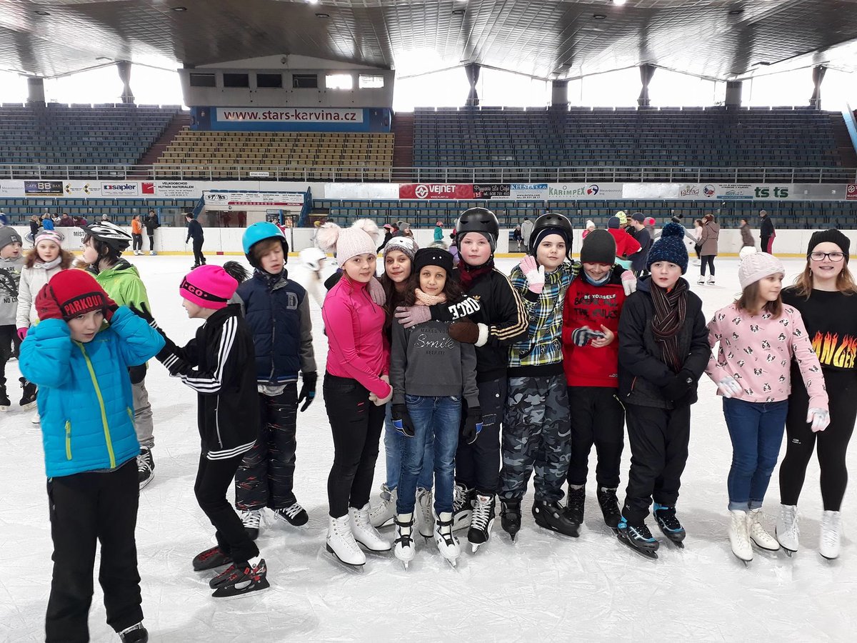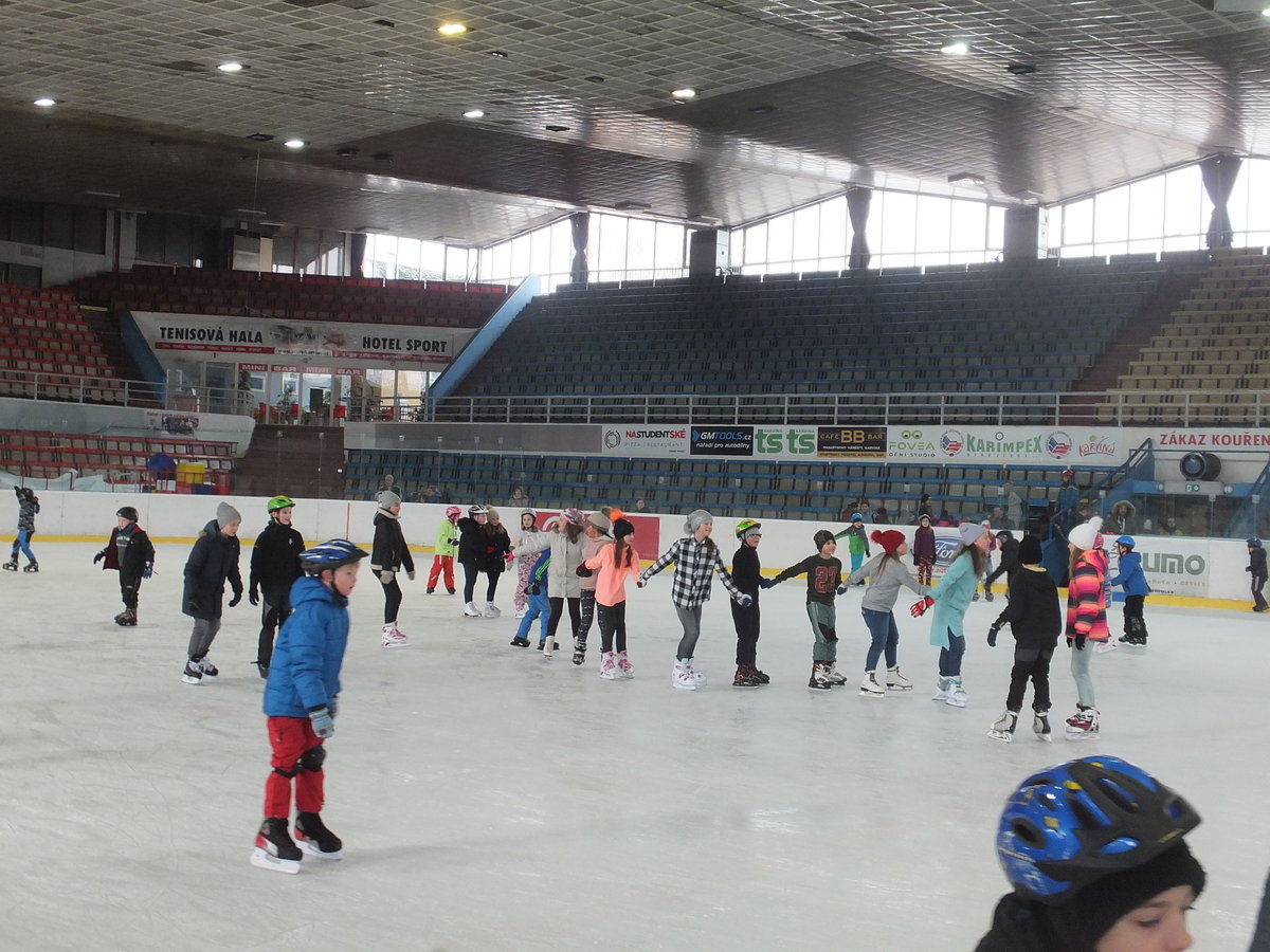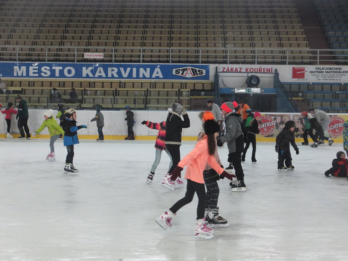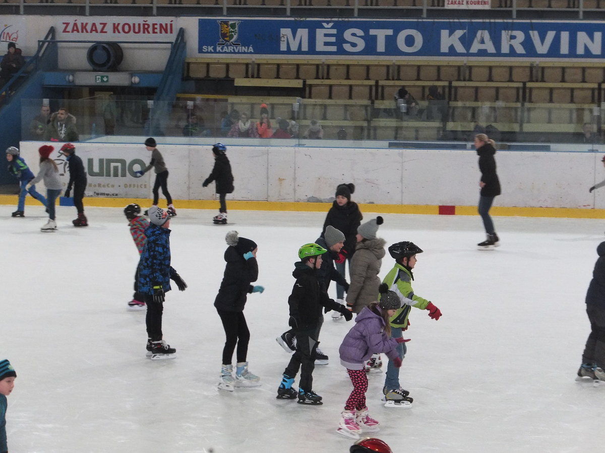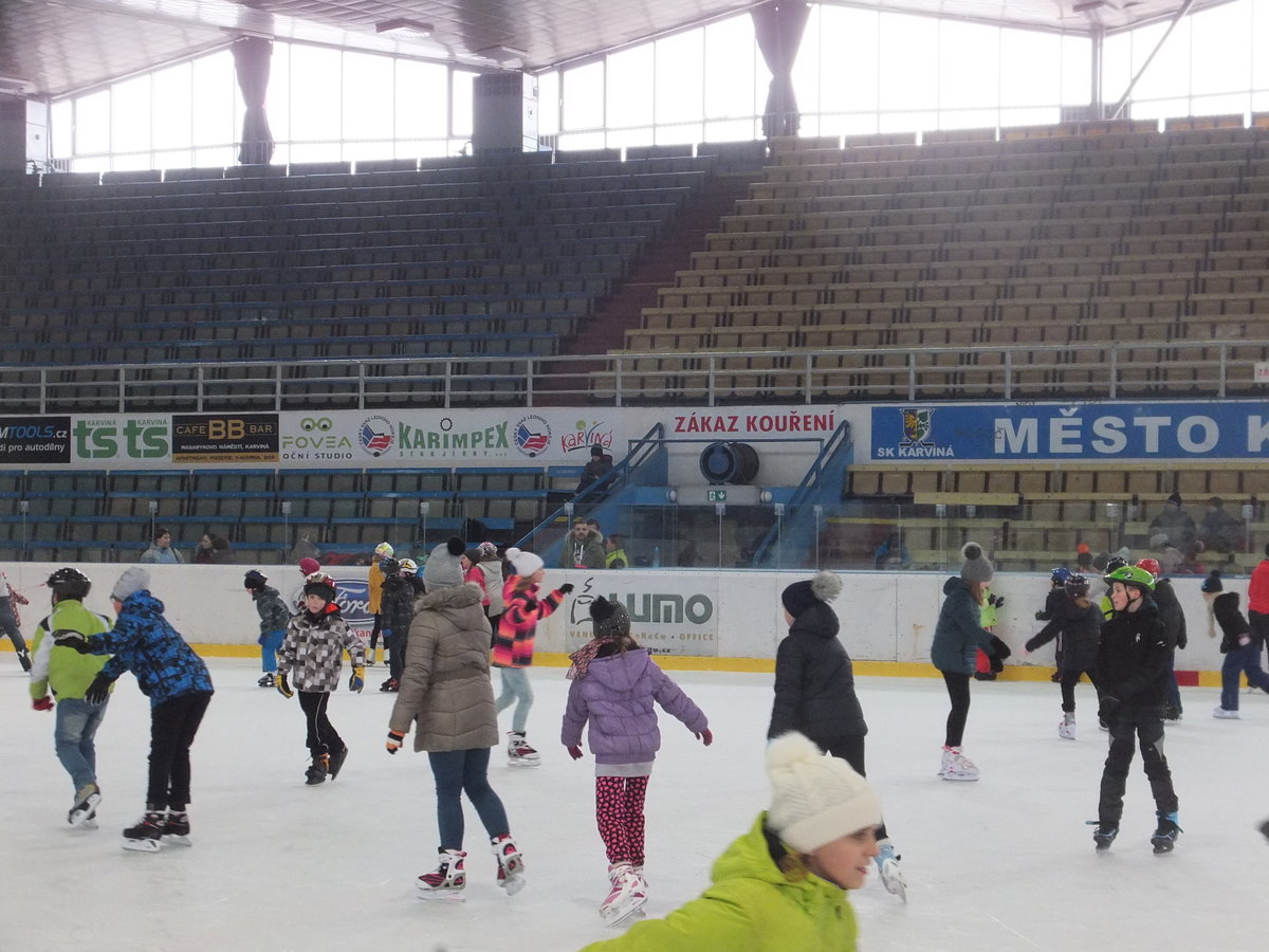Ve čtvrtek 22. 2. 2018 se žáci Mendelky vydali zdokonalovat v bruslení na pronajatý zimní stadión v Karviné. Ledovou plochu dětem uhradilo SRPŠ. Užít si bruslení vyrazili po ranním učení skoro všichni žáci 1. stupně, z 2. stupně asi polovina. Několik starších žáků pomáhalo s výukou bruslení o nejmenších dětí.