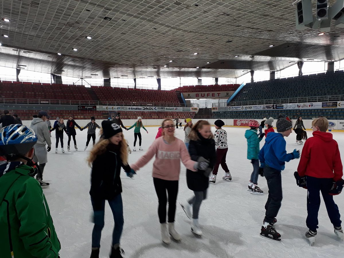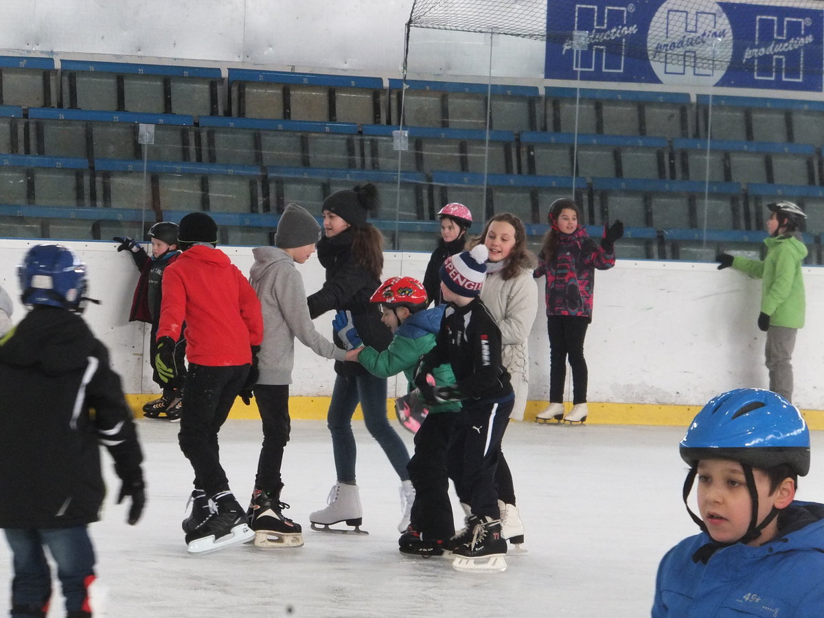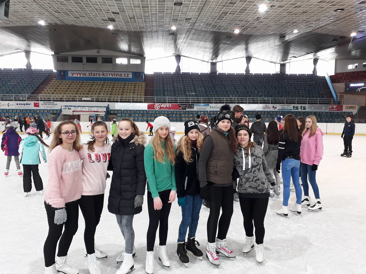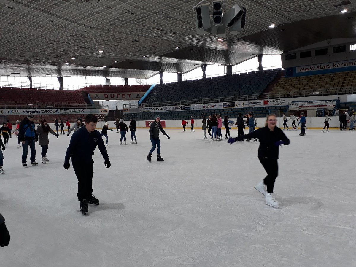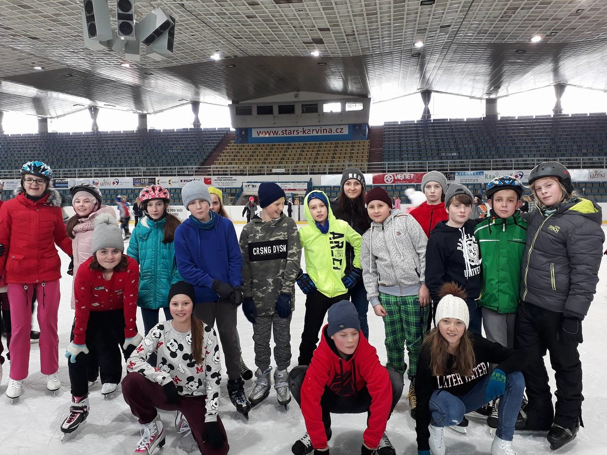 Ve čtvrtek 22. 2. 2018 se žáci Mendelky vydali zdokonalovat v bruslení na pronajatý zimní stadión v Karviné. Ledovou plochu dětem uhradilo SRPŠ. Užít si bruslení vyrazili po ranním učení skoro všichni žáci 1. stupně, z 2. stupně asi polovina. Několik starších žáků pomáhalo s výukou bruslení o nejmenších dětí.