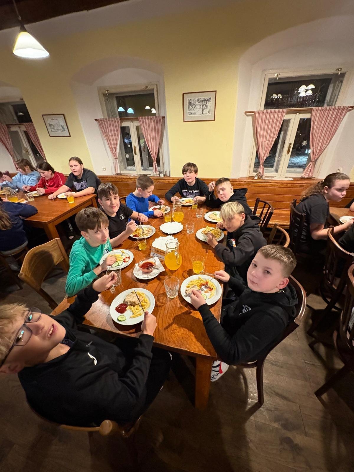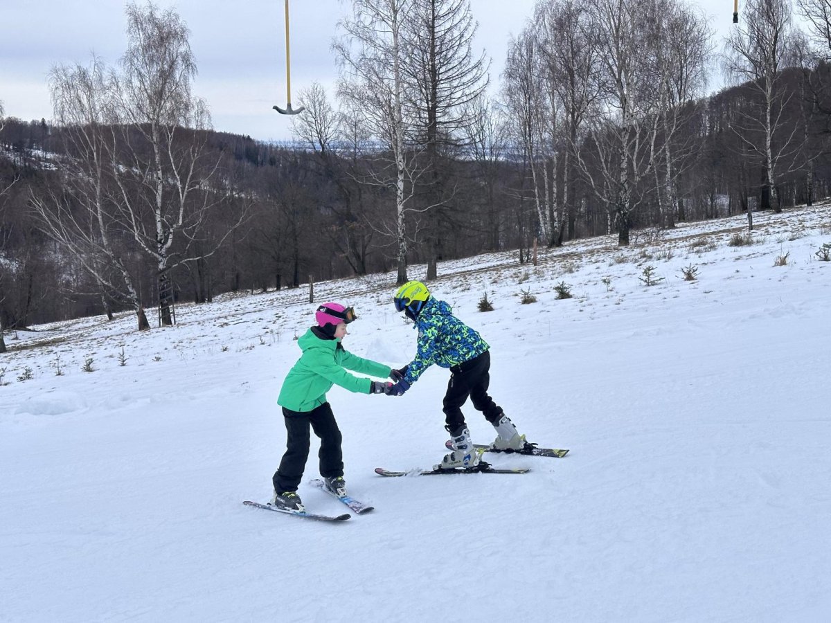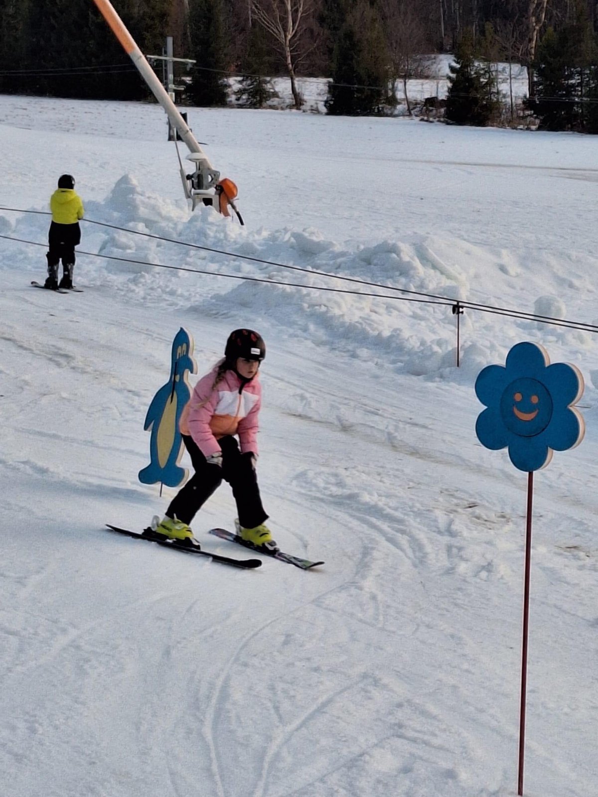 Dnešní den jsme téměř celý strávili na svahu. Jediná kaňka na jinak dokonalém dobrodružství? Sjezdovku zavírají už ve čtyři – Yeti by určitě vydržel déle! Proběhla také důležitá výměna expediční výbavy. Do akce se dnes zapojila švihadla, žížaly a hůlky. K čemu přesně sloužily, ví jen Yeti… ale fungovalo to! Všichni se každým dnem viditelně zlepšujeme (někteří dokonce i bez pádů). Večer si užíváme aktivity ve společenské místnosti, kde sbíráme body pro naše týmy. Soutěživost stoupá, smích se ozývá široko daleko a Yeti se nám zatím úspěšně vyhýbá. Ale my to nevzdáváme!