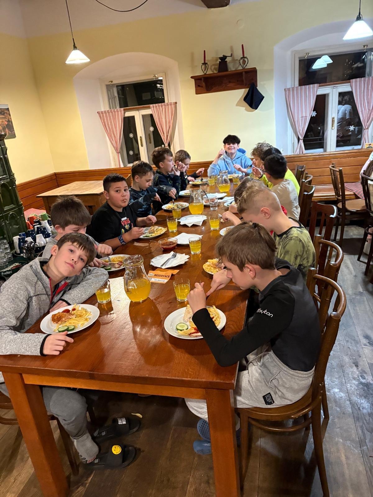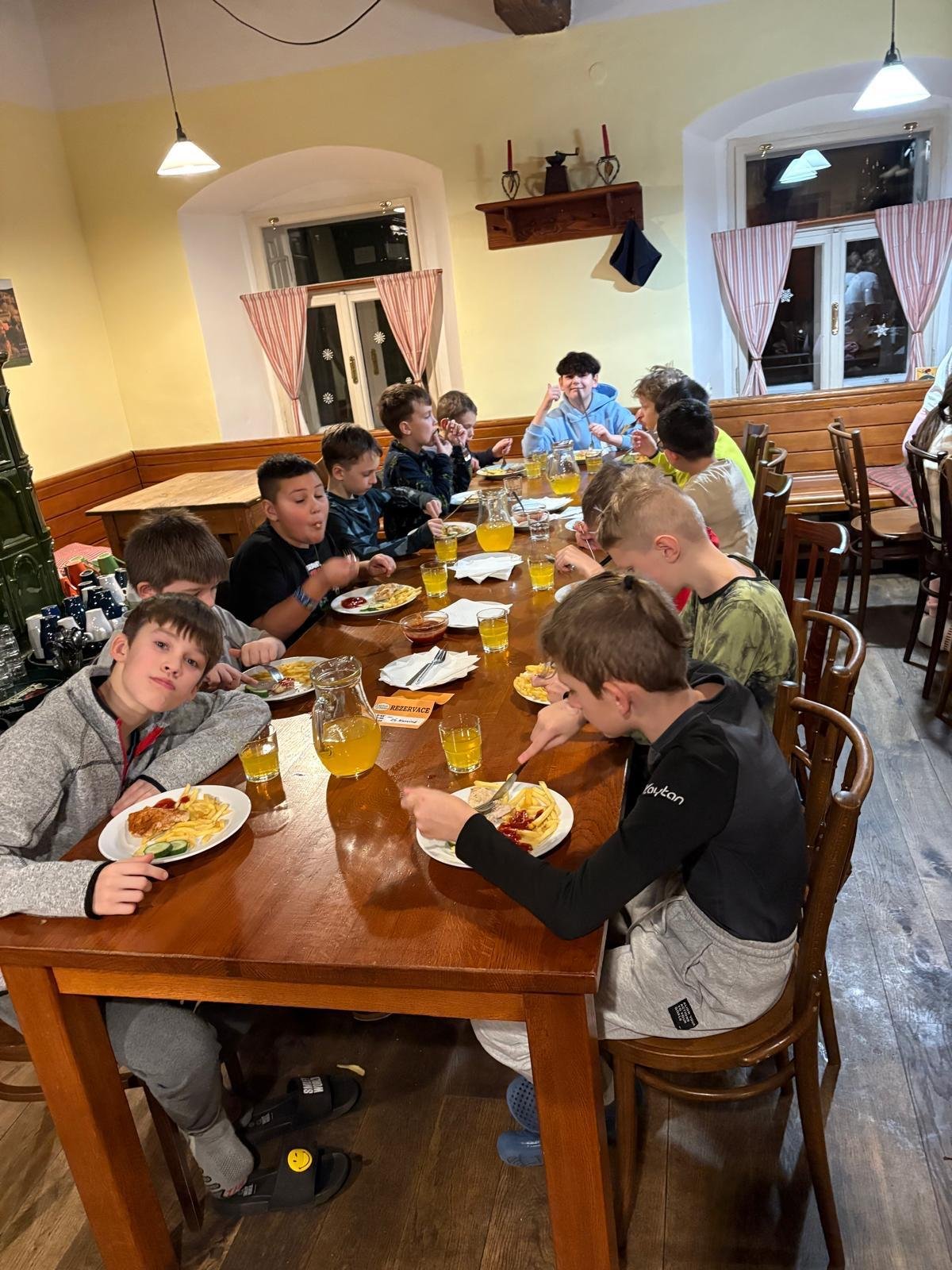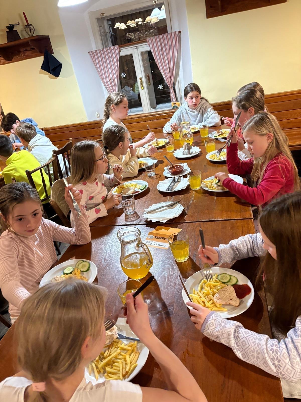 Dnešní den jsme téměř celý strávili na svahu. Jediná kaňka na jinak dokonalém dobrodružství? Sjezdovku zavírají už ve čtyři – Yeti by určitě vydržel déle! Proběhla také důležitá výměna expediční výbavy. Do akce se dnes zapojila švihadla, žížaly a hůlky. K čemu přesně sloužily, ví jen Yeti… ale fungovalo to! Všichni se každým dnem viditelně zlepšujeme (někteří dokonce i bez pádů). Večer si užíváme aktivity ve společenské místnosti, kde sbíráme body pro naše týmy. Soutěživost stoupá, smích se ozývá široko daleko a Yeti se nám zatím úspěšně vyhýbá. Ale my to nevzdáváme!