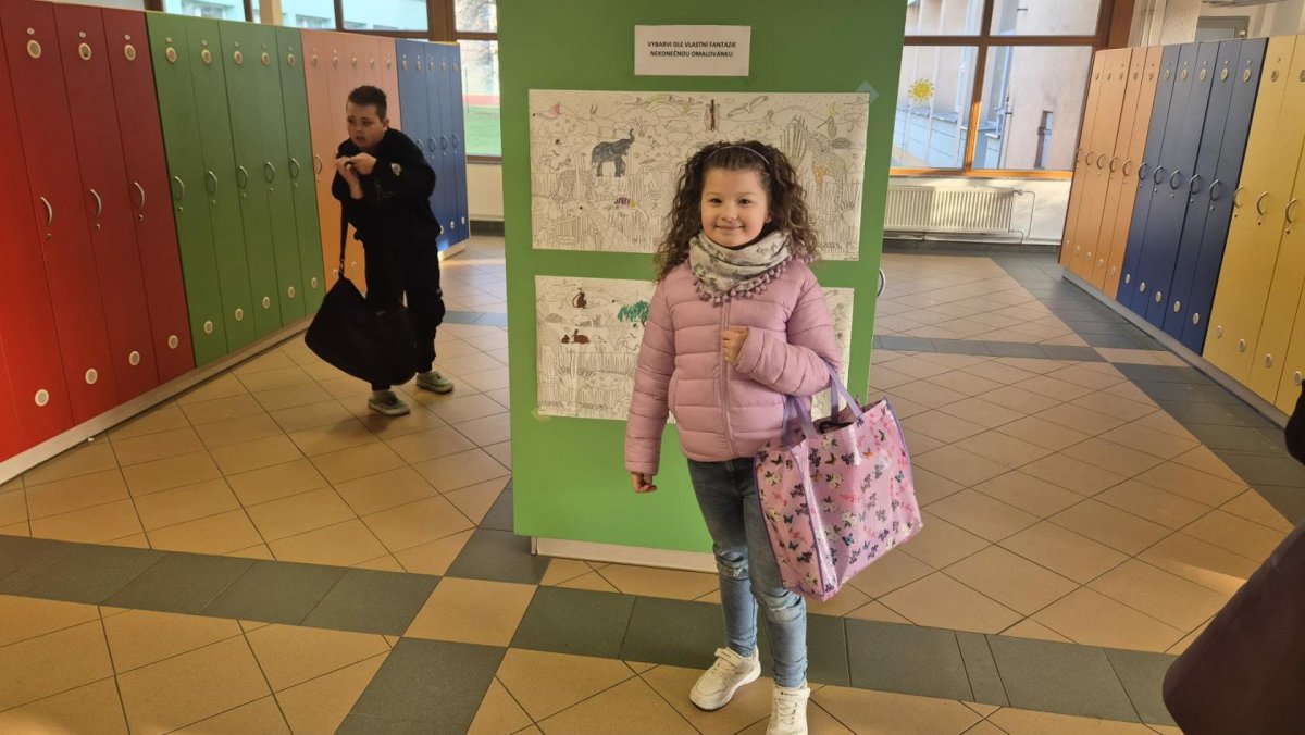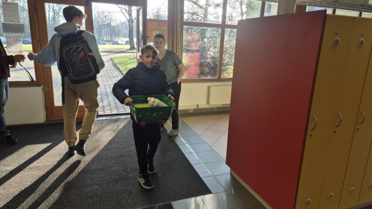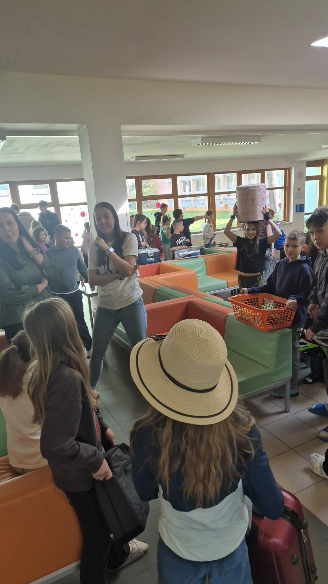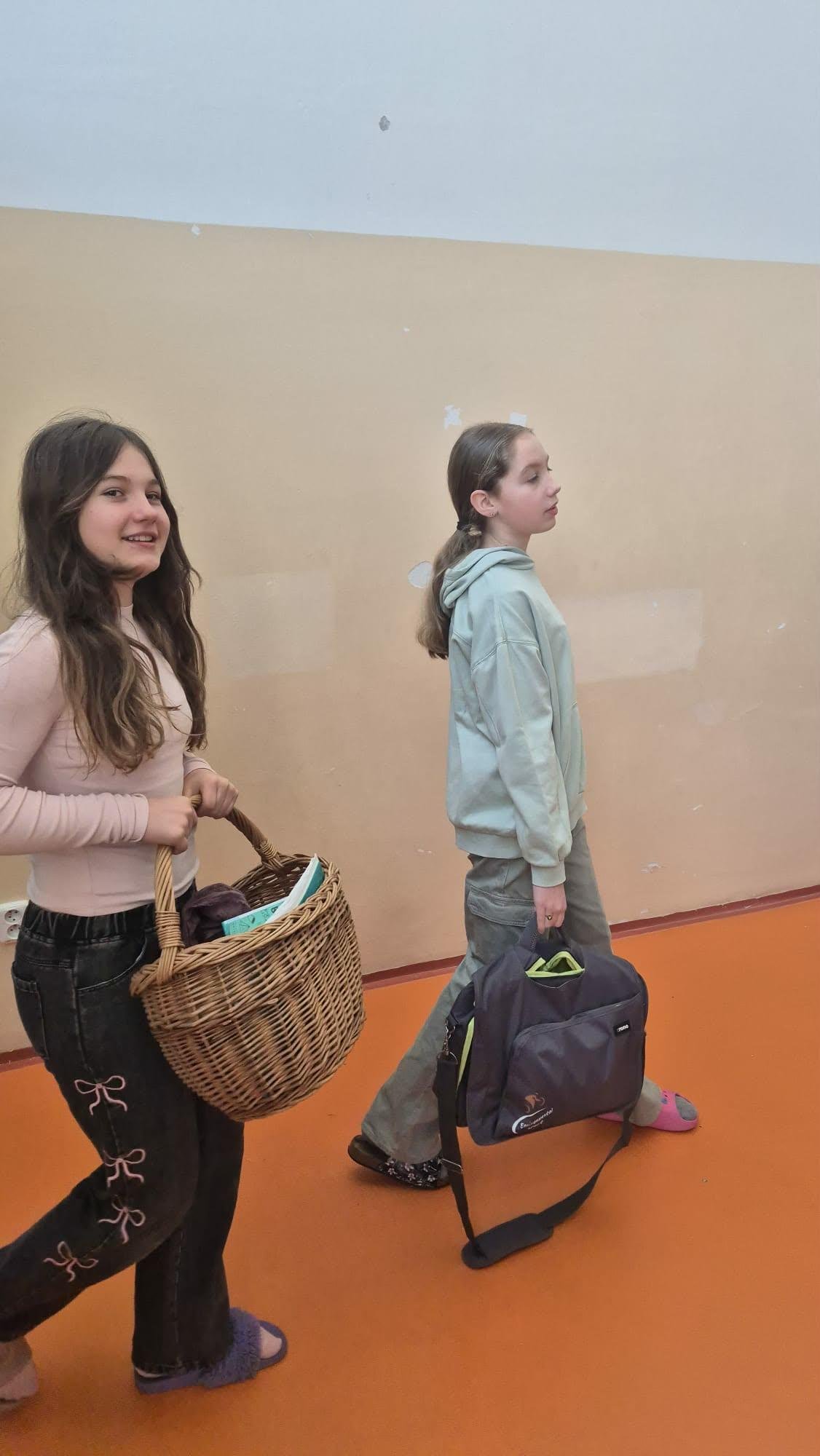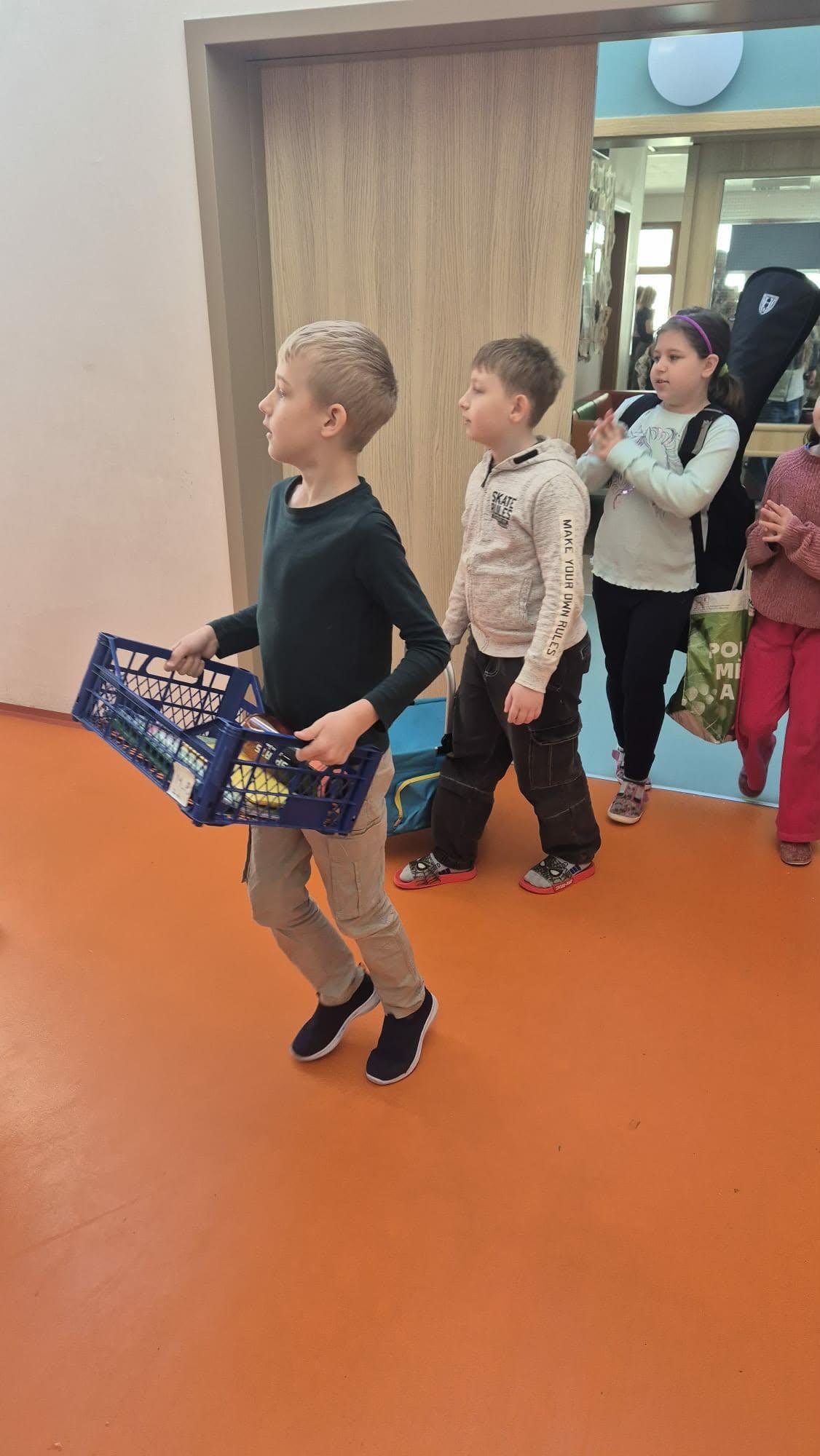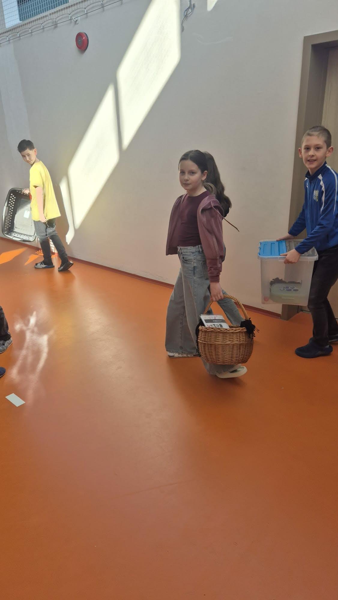 V rámci aprílového dne děti dorazily vybavené naprosto skvěle! Učebnice se vezly v nákupních vozících,sešity odpočívaly v hrncích...a někteří školáci dorazili i s výbavou,která by obstála i na expedici do divočiny...