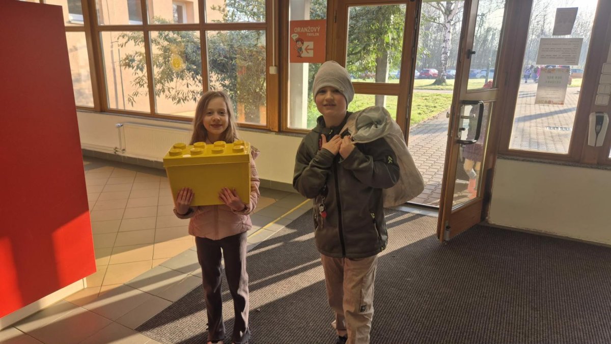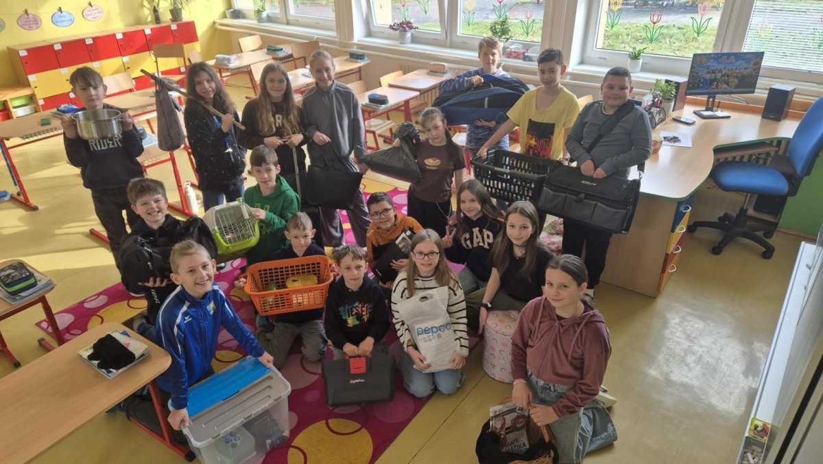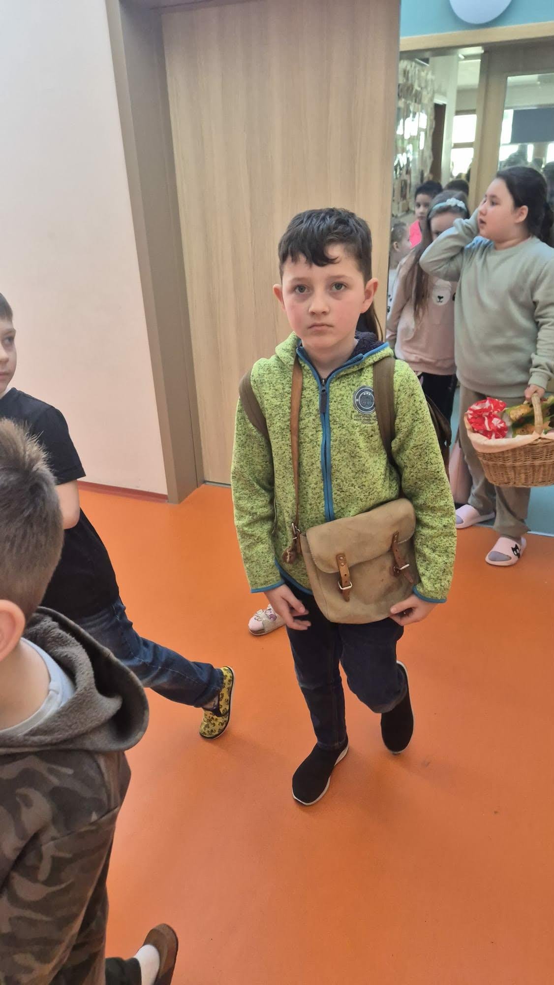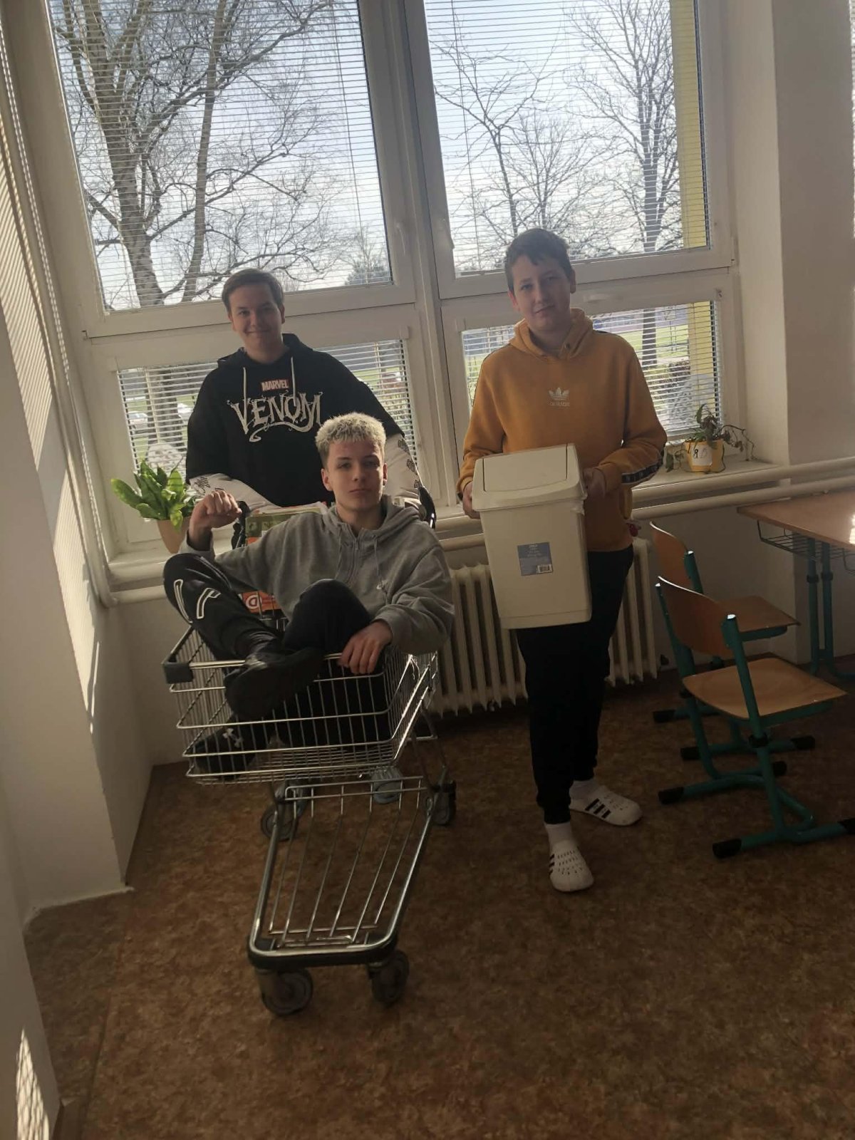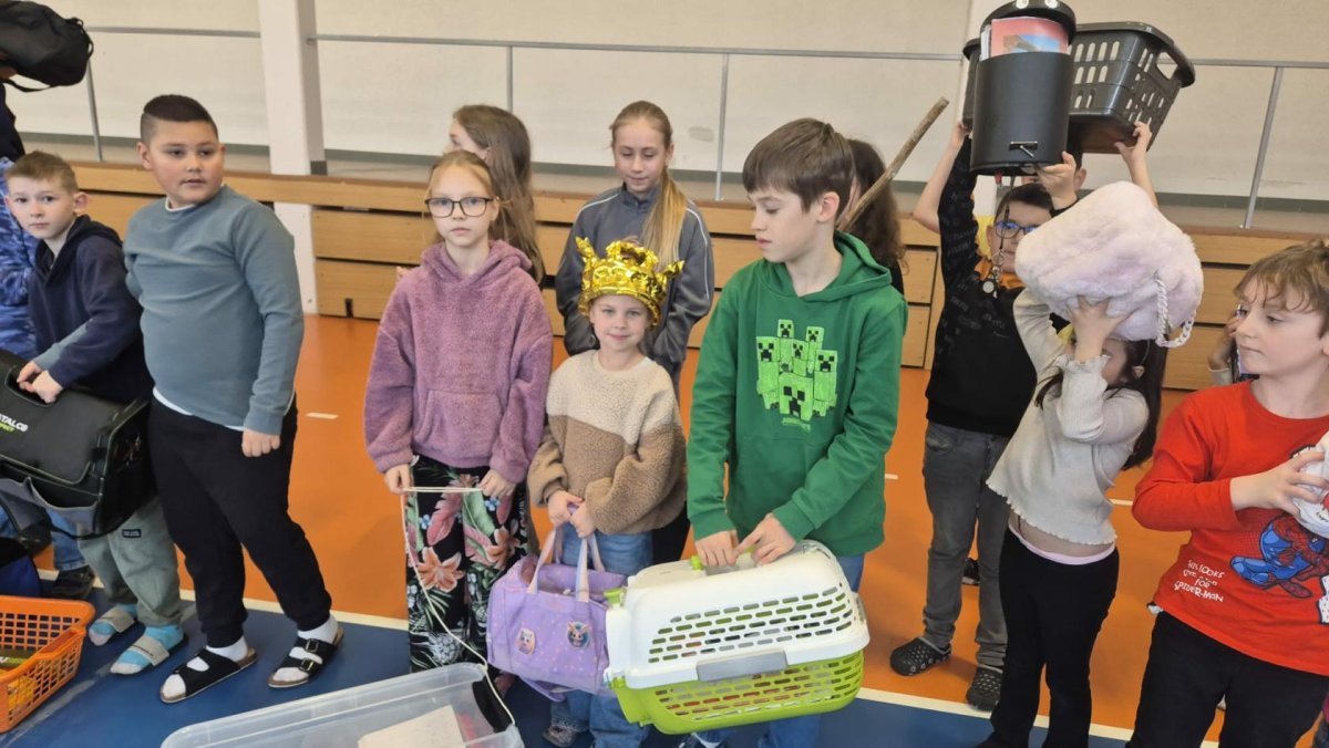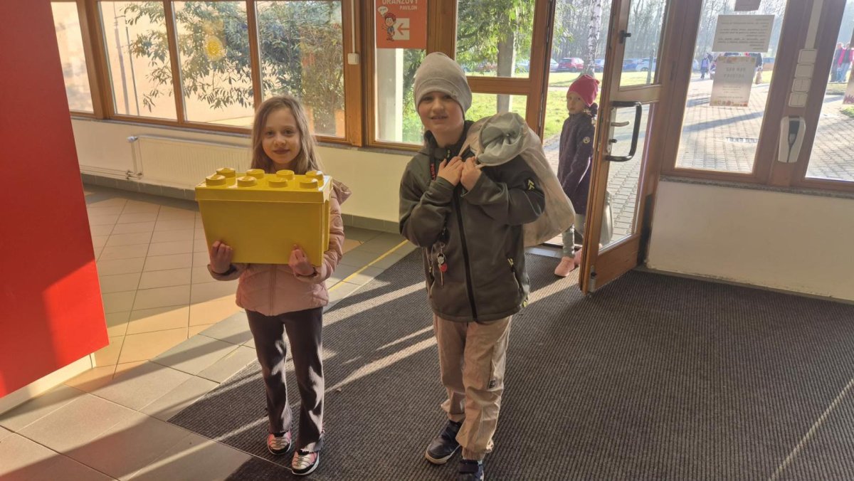 V rámci aprílového dne děti dorazily vybavené naprosto skvěle! Učebnice se vezly v nákupních vozících,sešity odpočívaly v hrncích...a někteří školáci dorazili i s výbavou,která by obstála i na expedici do divočiny...