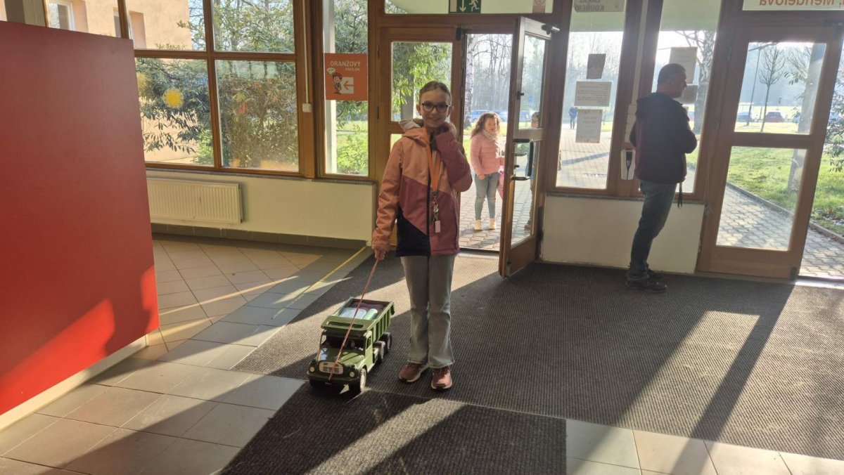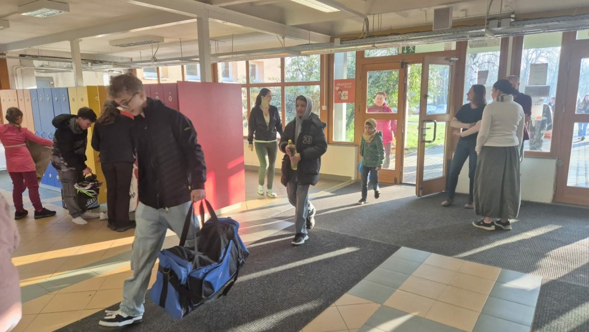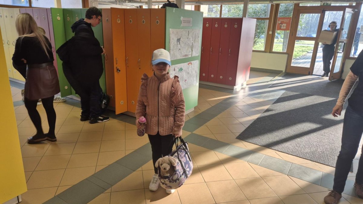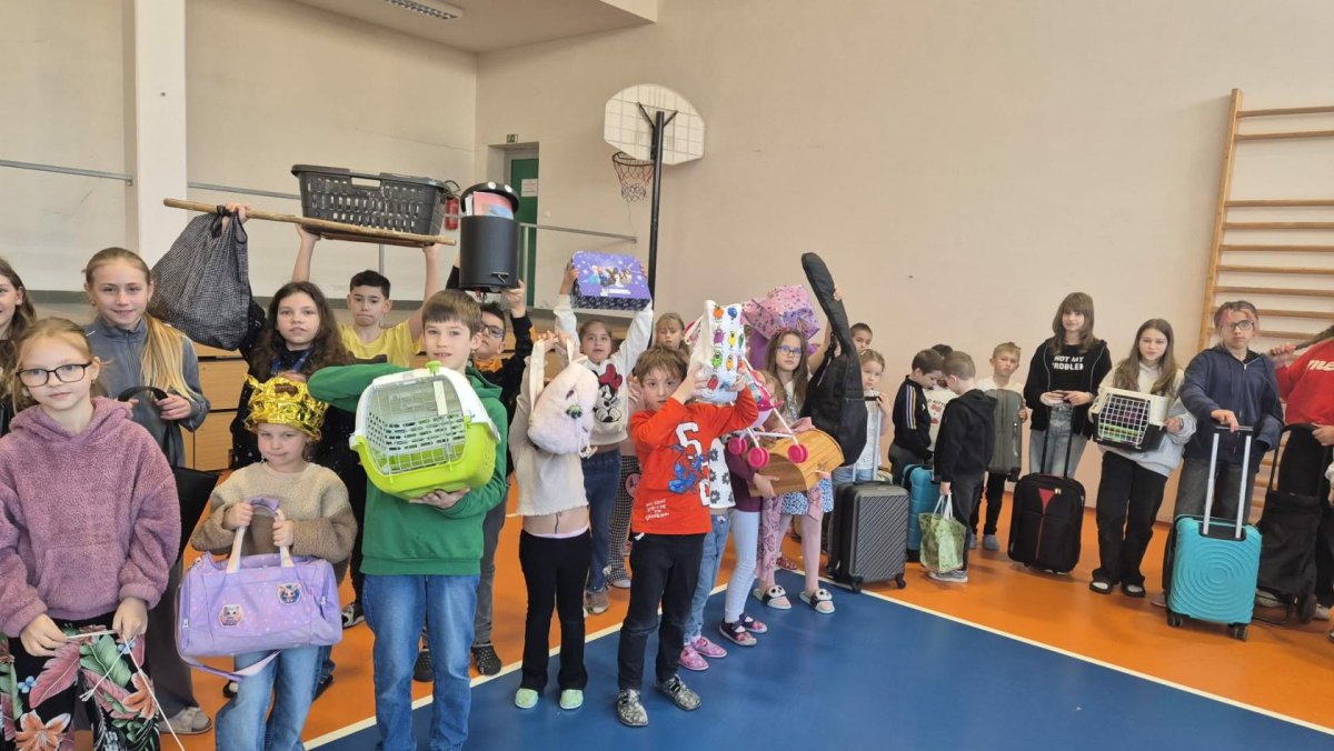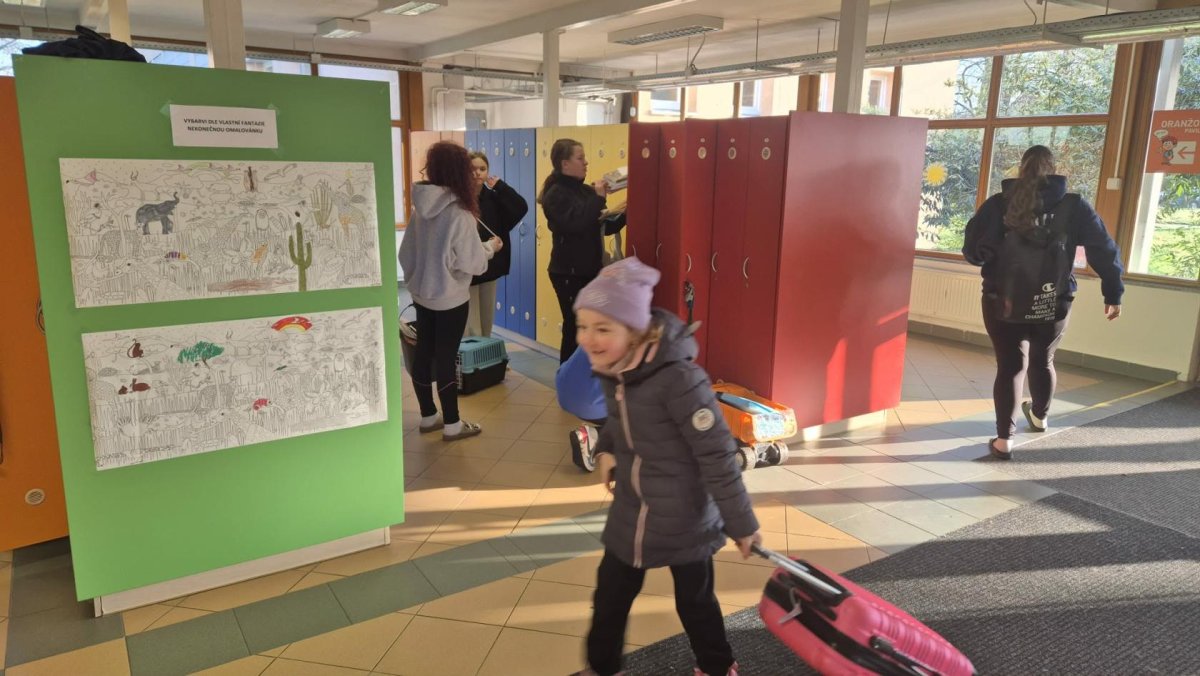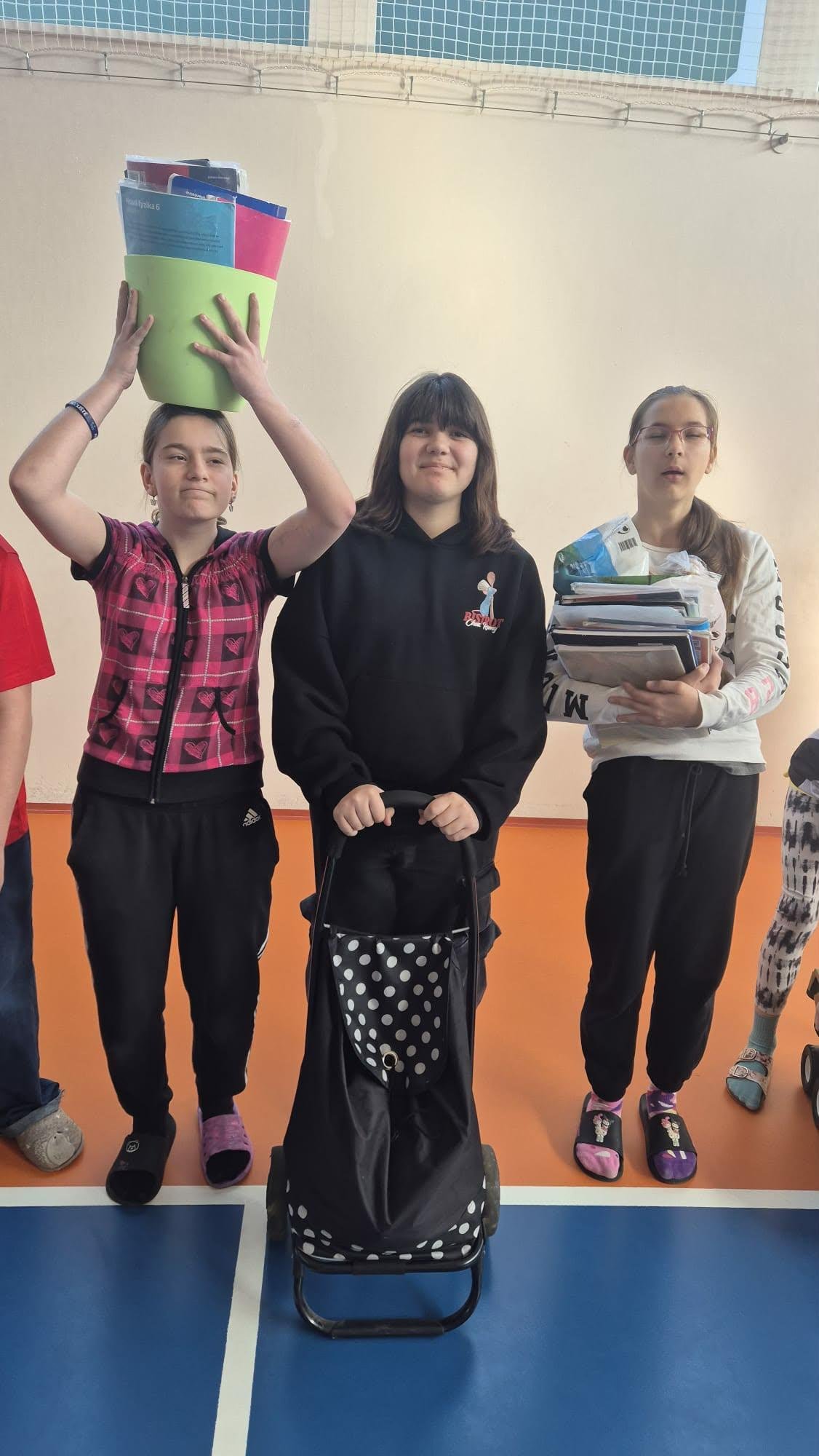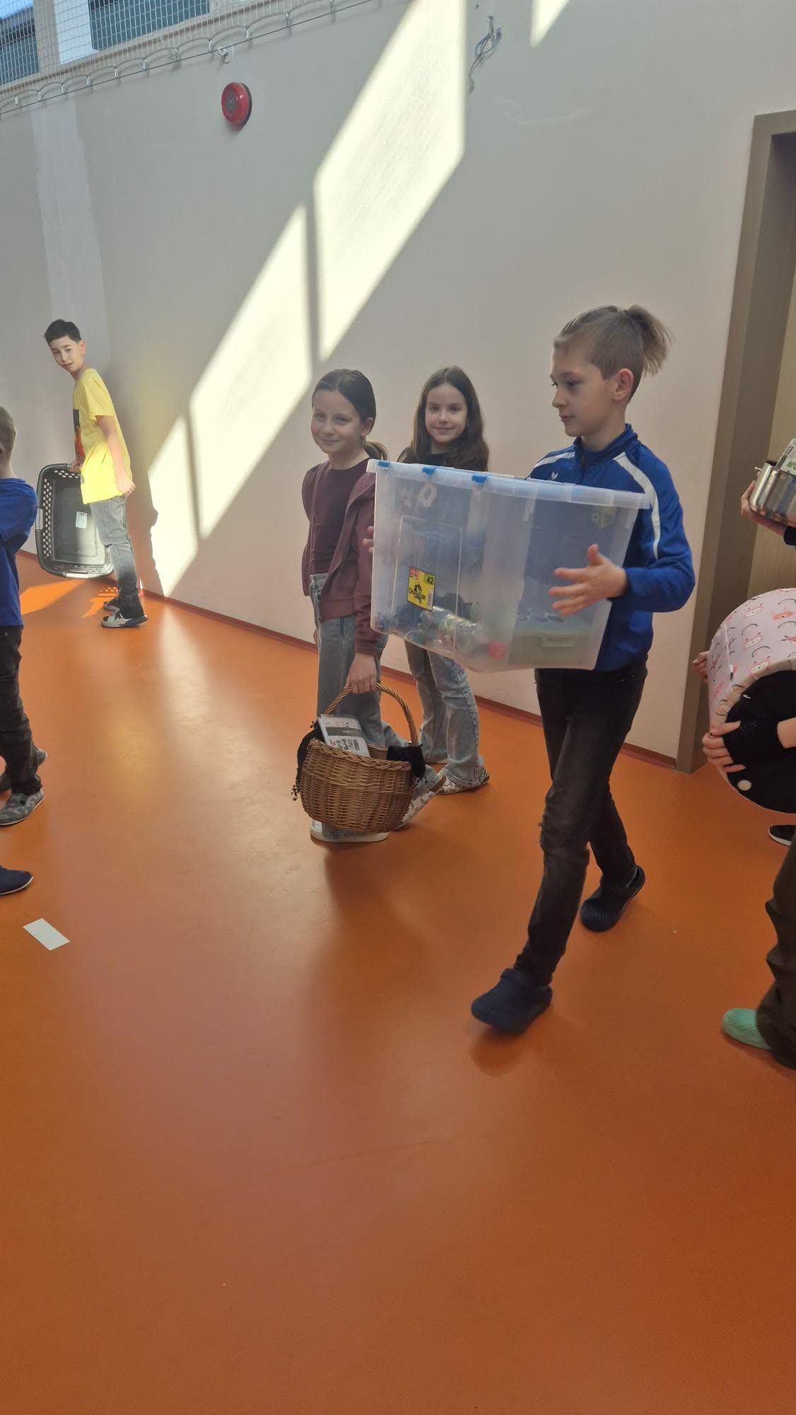 V rámci aprílového dne děti dorazily vybavené naprosto skvěle! Učebnice se vezly v nákupních vozících,sešity odpočívaly v hrncích...a někteří školáci dorazili i s výbavou,která by obstála i na expedici do divočiny...