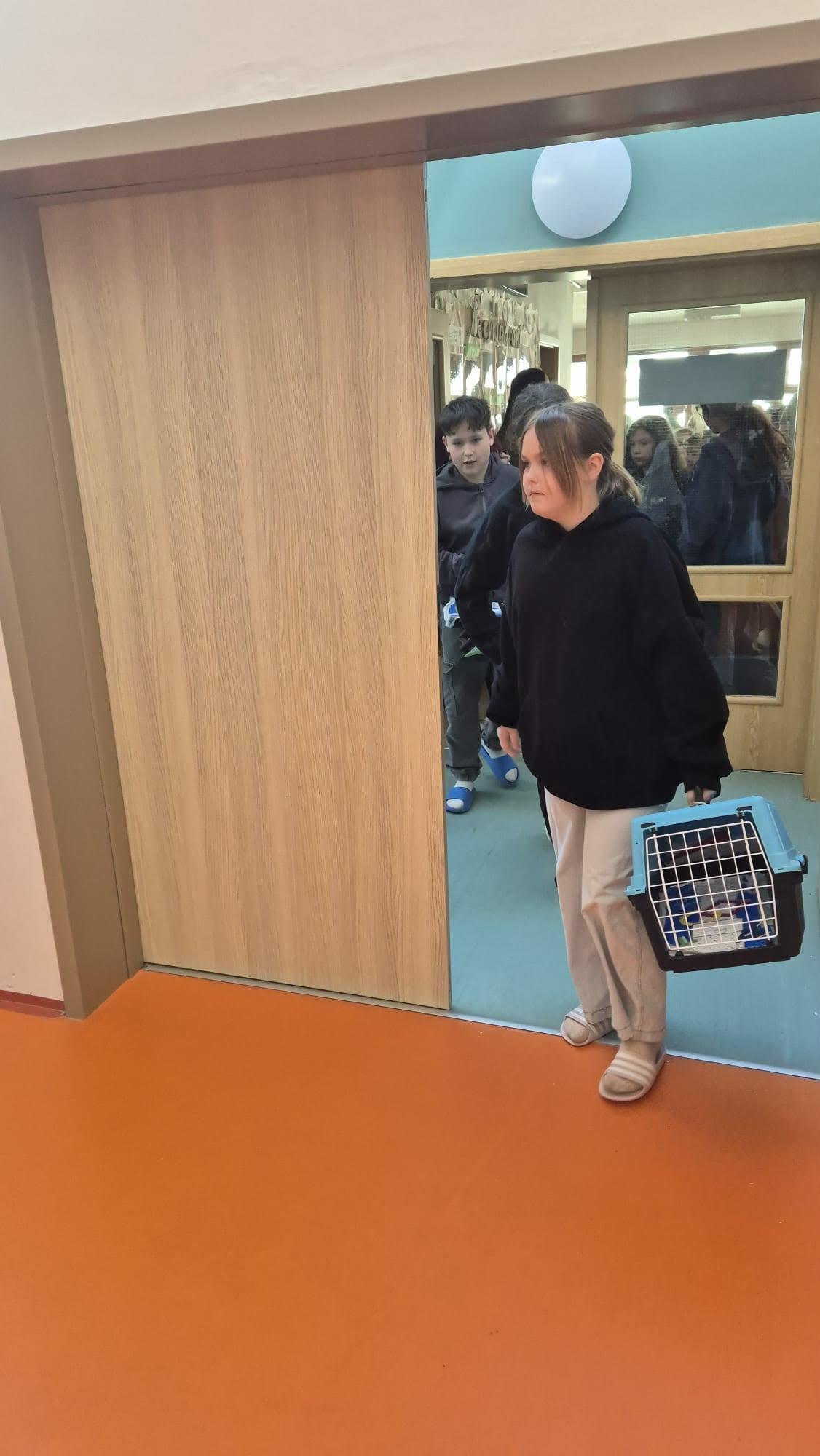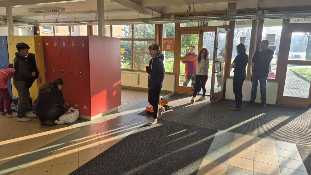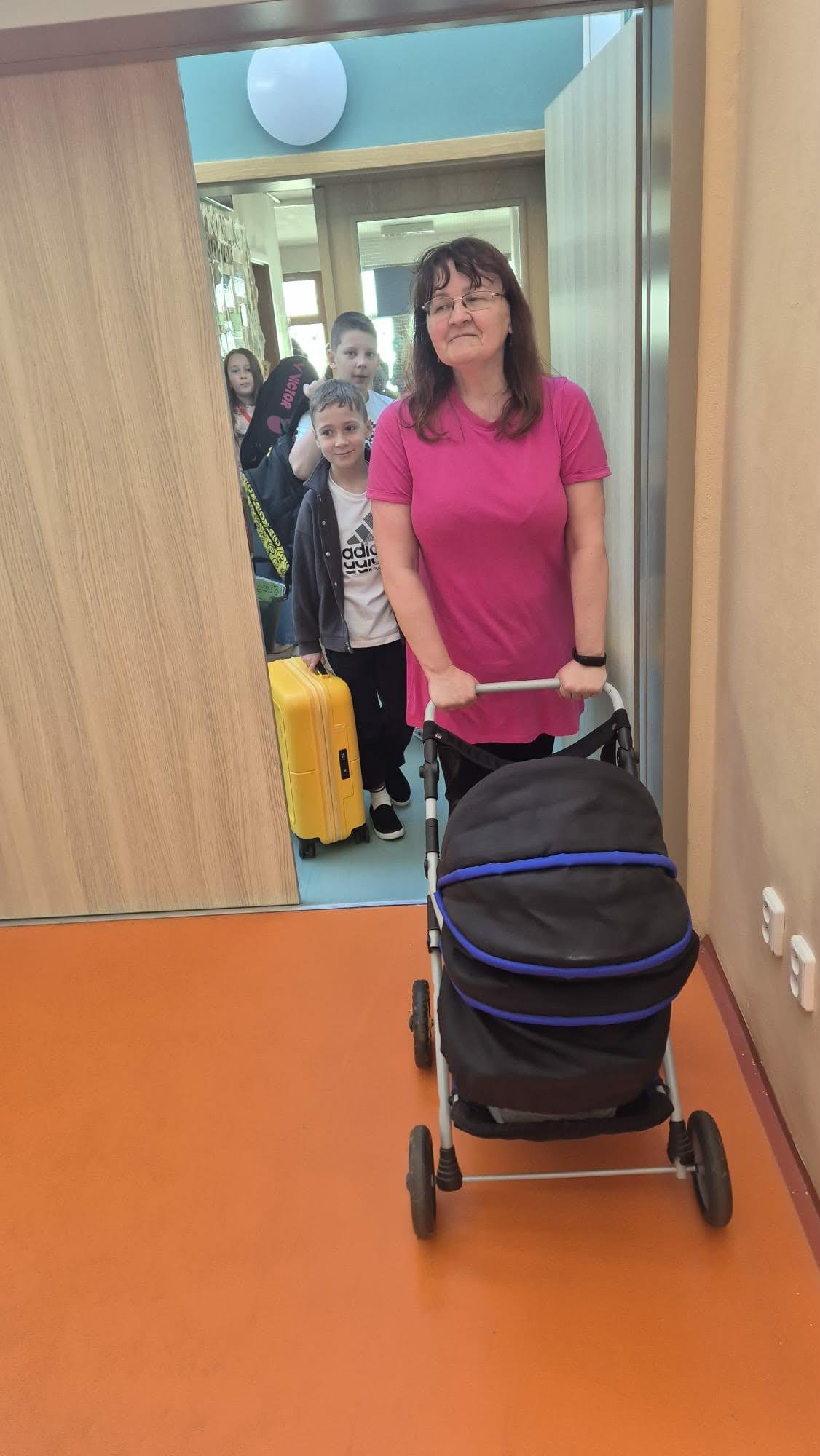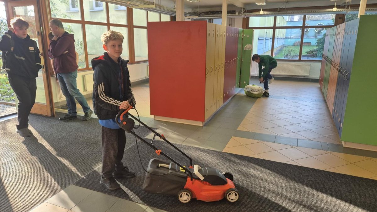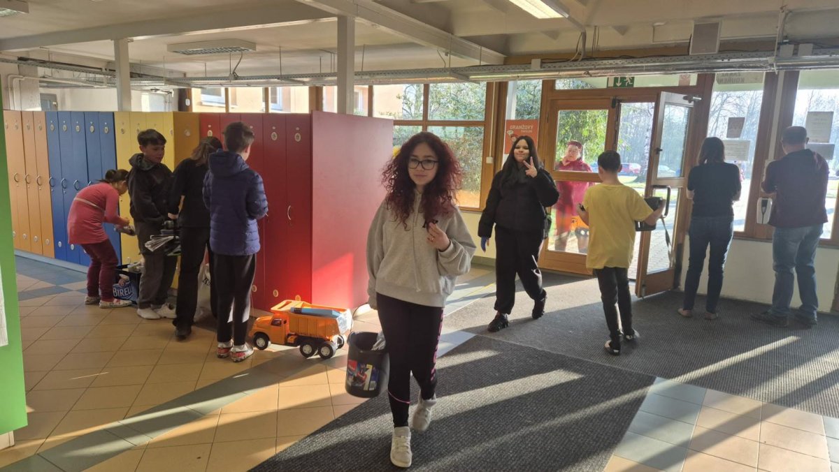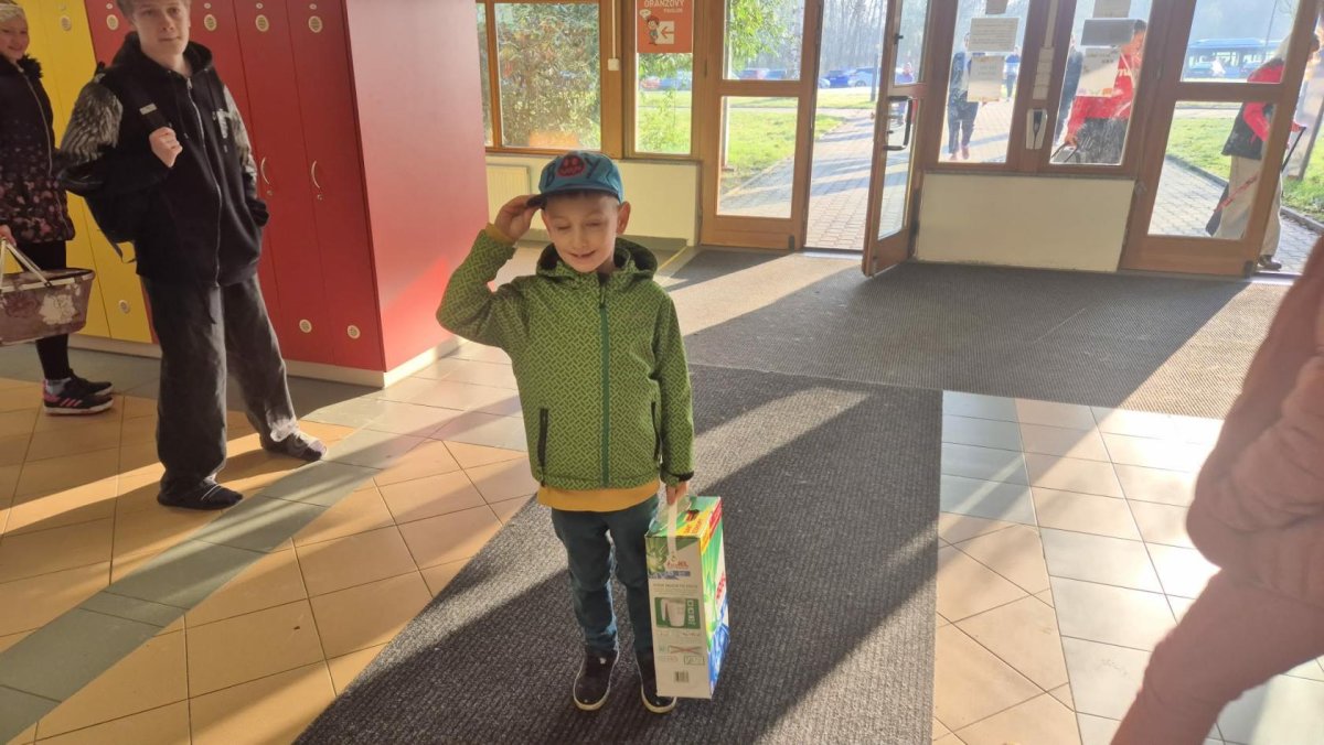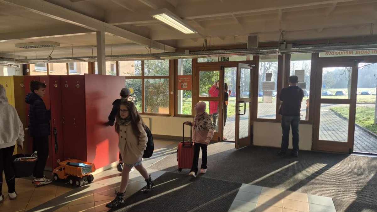 V rámci aprílového dne děti dorazily vybavené naprosto skvěle! Učebnice se vezly v nákupních vozících,sešity odpočívaly v hrncích...a někteří školáci dorazili i s výbavou,která by obstála i na expedici do divočiny...