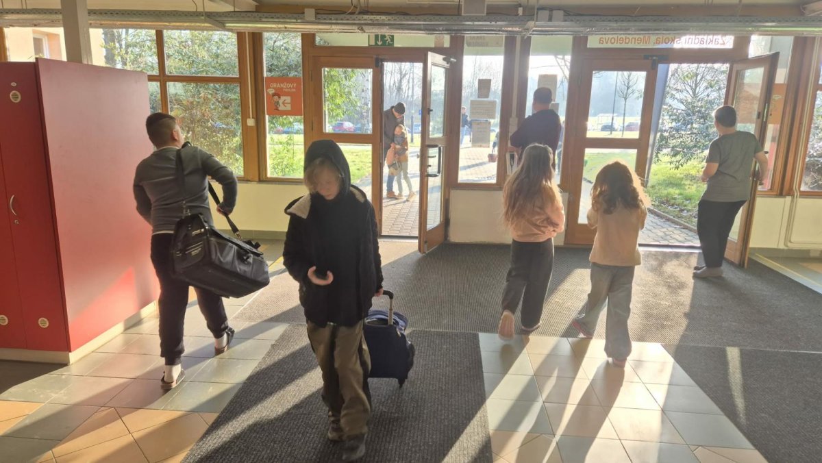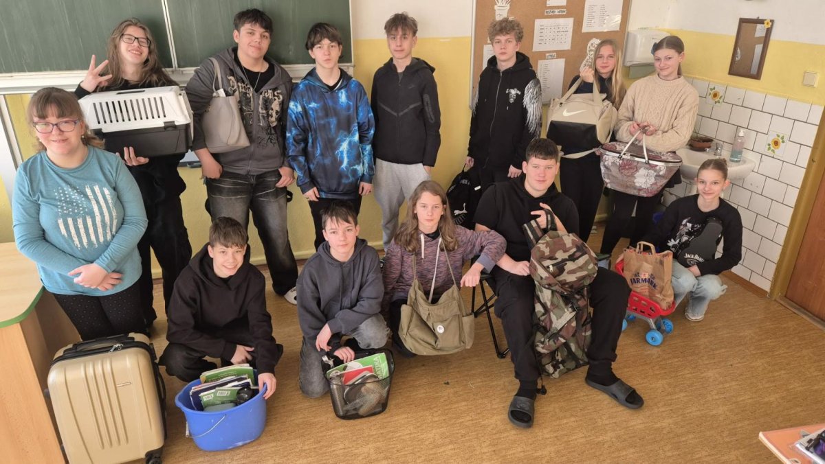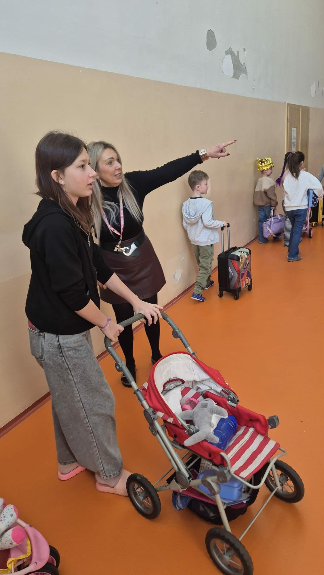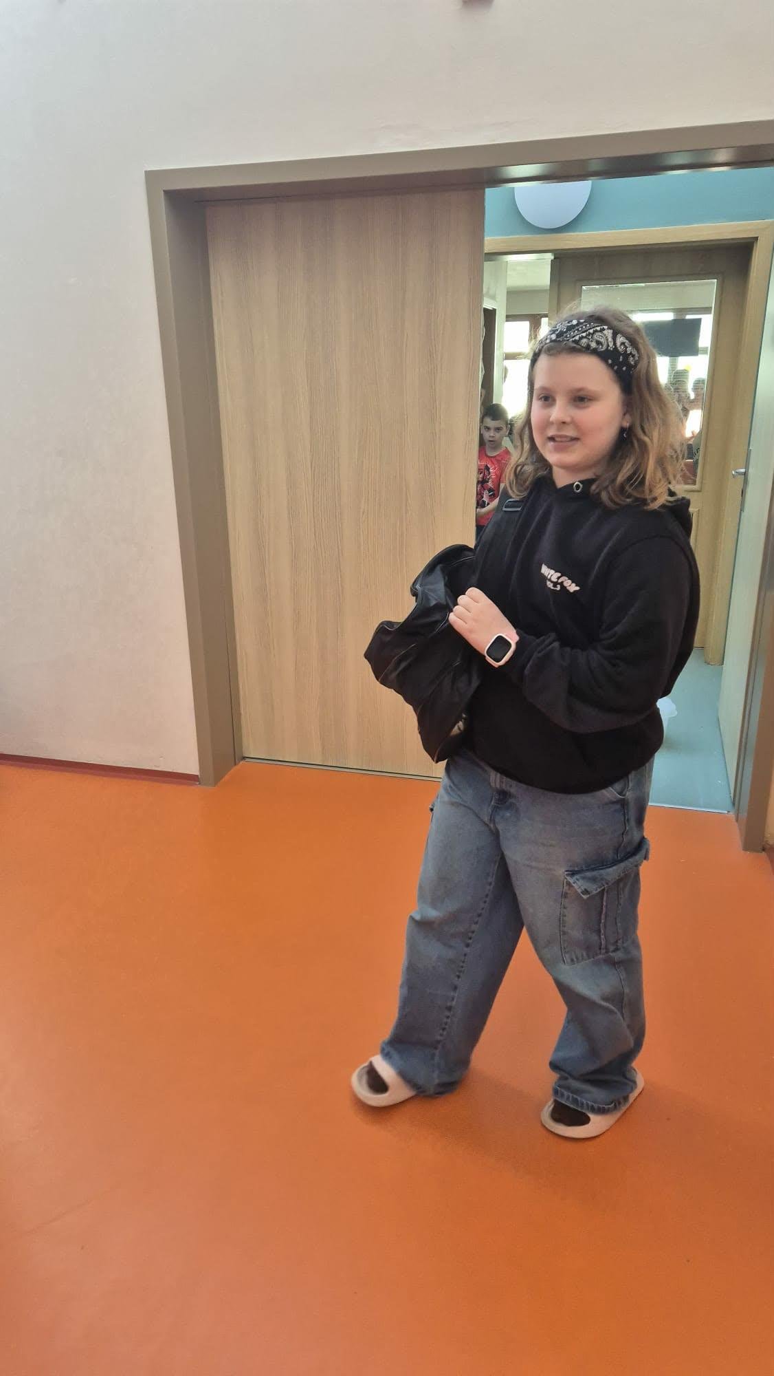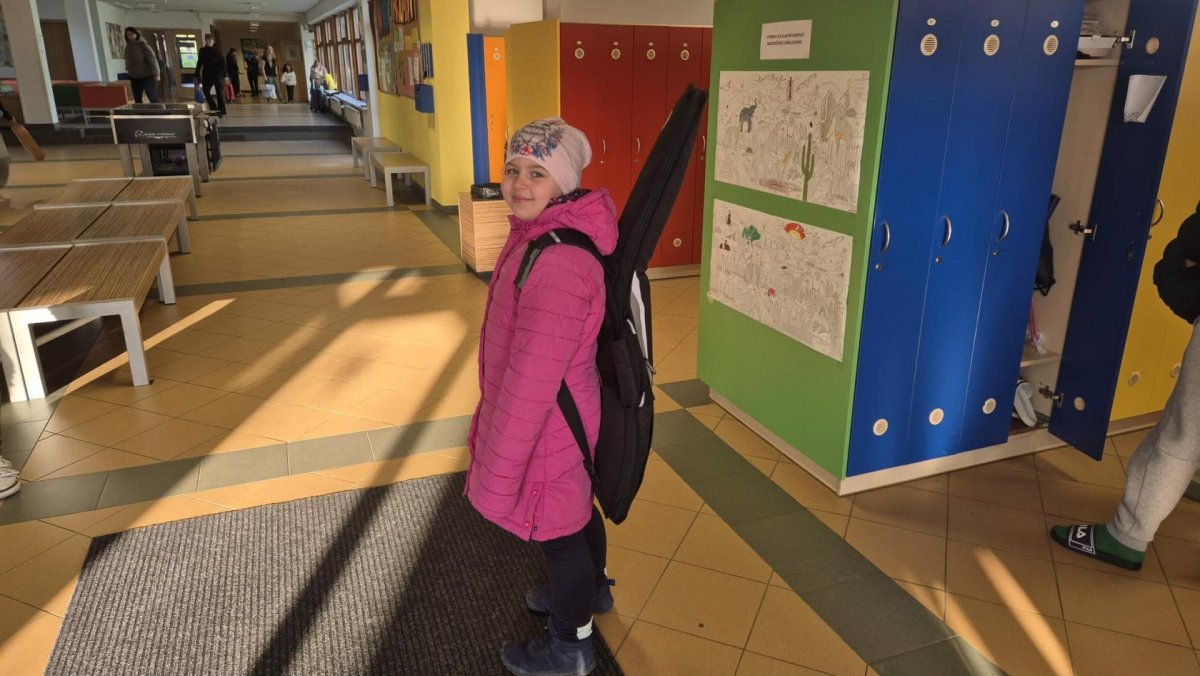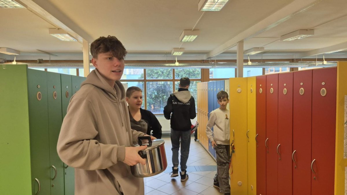 V rámci aprílového dne děti dorazily vybavené naprosto skvěle! Učebnice se vezly v nákupních vozících,sešity odpočívaly v hrncích...a někteří školáci dorazili i s výbavou,která by obstála i na expedici do divočiny...