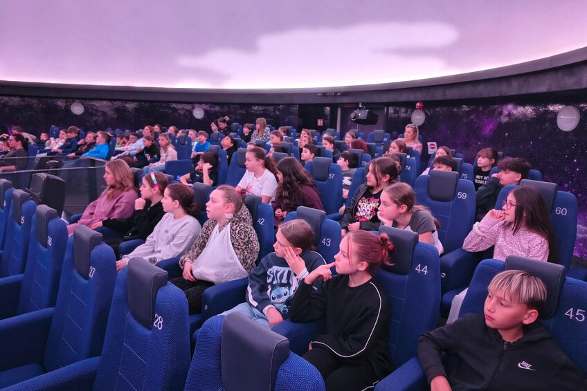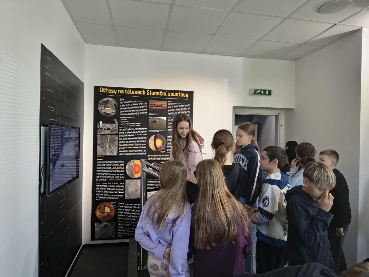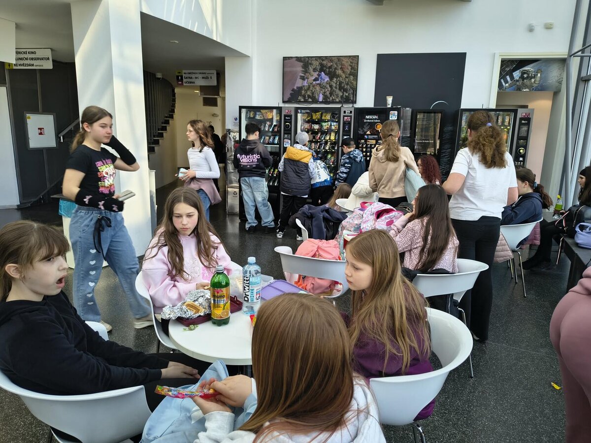Letošní oslava Dne Země 5. A a 5. B. byla trochu netradiční. Žáci se rozhodli podívat na naši modrou planetu z pořádné výšky – a to přímo z vesmíru! Cílem se stalo Planetárium Ostrava. Kdo říká, že cesta je nuda, ten s námi nejel! Naše výprava prověřila kondičku i trpělivost všech zúčastněných. Absolvovali jsme totiž takový malý dopravní triatlon. Autobusem jsme se propletli ranním provozem. Vlakem jsme si užili tu pravou jízdu po kolejích. Pěšky lesem jsme pak zdolali poslední úsek, abychom planetárium v porubském lese vůbec našli. Čerstvý vzduch nás krásně probral! Vydatně posilněni svačinkovými dobrotami jsme se usadili do sférického kina. Film „Vesmírní parťáci: Světelná mise“ nás vtáhl přímo do děje. Sledovat hvězdy a planety všude kolem sebe (i nad sebou!) byl neskutečný zážitek. Dozvěděli jsme se, co vidíme v těchto dnech na obloze, proč je světlo pro život důležité. Po kině nás čekala prohlídka expozic. Žádné „nesahat“, naopak! Tady jeden velký prožitek, spousta pokusů. Na závěr nás čekal přesun zpět k nádraží. Čekání na odjezd vlaku jsme si zkrátili společnými hrami. Ke škole jsme si přivezli spoustu zážitků a ještě několik dní budou tématem našich hovorů.