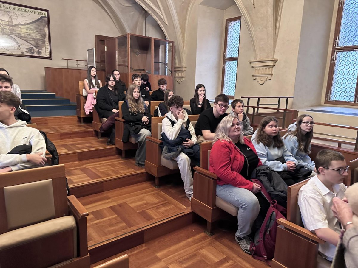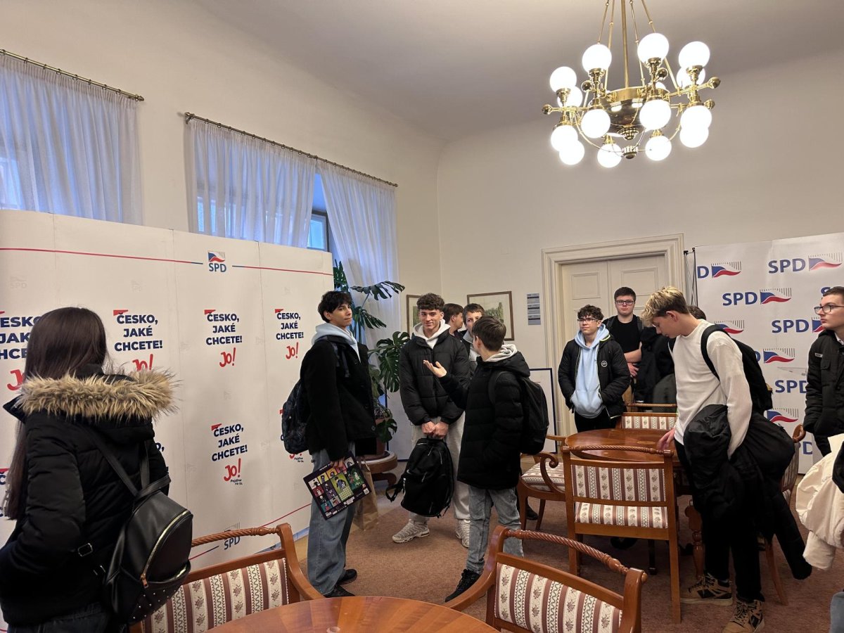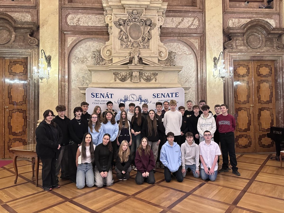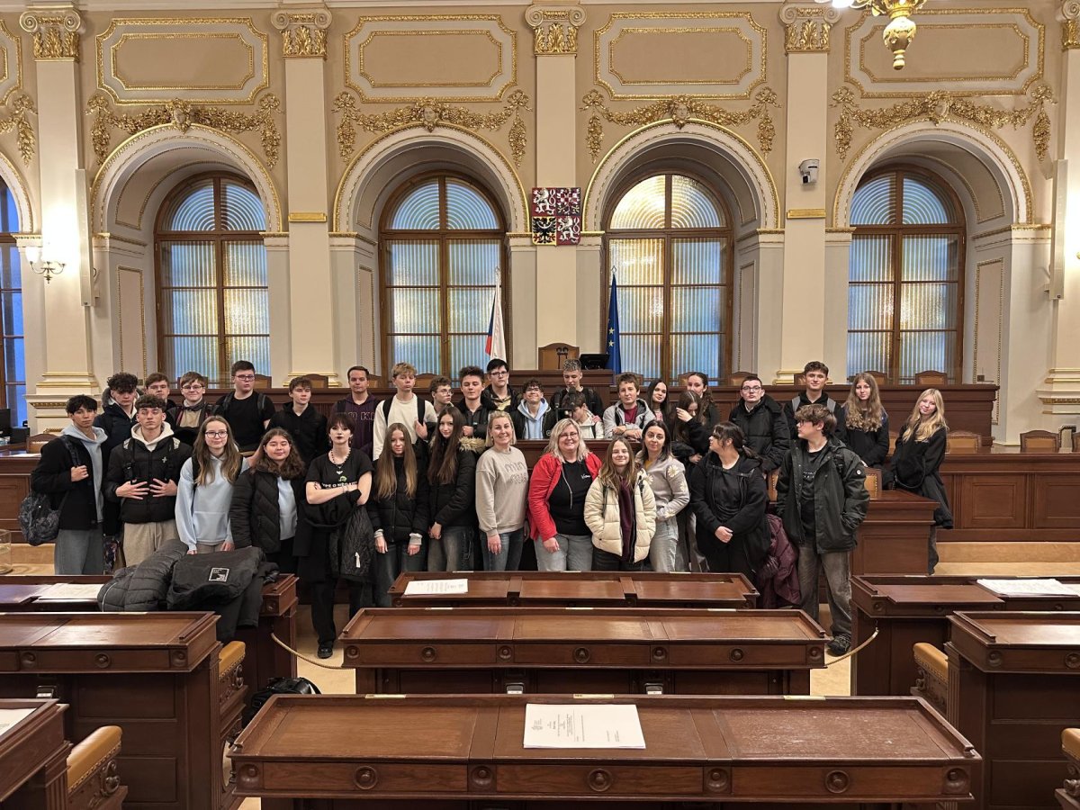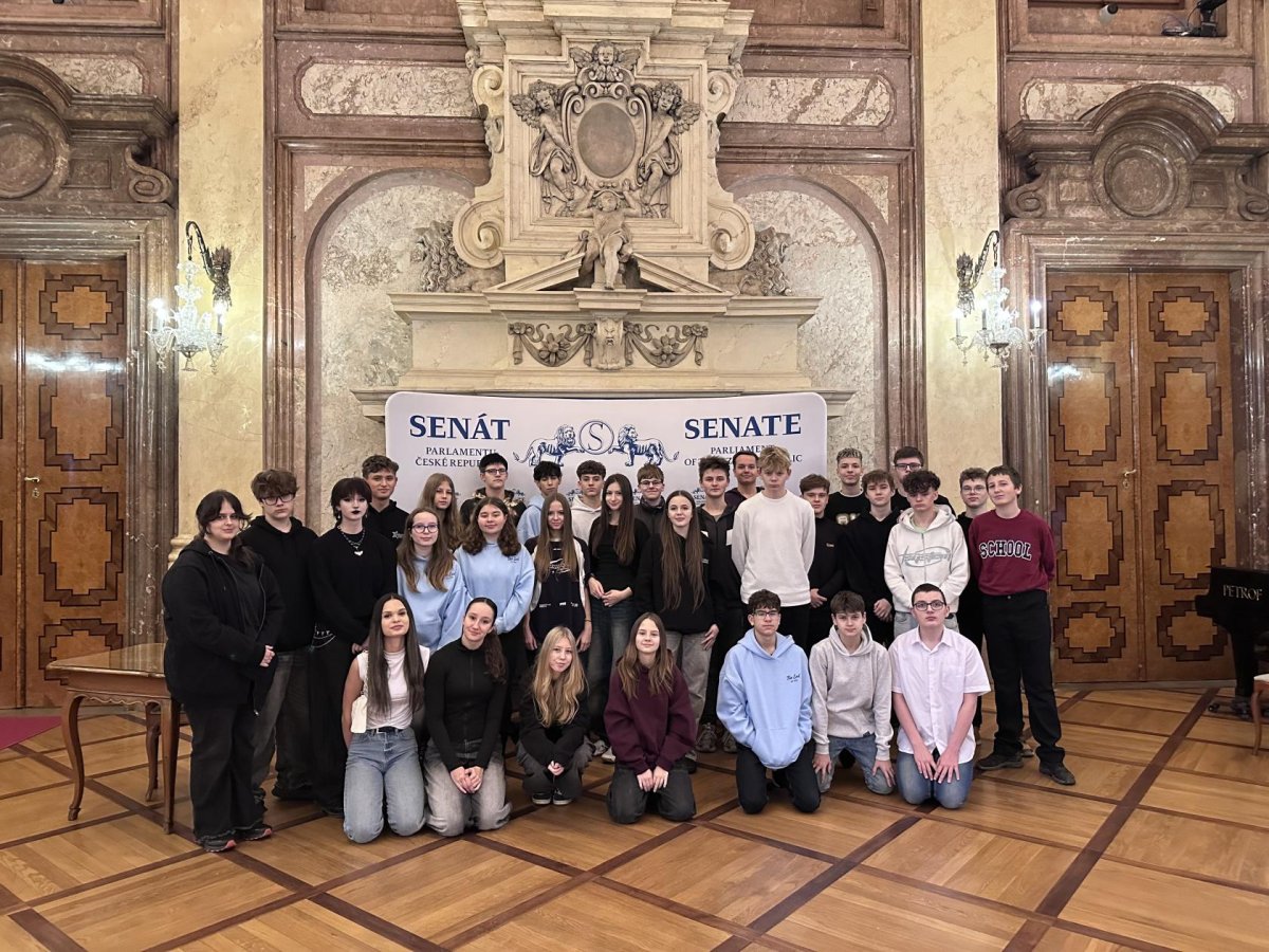 Žáci devátého ročníku se dnes vydali na exkurzi do hlavního města Prahy. V rámci programu navštívili Senát Parlamentu ČR a Poslaneckou sněmovnu, kde se seznámili s fungováním zákonodárné moci. Součástí exkurze byla také procházka historickým centrem Prahy. Žáci si prohlédli významné památky, jako jsou Prašná brána, Staroměstské náměstí s orlojem a Karlův most. Zajímavým zpestřením dne bylo setkání s několika známými osobnostmi. Žáci měli možnost potkat zpěváka Bena Cristovaa, poslance Ivana Bartoše a předsedu hnutí SPD Tomia Okamuru, který se s dětmi ochotně vyfotil a prohodil s nimi pár slov.