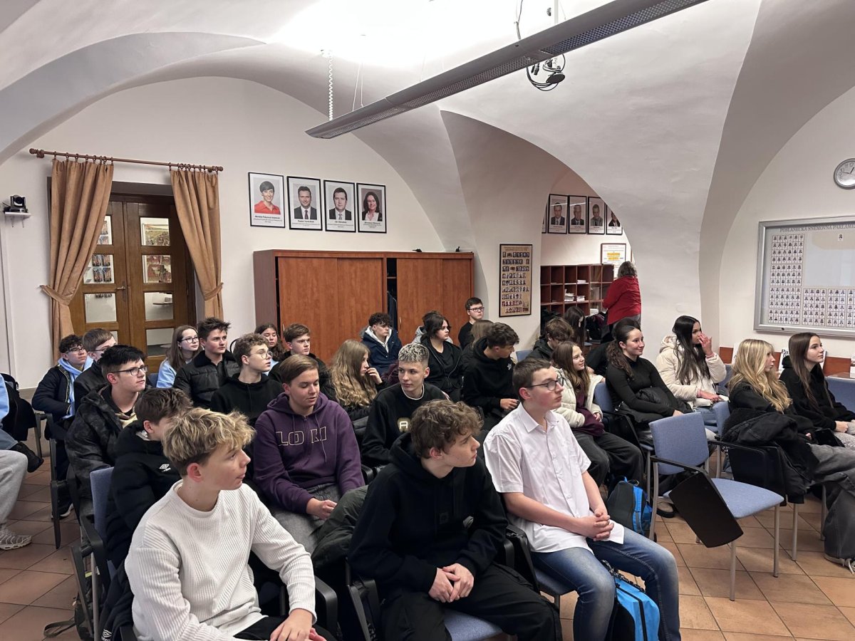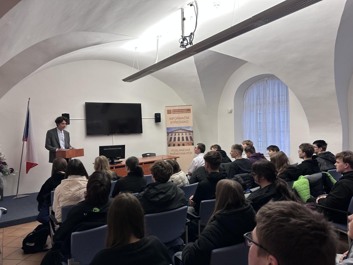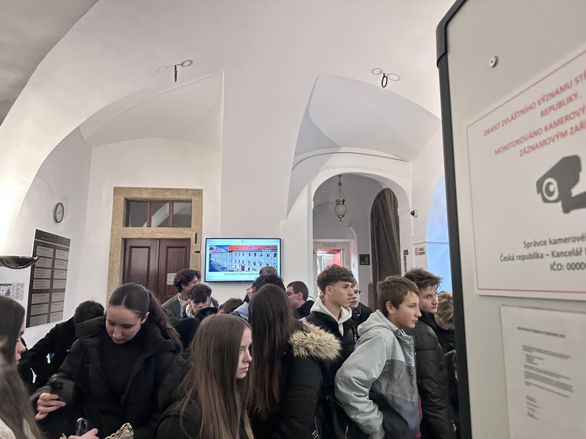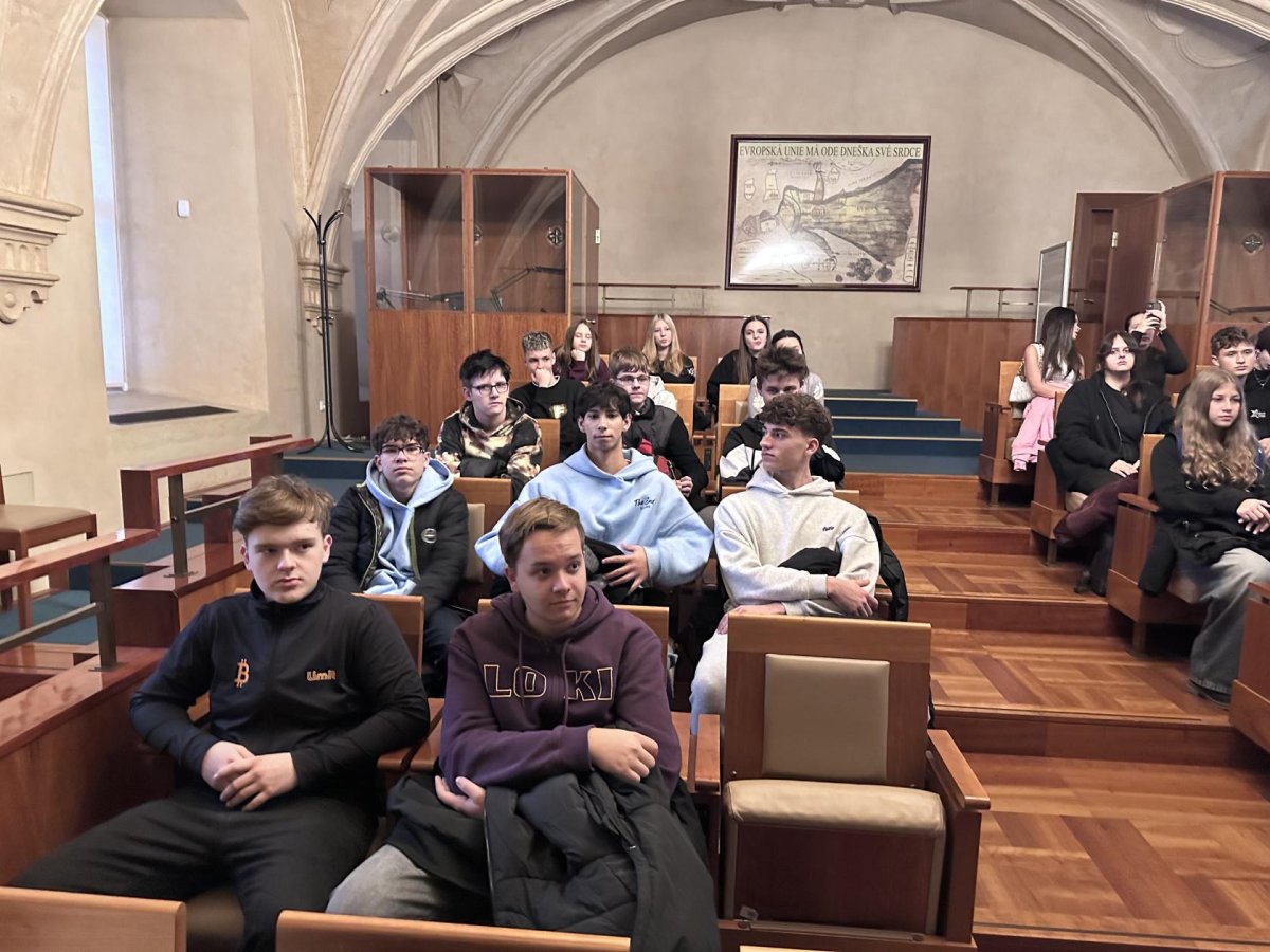 Žáci devátého ročníku se dnes vydali na exkurzi do hlavního města Prahy. V rámci programu navštívili Senát Parlamentu ČR a Poslaneckou sněmovnu, kde se seznámili s fungováním zákonodárné moci. Součástí exkurze byla také procházka historickým centrem Prahy. Žáci si prohlédli významné památky, jako jsou Prašná brána, Staroměstské náměstí s orlojem a Karlův most. Zajímavým zpestřením dne bylo setkání s několika známými osobnostmi. Žáci měli možnost potkat zpěváka Bena Cristovaa, poslance Ivana Bartoše a předsedu hnutí SPD Tomia Okamuru, který se s dětmi ochotně vyfotil a prohodil s nimi pár slov.