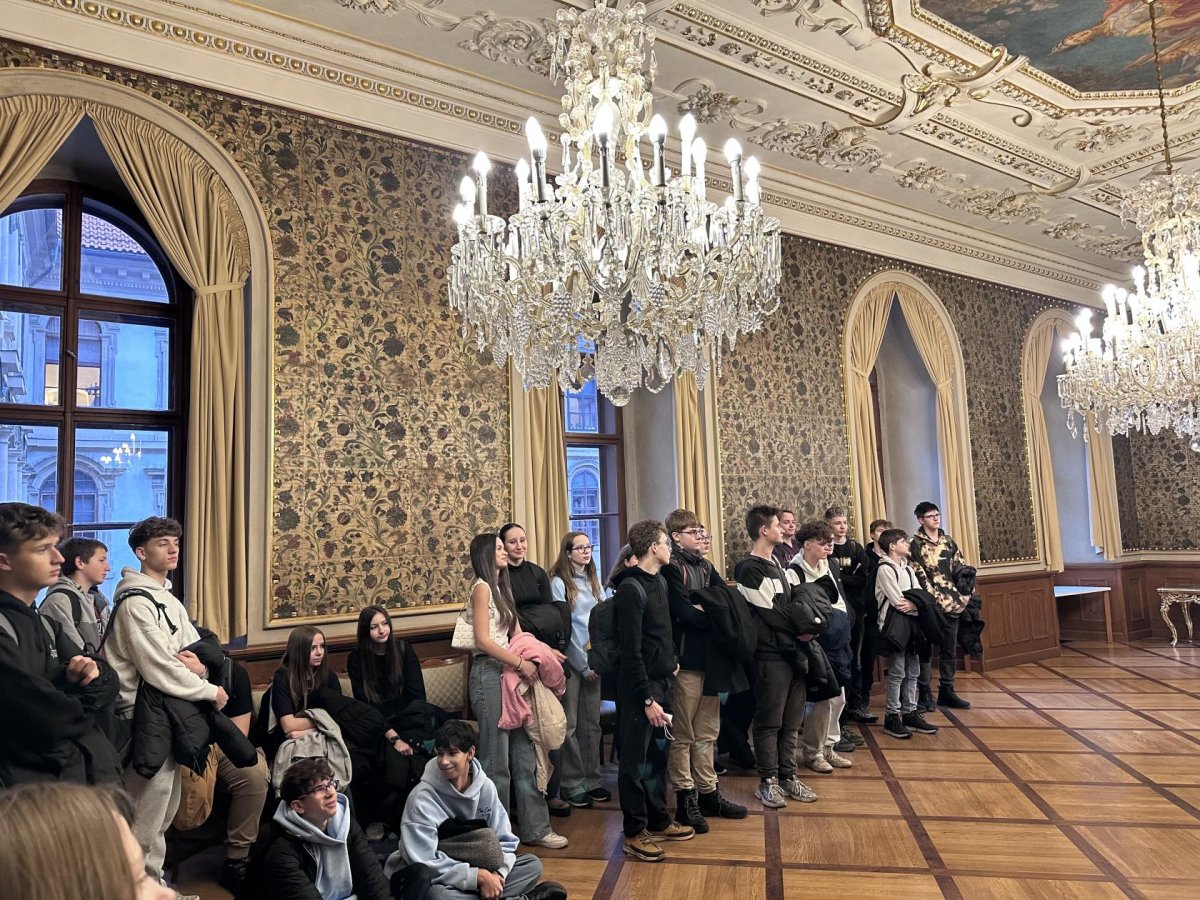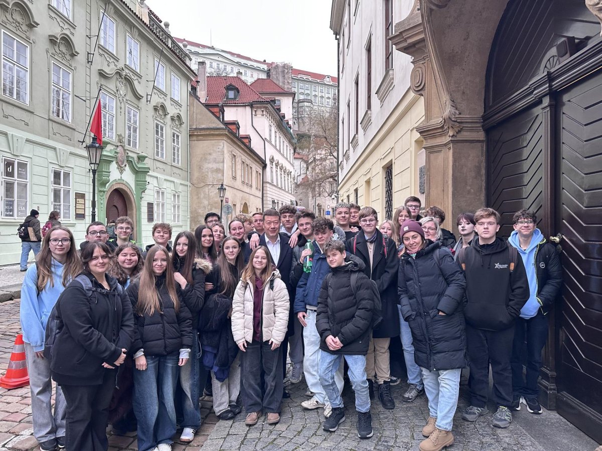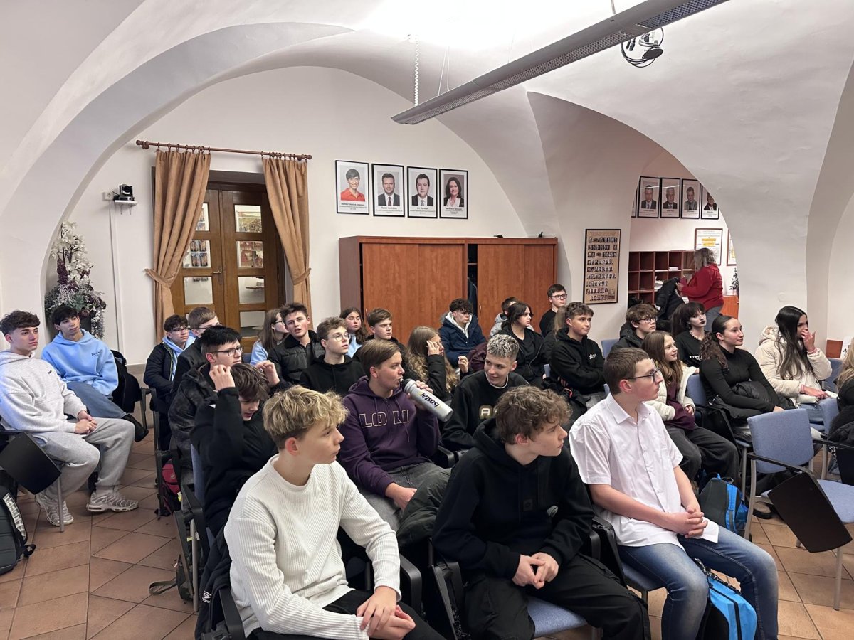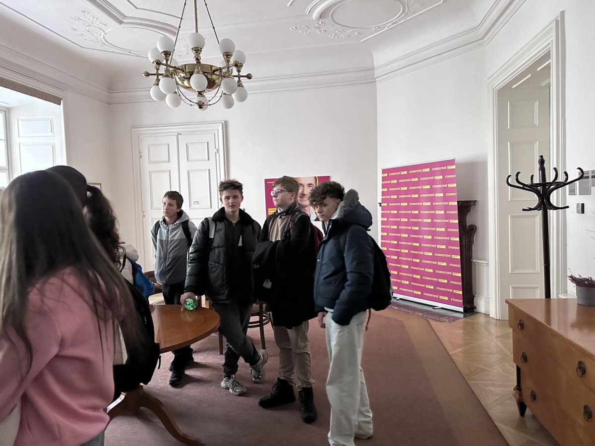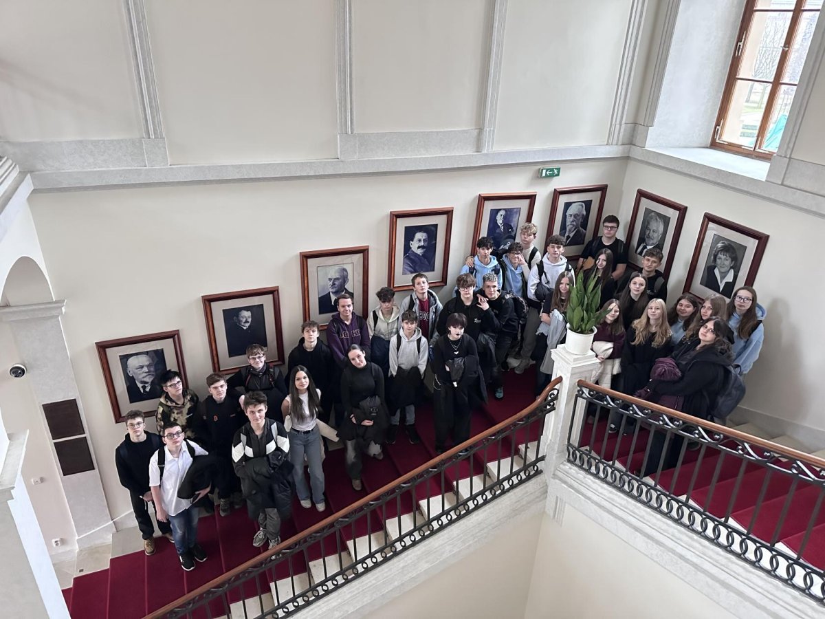 Žáci devátého ročníku se dnes vydali na exkurzi do hlavního města Prahy. V rámci programu navštívili Senát Parlamentu ČR a Poslaneckou sněmovnu, kde se seznámili s fungováním zákonodárné moci. Součástí exkurze byla také procházka historickým centrem Prahy. Žáci si prohlédli významné památky, jako jsou Prašná brána, Staroměstské náměstí s orlojem a Karlův most. Zajímavým zpestřením dne bylo setkání s několika známými osobnostmi. Žáci měli možnost potkat zpěváka Bena Cristovaa, poslance Ivana Bartoše a předsedu hnutí SPD Tomia Okamuru, který se s dětmi ochotně vyfotil a prohodil s nimi pár slov.