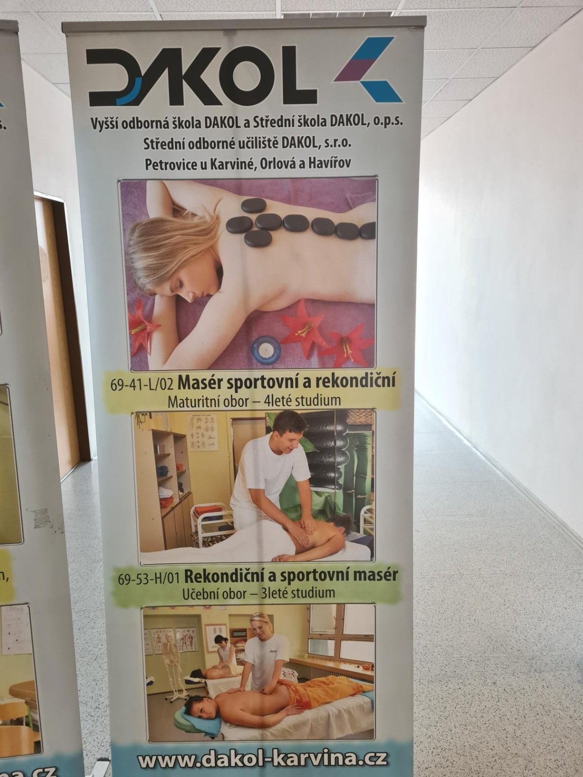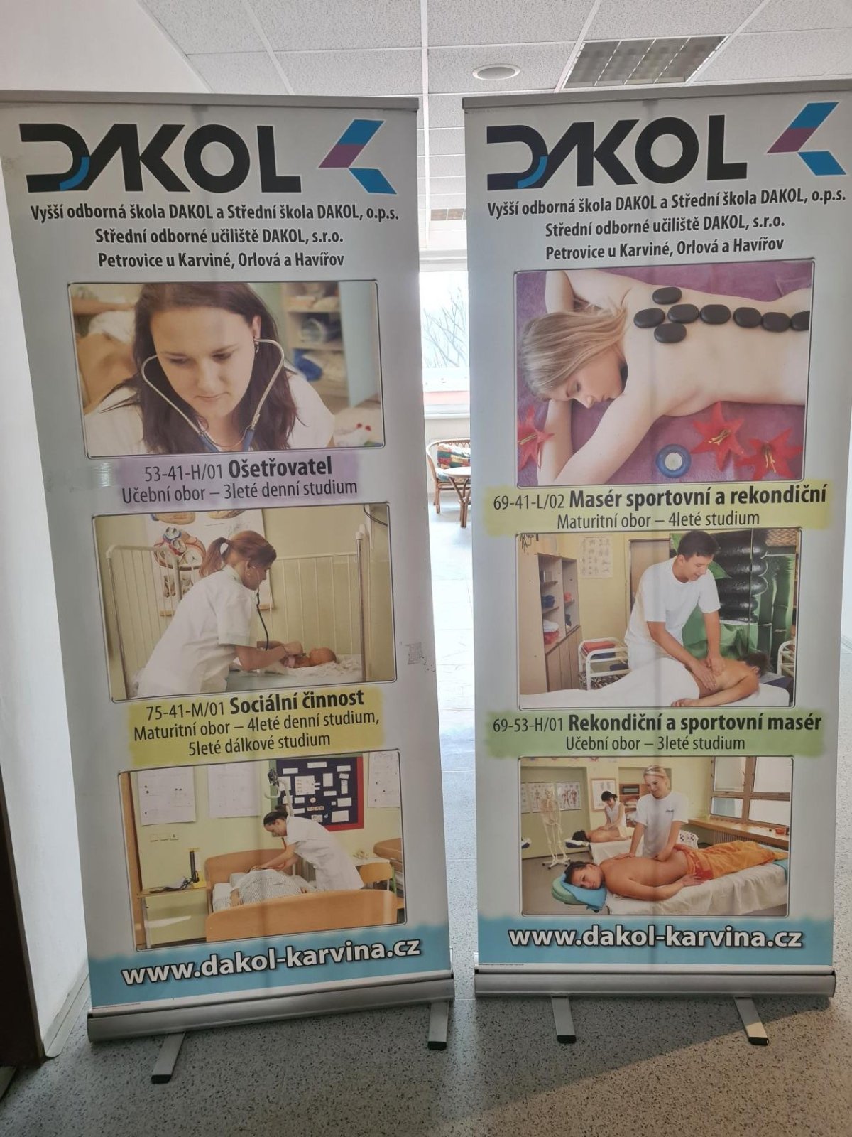 Naši deváťaci, kteří mají před sebou poslední a nejdůležitější školní rok na základní škole, měli možnost navštívit den otevřených dveří na Střední škole Dakol v Petrovicíh u Karviné. Na střední škole měli možnost vidět a vyzkoušet si aktivity nabízených studijních oborů. Celá exkurze byla velmi zajímavá a žáci si odnesli i malé drobnosti, které si mohli vyrobit. Pro osvěžení si mohli umíchat vlastní koktejl. Děkujeme všem pracovníkům školy Dakol, kteří pro nás tento den připravili.