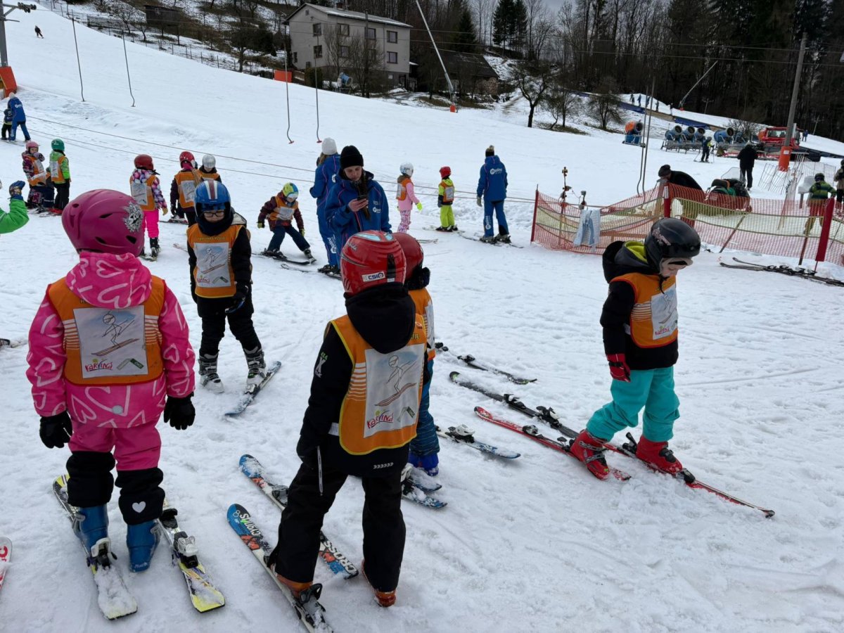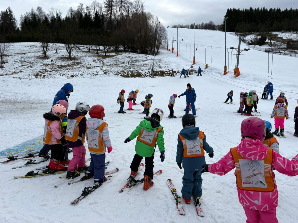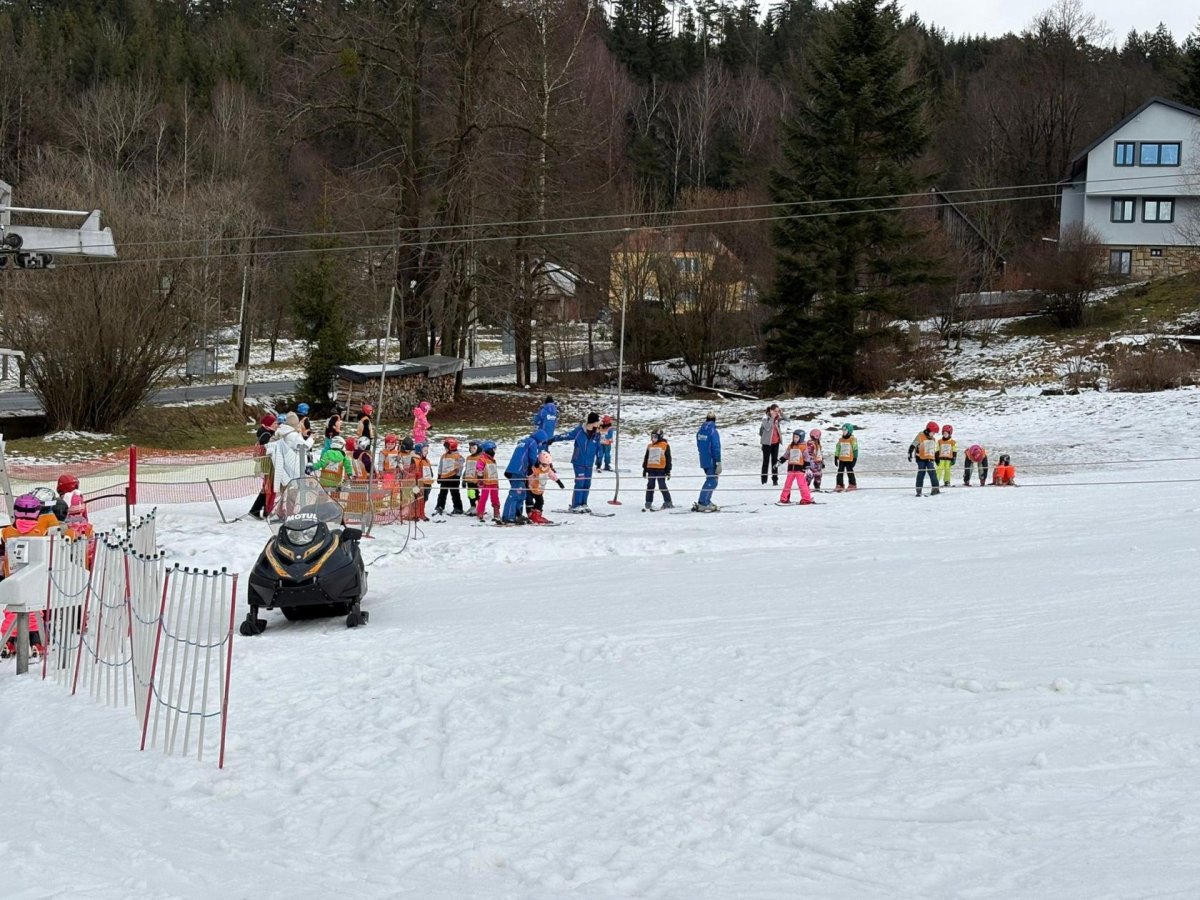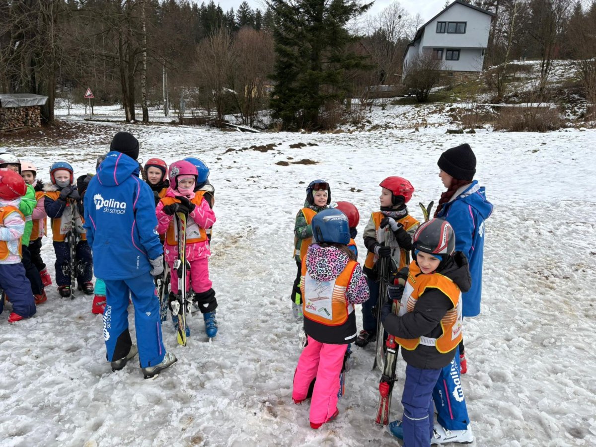 Naši prvňáčci dnes slavnostně zahájili lyžařskou výuku ve ski areálu na Bukovci. Díky podpoře Nadace OKD mají děti možnost osvojit si základy lyžování v krásném horském prostředí a pod vedením zkušených profesionálních instruktorů. Po celý týden budou žáci každé dopoledne vyjíždět autobusem přímo do areálu, kde je čeká nejen výuka správné techniky, ale také spousta radosti z pohybu na čerstvém vzduchu. Instruktoři se dětem věnují individuálně, dbají na bezpečnost a postupně je seznamují se vším, co k lyžování patří – od správného postoje až po první jisté obloučky na svahu. Pro mnohé z našich nejmenších je to vůbec první zkušenost s lyžemi, a tak nechybí nadšení, úsměvy ani zdravá dávka odhodlání. Věříme, že si celý týden užijí, odvezou si krásné zážitky a možná i novou celoživotní zálibu.