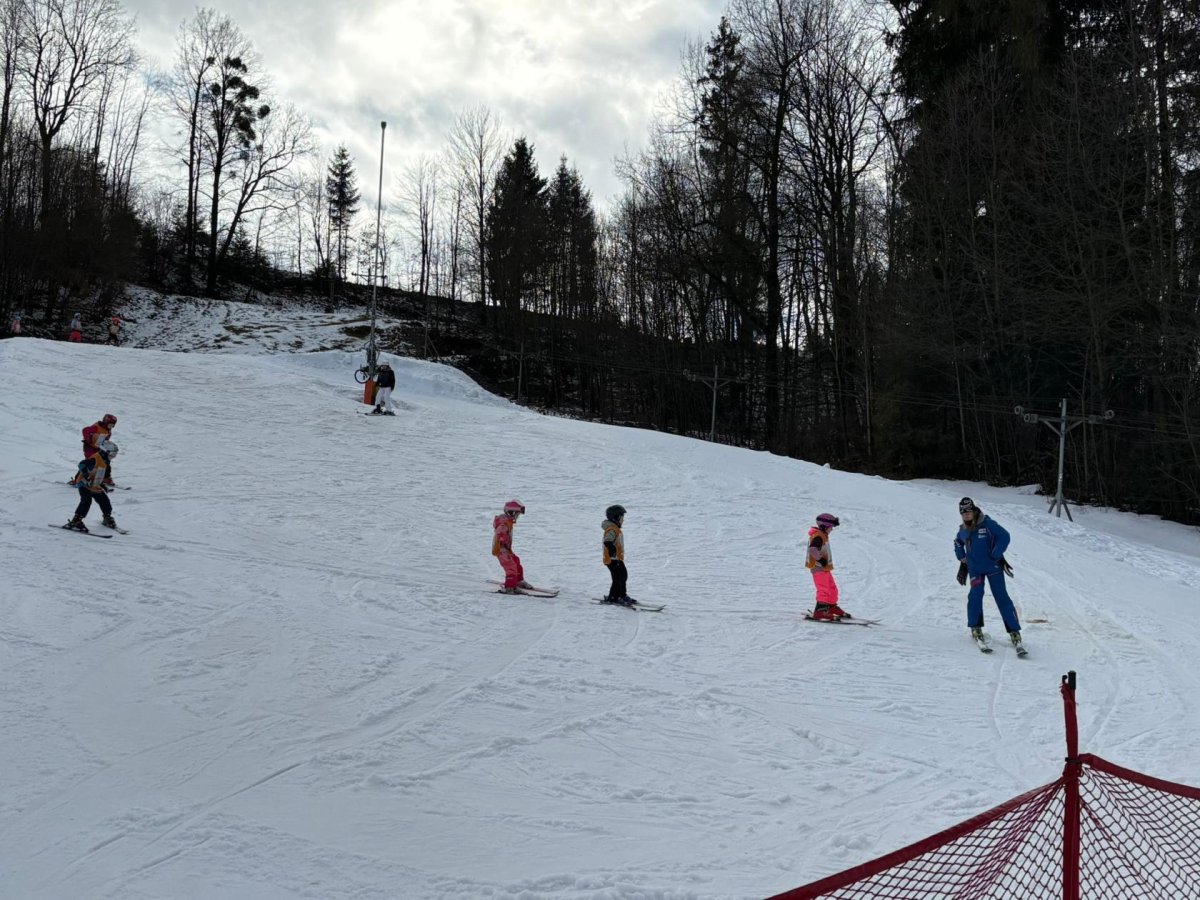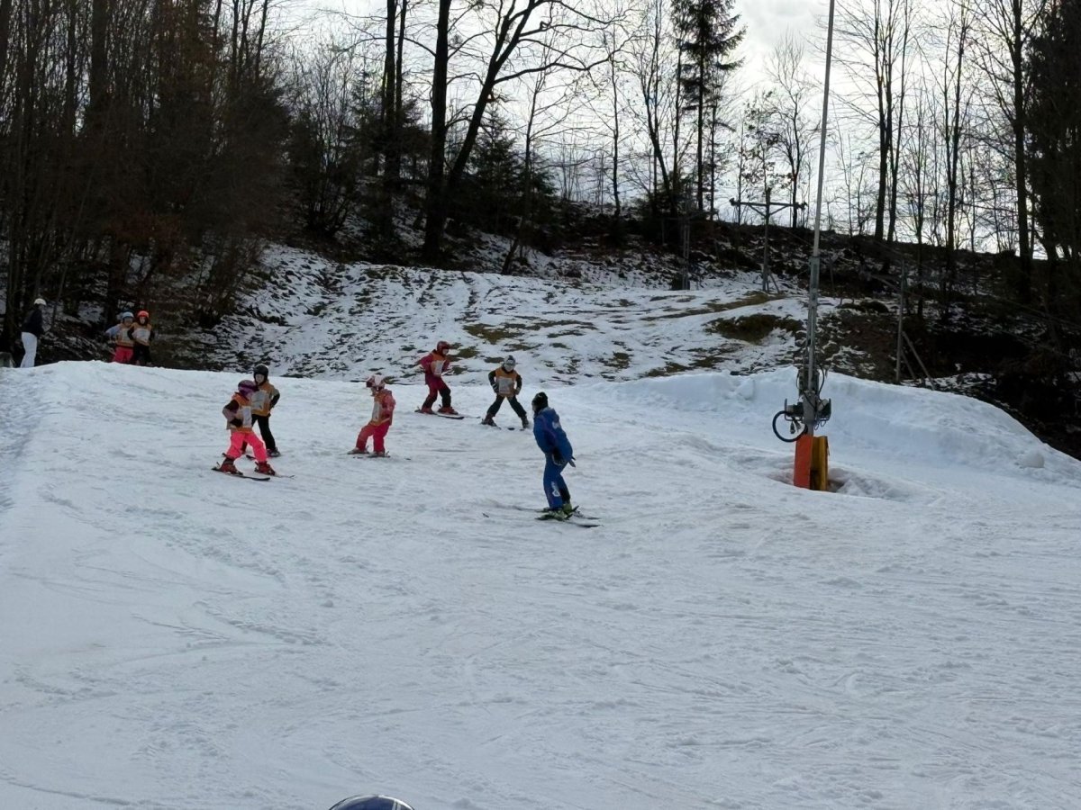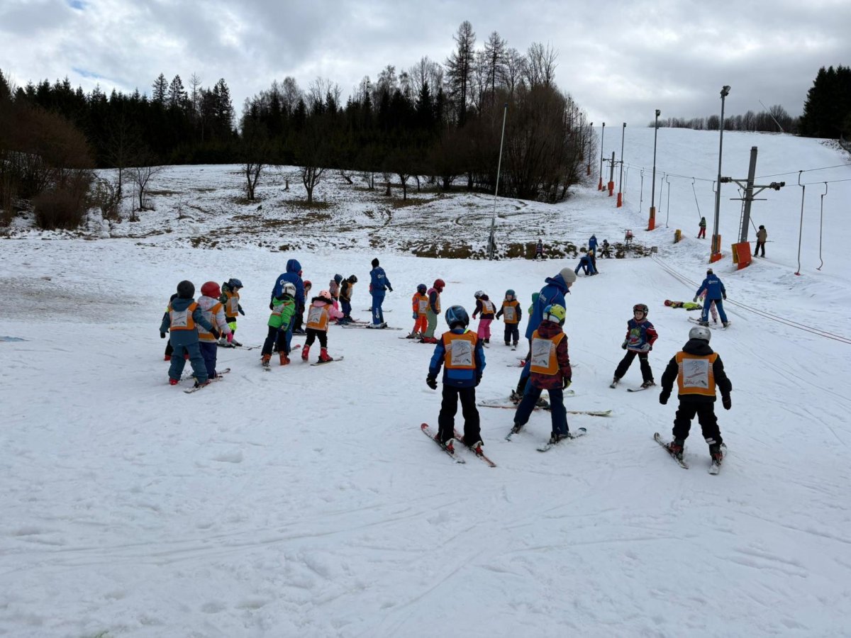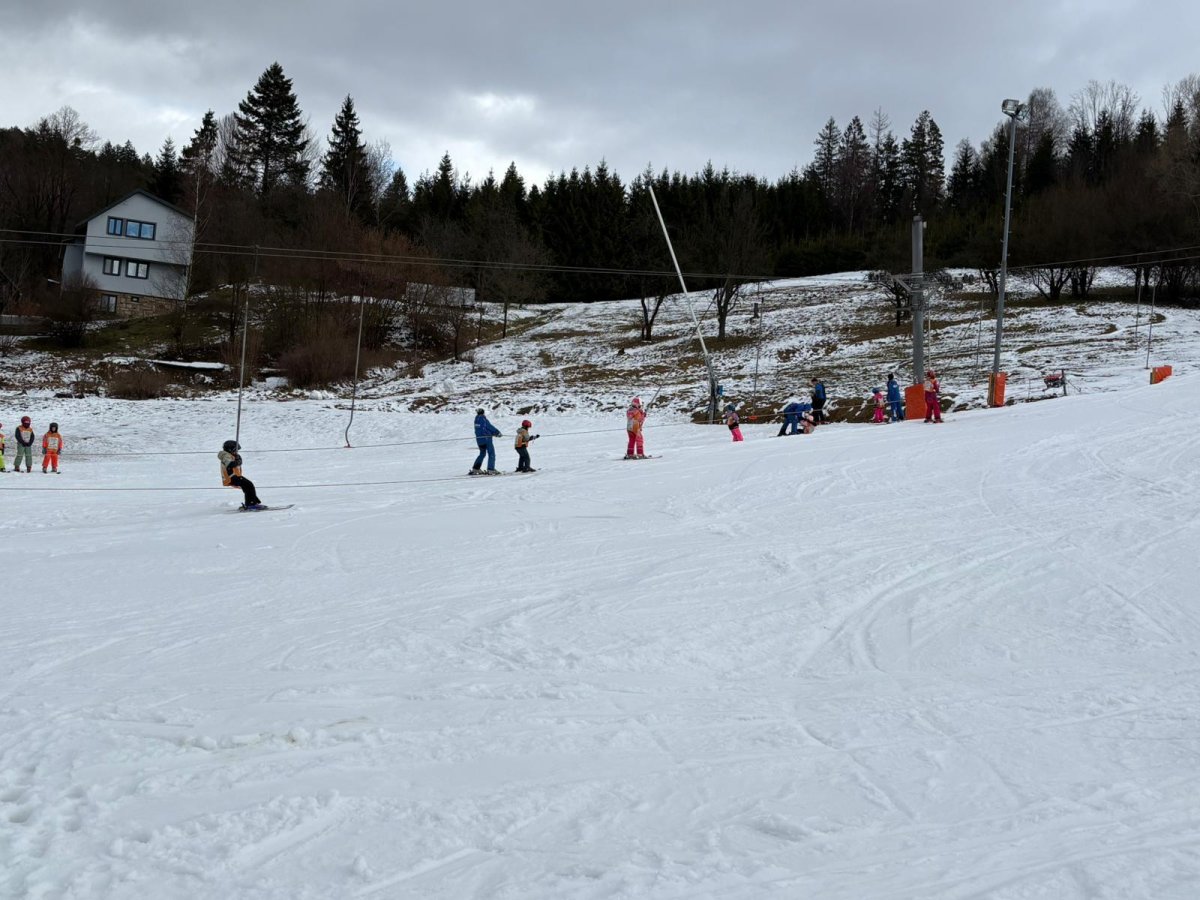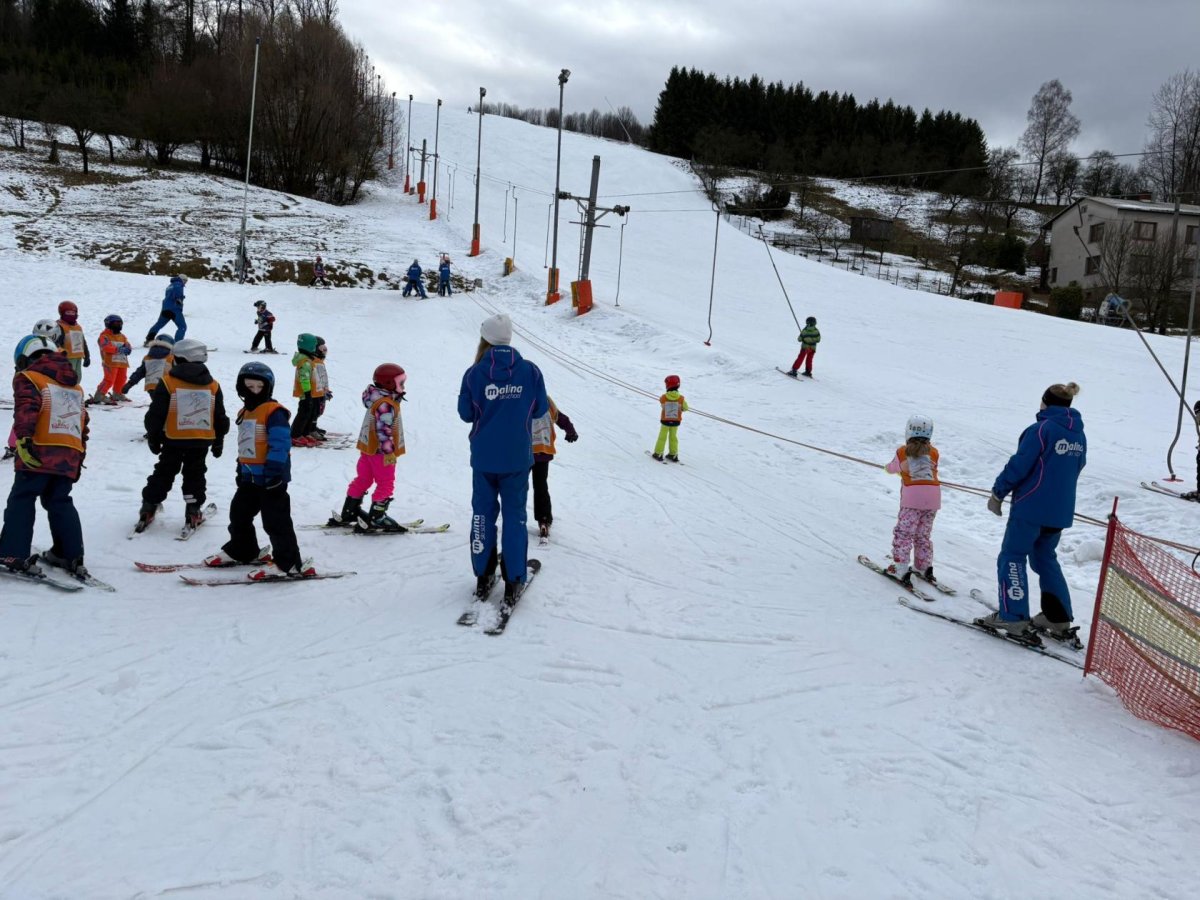 Naši prvňáčci dnes slavnostně zahájili lyžařskou výuku ve ski areálu na Bukovci. Díky podpoře Nadace OKD mají děti možnost osvojit si základy lyžování v krásném horském prostředí a pod vedením zkušených profesionálních instruktorů. Po celý týden budou žáci každé dopoledne vyjíždět autobusem přímo do areálu, kde je čeká nejen výuka správné techniky, ale také spousta radosti z pohybu na čerstvém vzduchu. Instruktoři se dětem věnují individuálně, dbají na bezpečnost a postupně je seznamují se vším, co k lyžování patří – od správného postoje až po první jisté obloučky na svahu. Pro mnohé z našich nejmenších je to vůbec první zkušenost s lyžemi, a tak nechybí nadšení, úsměvy ani zdravá dávka odhodlání. Věříme, že si celý týden užijí, odvezou si krásné zážitky a možná i novou celoživotní zálibu.