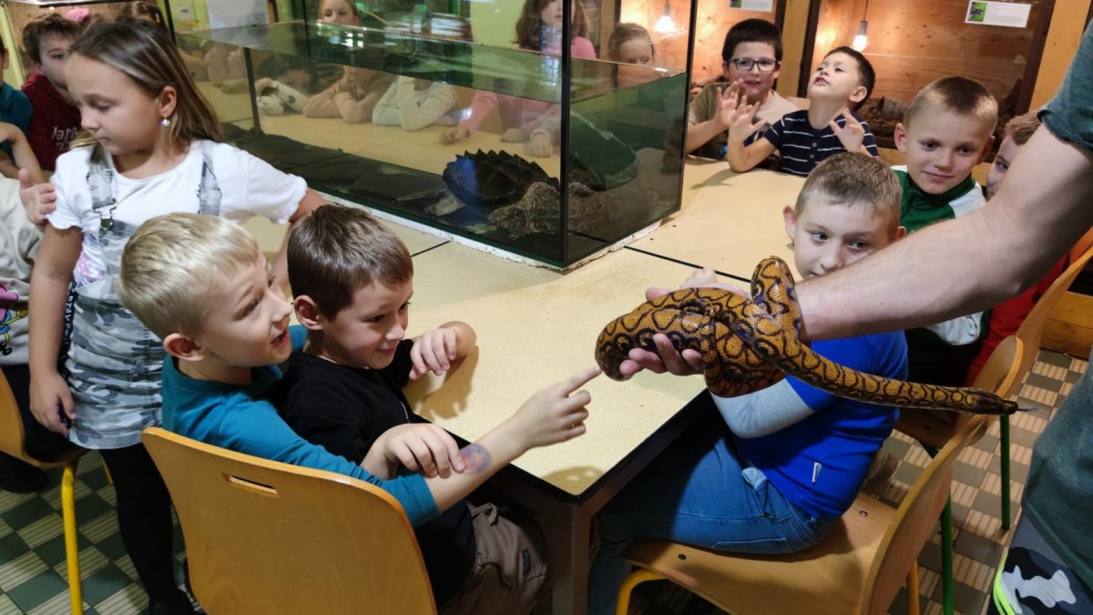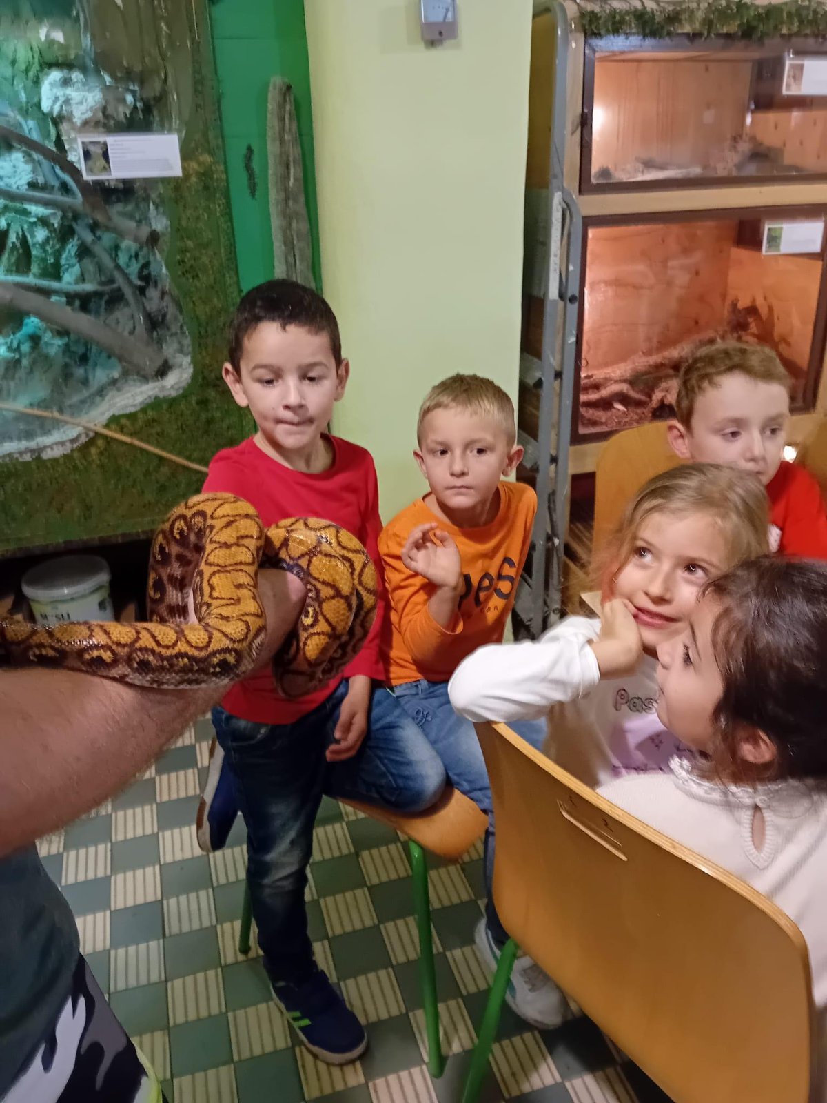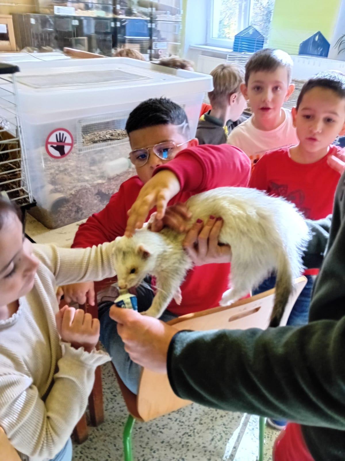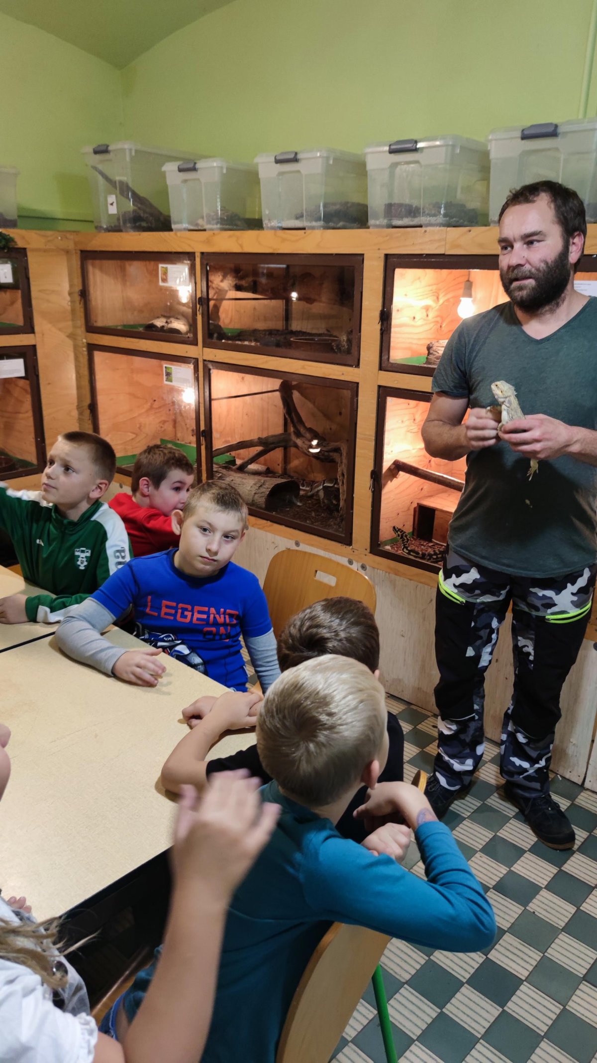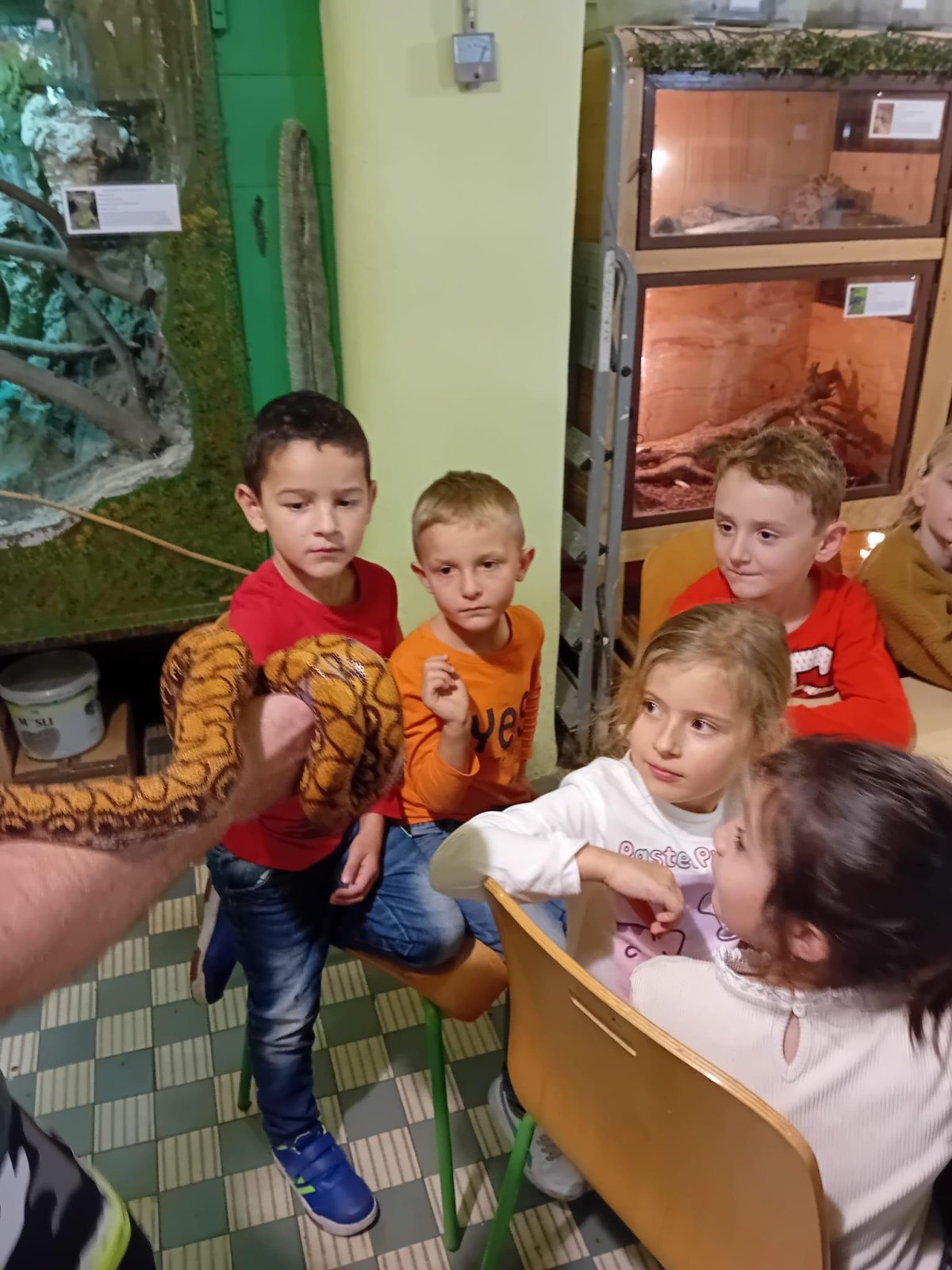 Školní družina se ve čtvrtek 16.10. vydala na výlet do Přírodovědné stanice. Výlet si moc užily děti z 1. a 2. třídy.. Zjistili jsme, jak smrdí fretka, pohladili jsme si skinny morče, činčilu i agamu a želvu. Někteří z nás poprvé překonali strach a pohladili hada.