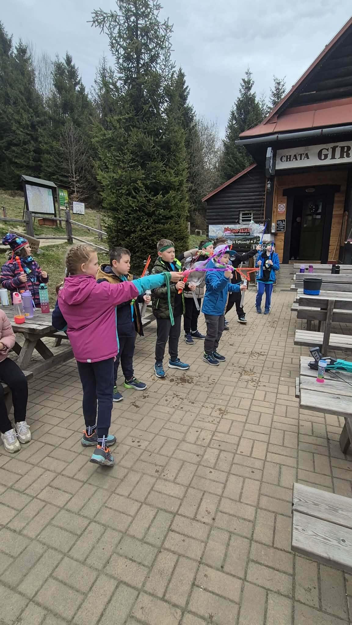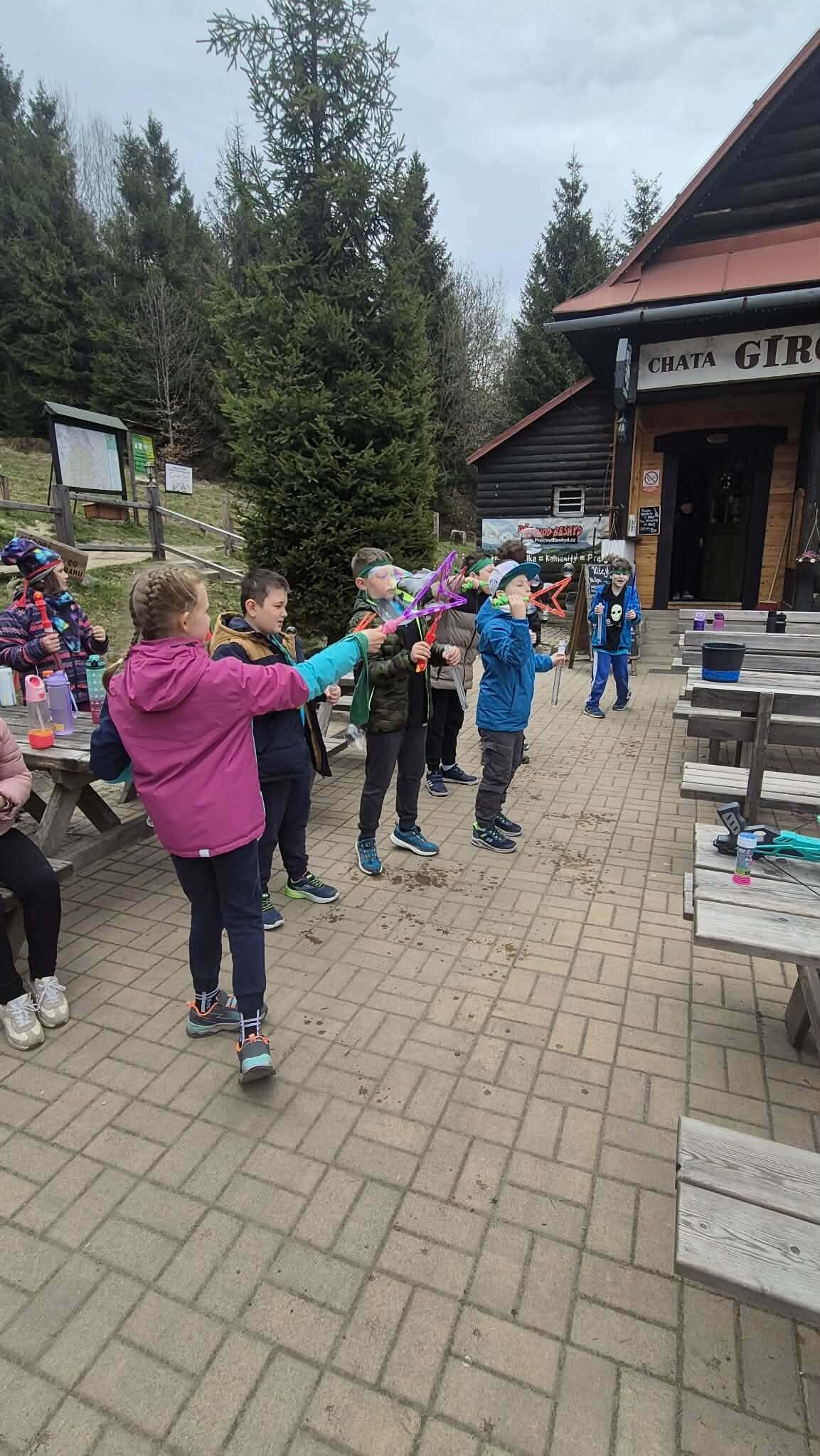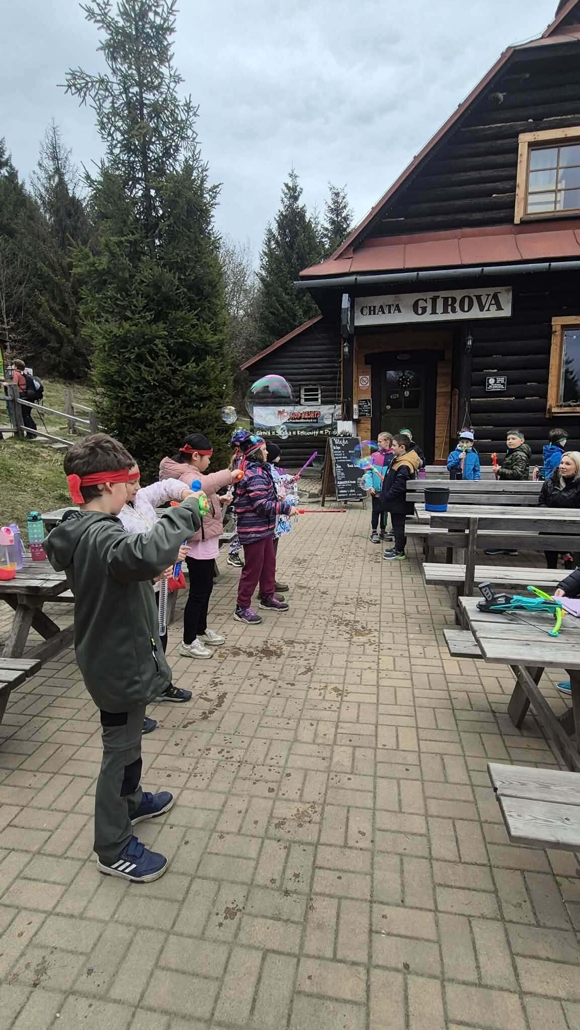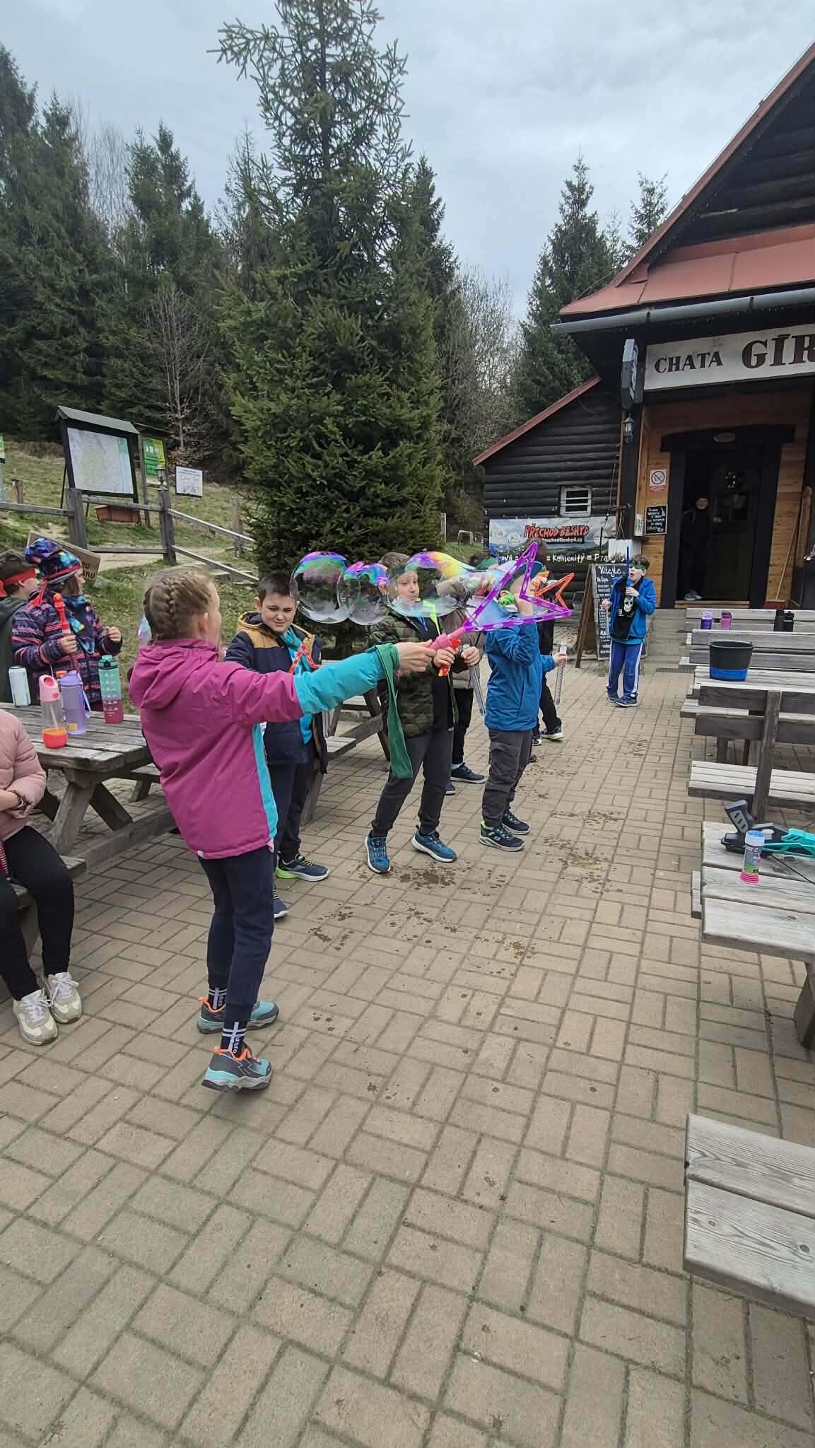 Druhý den ve škole v přírodě jsme si opět naplno užili krásnou přírodu, která nás tady obklopuje. Dopoledne i odpoledne jsme hráli různé týmové hry, při kterých jsme se hodně nasmáli a zároveň jsme se učili spolupracovat jako tým. Každá hra byla jiná a všechny nás bavily, protože jsme si mohli užít pohyb venku a čerstvý vzduch. Dnes jsme si zpestřili program také bublifukem. Dělali jsme velké i malé bubliny, které se krásně třpytily na slunci, a soutěžili jsme, komu vydrží nejdéle nebo kdo vytvoří největší bublinu. Byla to velká zábava a všichni jsme si to moc užili. Celkově je tady skvělá atmosféra. Všem chutná jídlo a celý pobyt si moc užíváme. Každý den je plný zážitků a už teď se těšíme, co nás čeká dál.