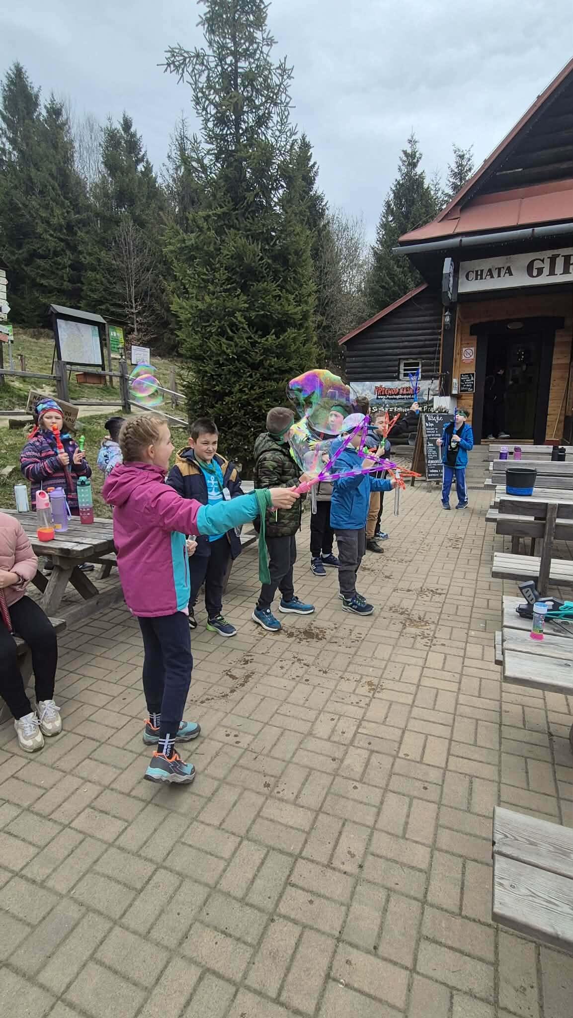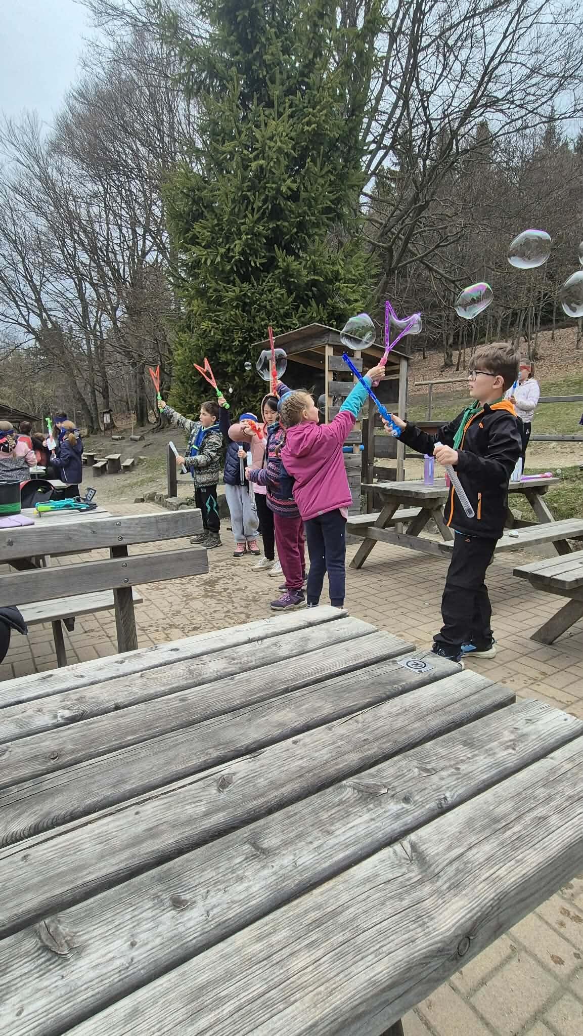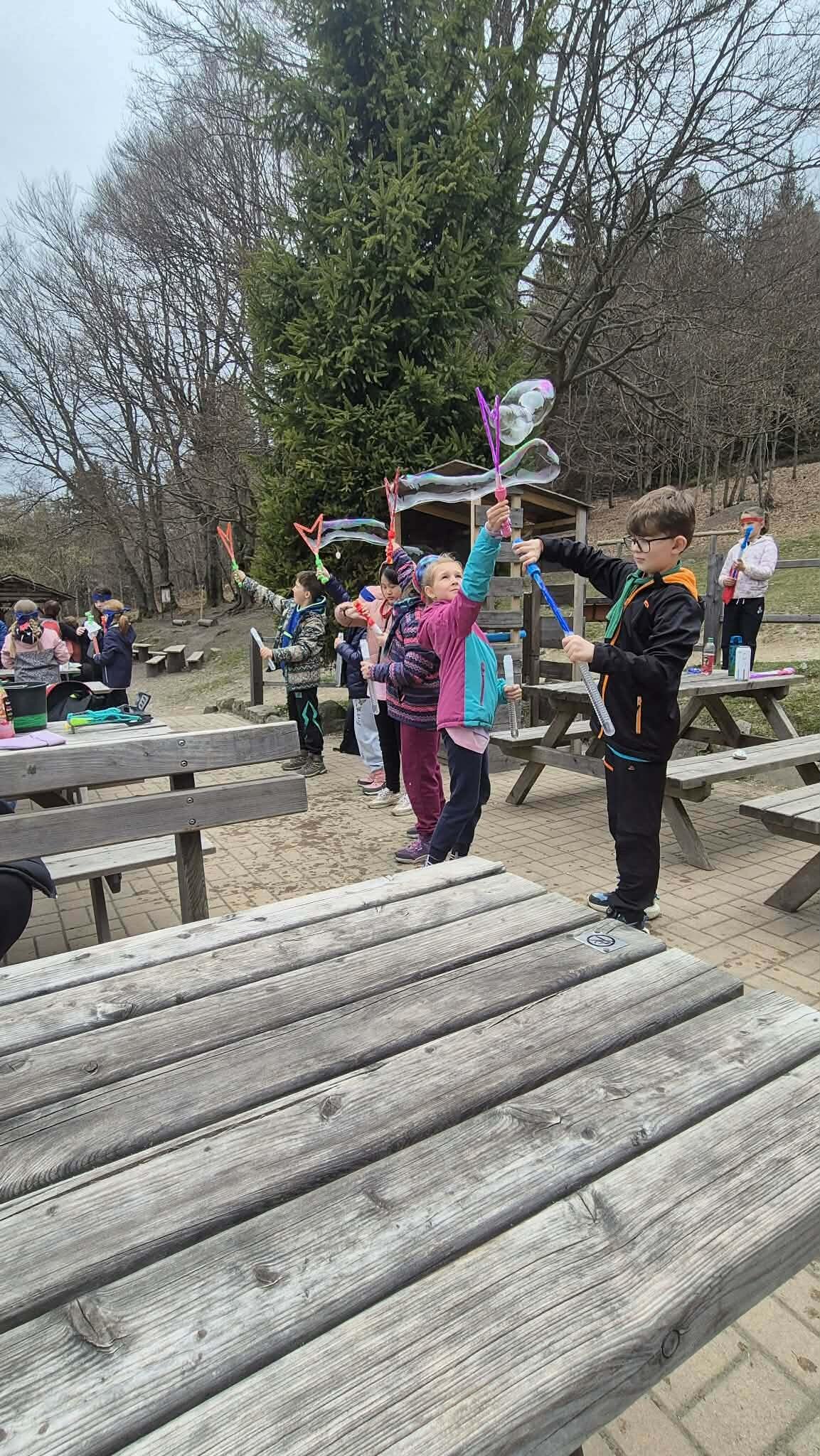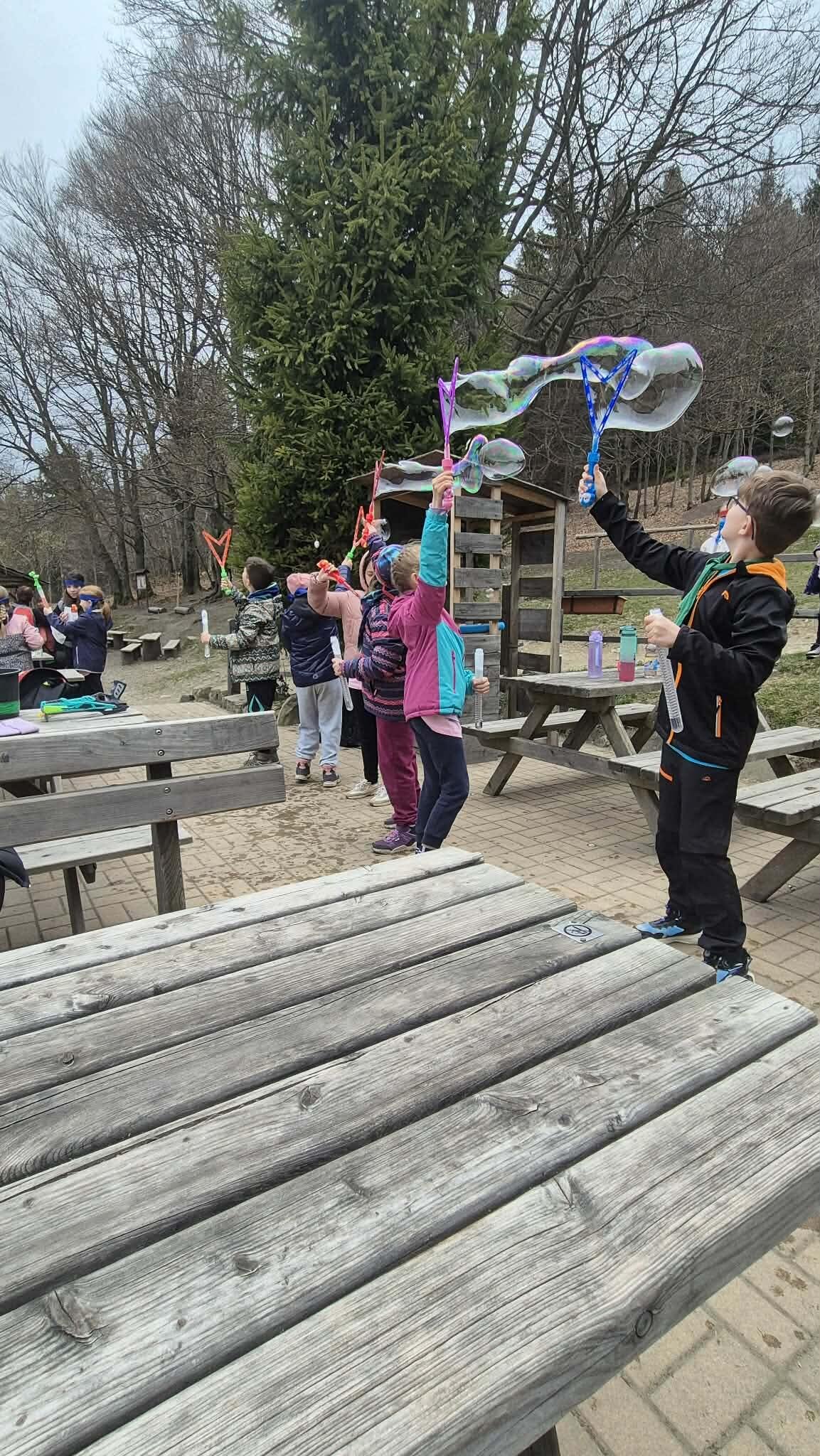 Druhý den ve škole v přírodě jsme si opět naplno užili krásnou přírodu, která nás tady obklopuje. Dopoledne i odpoledne jsme hráli různé týmové hry, při kterých jsme se hodně nasmáli a zároveň jsme se učili spolupracovat jako tým. Každá hra byla jiná a všechny nás bavily, protože jsme si mohli užít pohyb venku a čerstvý vzduch. Dnes jsme si zpestřili program také bublifukem. Dělali jsme velké i malé bubliny, které se krásně třpytily na slunci, a soutěžili jsme, komu vydrží nejdéle nebo kdo vytvoří největší bublinu. Byla to velká zábava a všichni jsme si to moc užili. Celkově je tady skvělá atmosféra. Všem chutná jídlo a celý pobyt si moc užíváme. Každý den je plný zážitků a už teď se těšíme, co nás čeká dál.