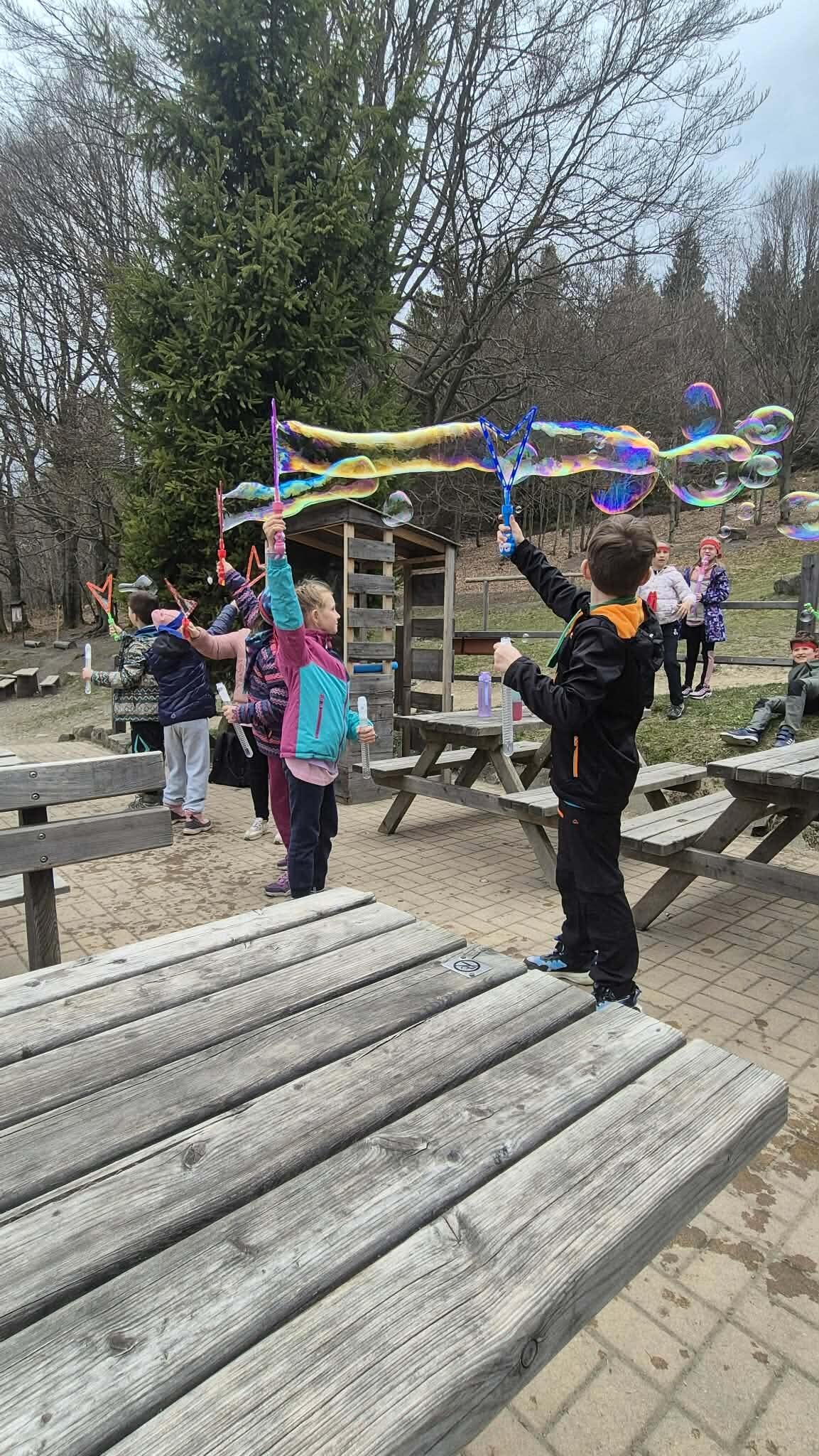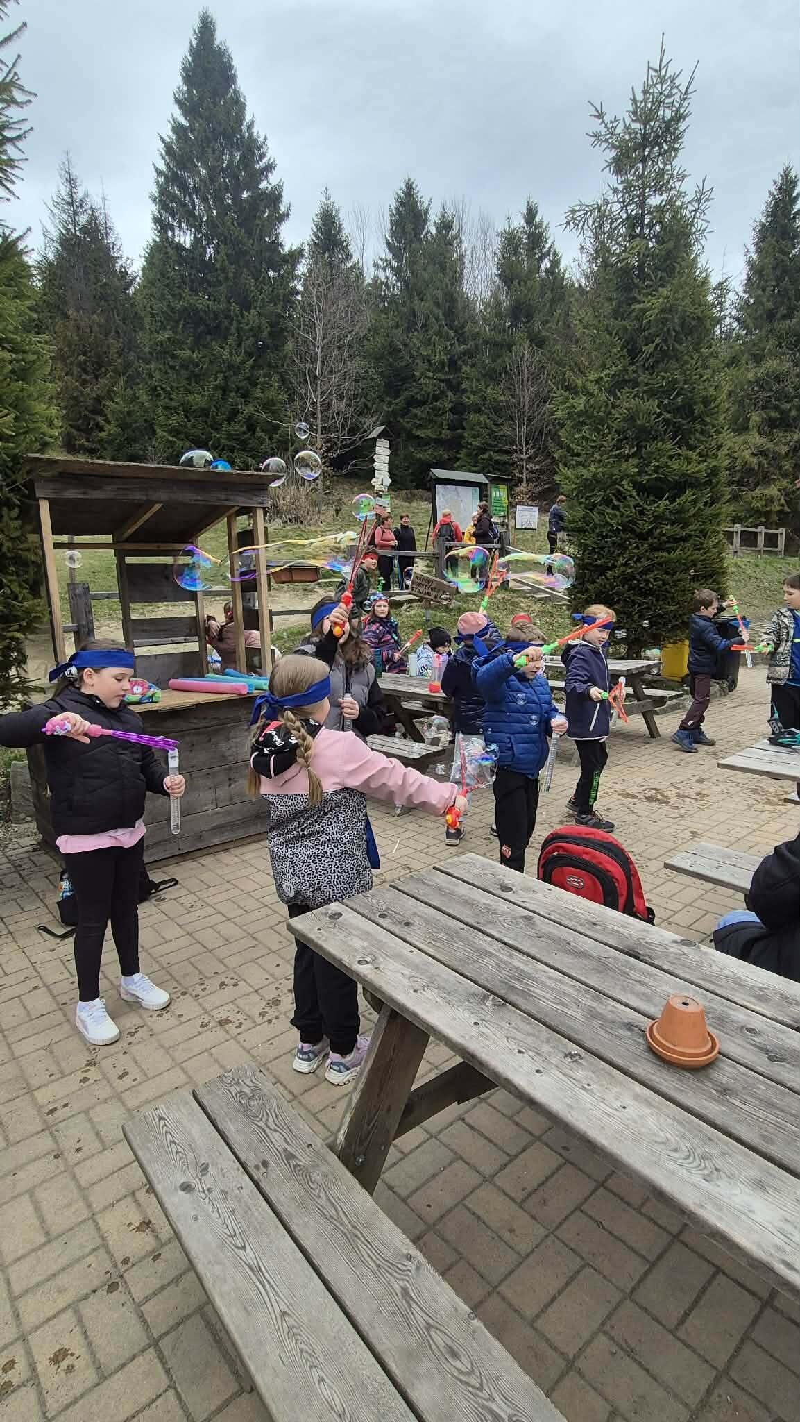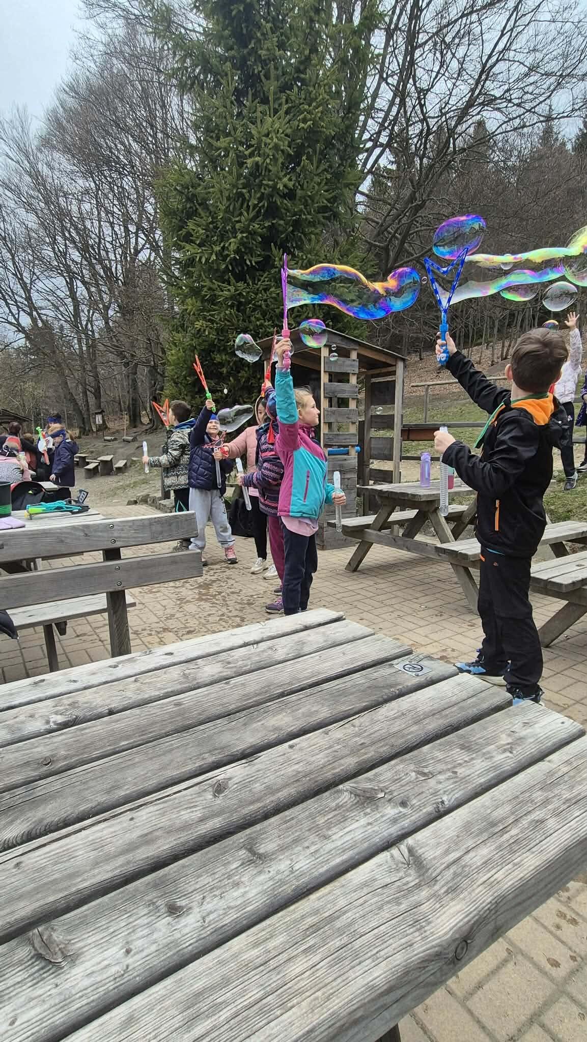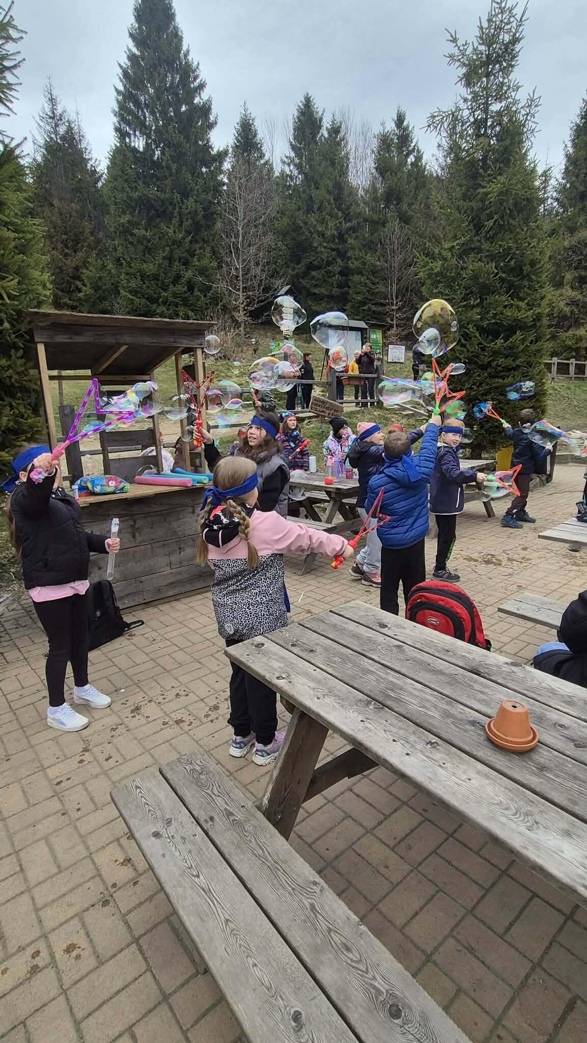 Druhý den ve škole v přírodě jsme si opět naplno užili krásnou přírodu, která nás tady obklopuje. Dopoledne i odpoledne jsme hráli různé týmové hry, při kterých jsme se hodně nasmáli a zároveň jsme se učili spolupracovat jako tým. Každá hra byla jiná a všechny nás bavily, protože jsme si mohli užít pohyb venku a čerstvý vzduch. Dnes jsme si zpestřili program také bublifukem. Dělali jsme velké i malé bubliny, které se krásně třpytily na slunci, a soutěžili jsme, komu vydrží nejdéle nebo kdo vytvoří největší bublinu. Byla to velká zábava a všichni jsme si to moc užili. Celkově je tady skvělá atmosféra. Všem chutná jídlo a celý pobyt si moc užíváme. Každý den je plný zážitků a už teď se těšíme, co nás čeká dál.