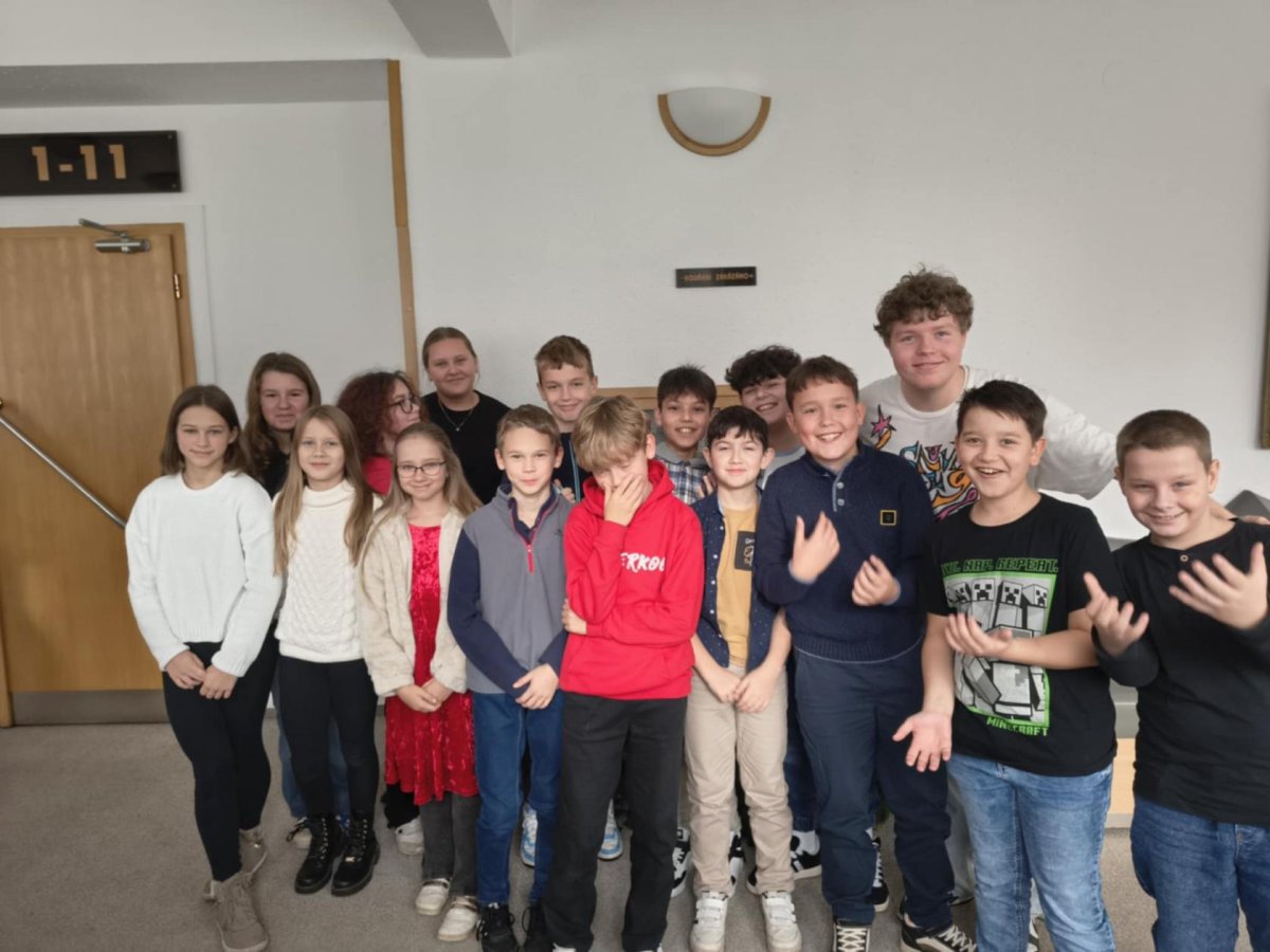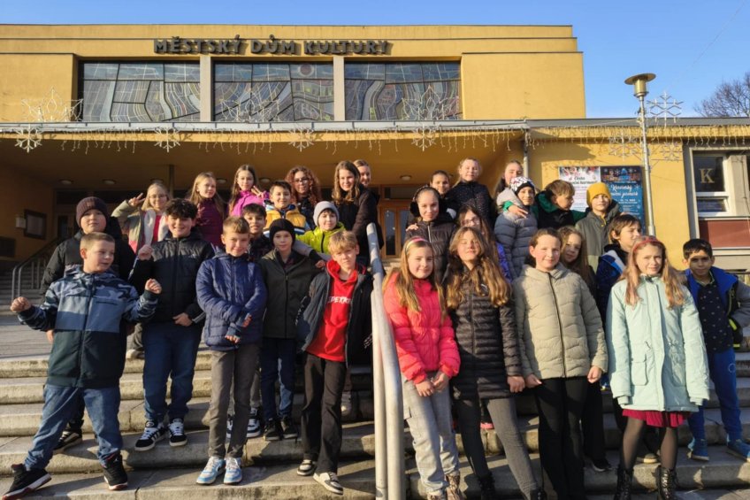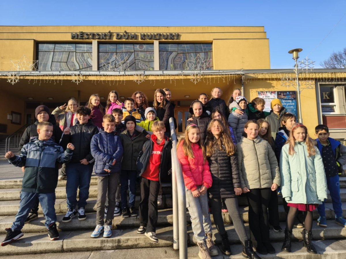 V úterý 11. 11. 2025 nebylo pro žáky 5.A a 5.B jen tak obyčejné datum! Místo lavic a tabulí je totiž čekal Městský dům kultury a pořádná lekce ze života, na kterou se jen tak nezapomene. Společně shlédli divadelní hit s názvem „Trapas nepřežiju… aneb ten řízek nezvedej!“