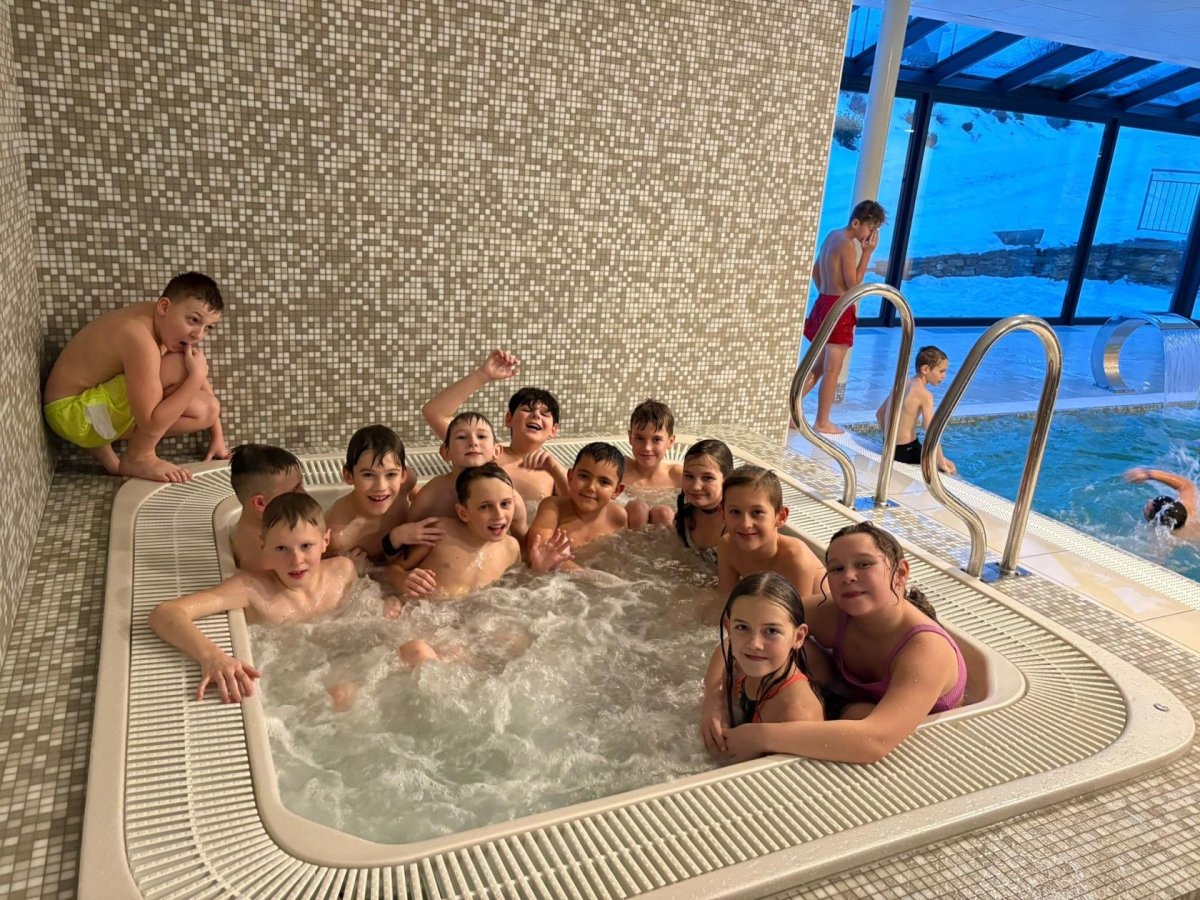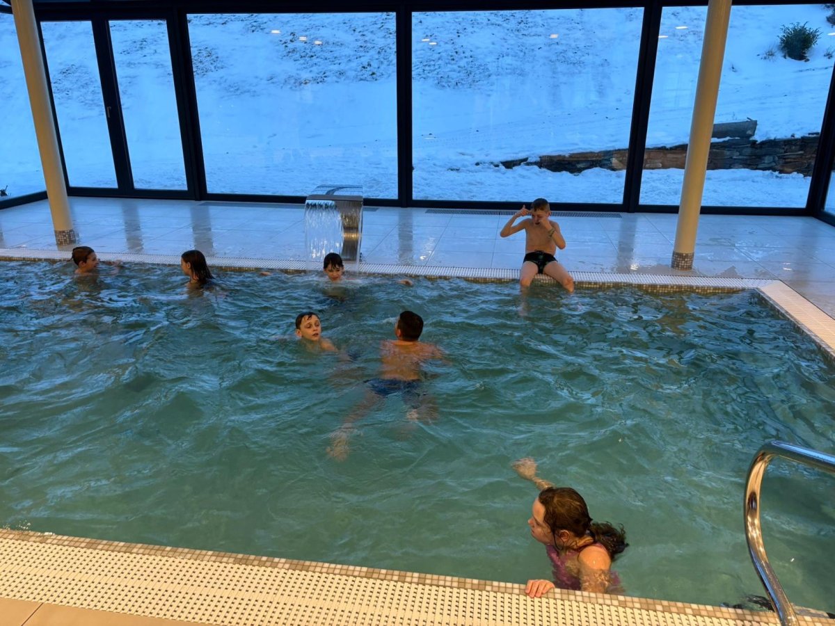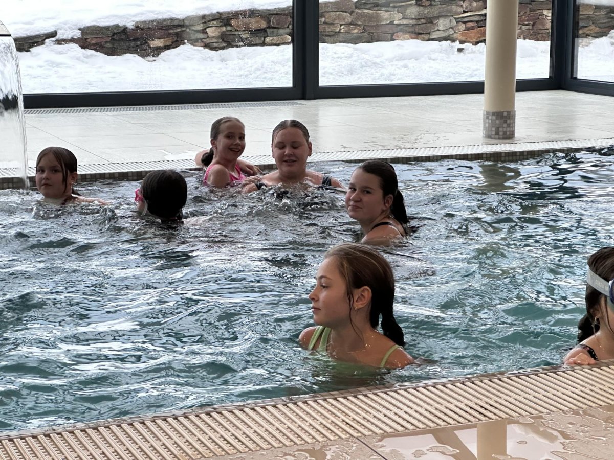 Dnešní půlden jsme strávili na sjezdovce, kde jsme pilně trénovali lyžařskou techniku. Učili jsme se správně používat lyžařské hůlky, které se občas chovaly, jako by měly vlastní hlavu, a zkoušeli jsme různé lyžařské triky – některé vypadaly lépe v představách než ve skutečnosti. Po obědě jsme dostali volné odpoledne, a tak jsme zamířili do bazénu a vířivky. Bubliny masírovaly unavené svaly, my jsme si připadali jako v lázních a nohy konečně pochopily, že zítřek zase bude o lyžích.