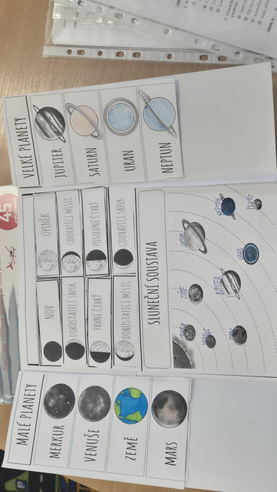 Ve čtvrtek 5.února se děti ze 3.A a ze 3.B propojily v celodenním projektu Vesmír.Dozvěděly se spoustu zajímavostí,prozkoumaly planety Sluneční soustavy,zjistily,co jsou asteroidy,meteority i černé díry.????Všechny své poznatky děti skvěle zaznamenaly do vesmírného lapbooku.Každý dostal certifikát vesmírného průzkumníka.???Za odměnu pojedeme ve středu 11.2.do ostravského planetária.