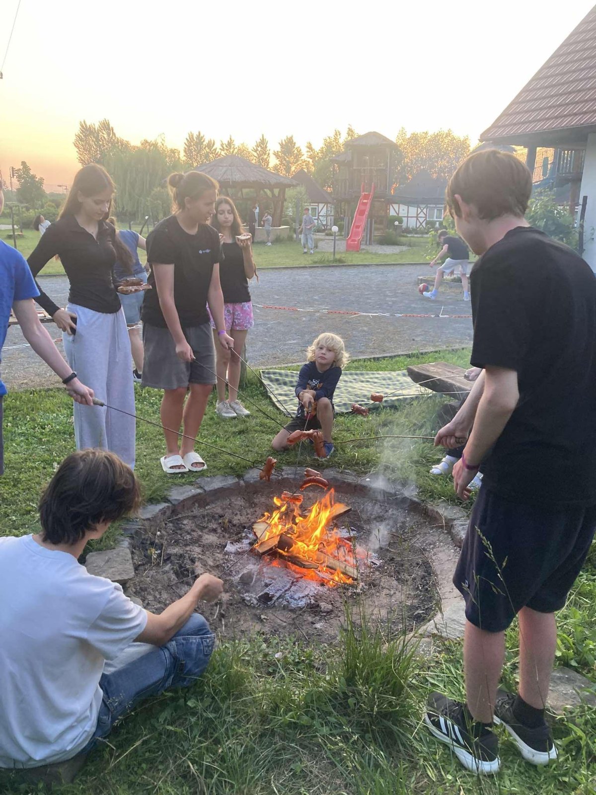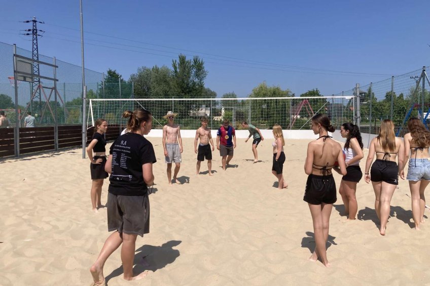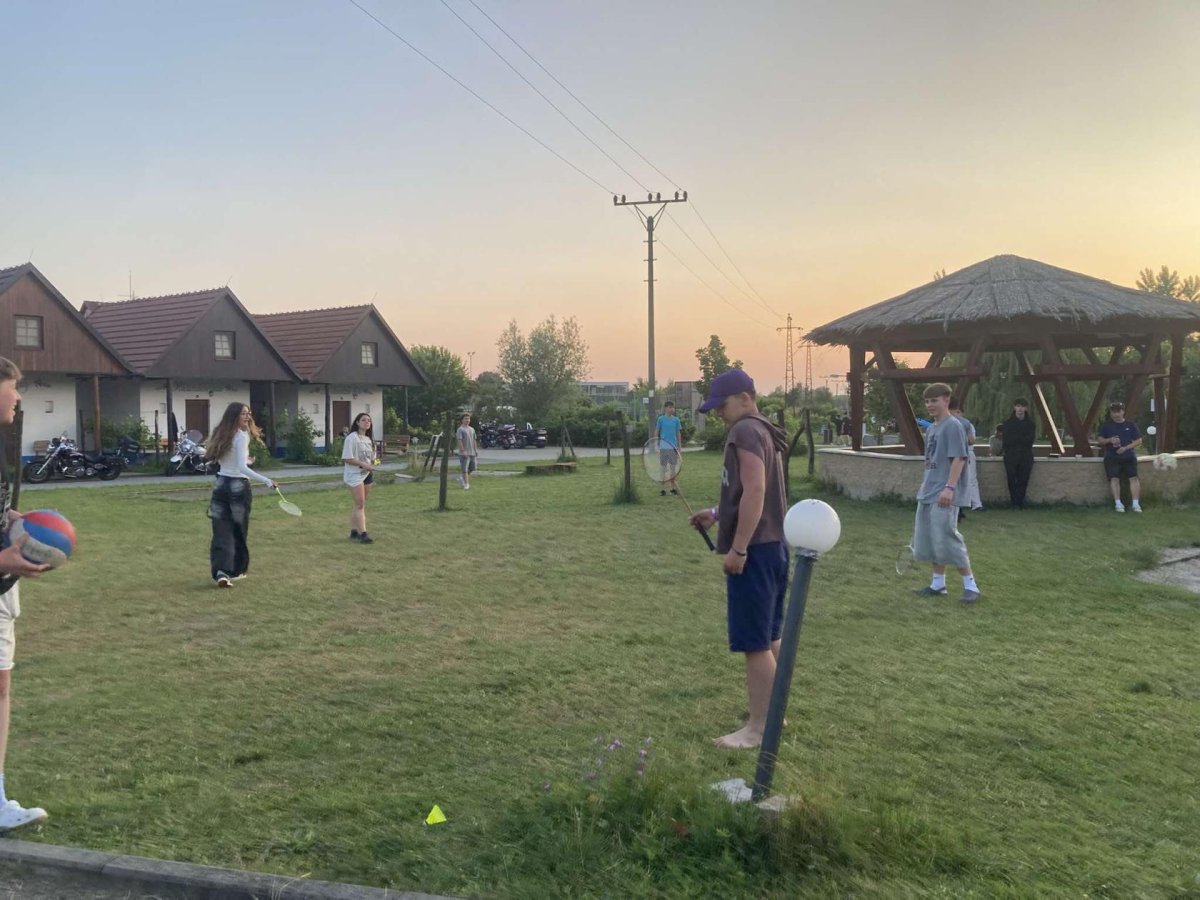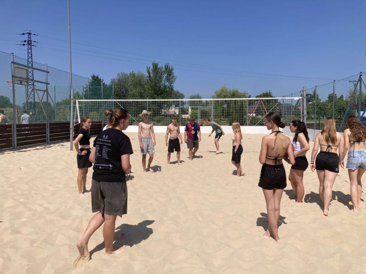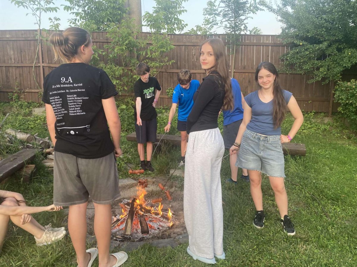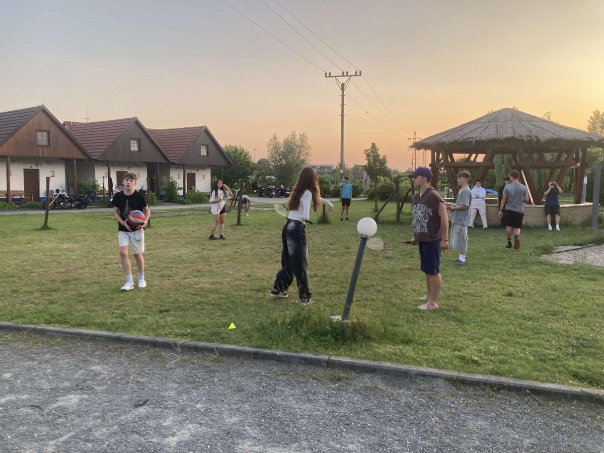 Po včerejších fenomenálních sportovních výkonech jsme se dneska vyspali skutečně “do růžova”. Snídaně byly pohodové, dlouhé, některé i na teráskách, sluníčko nás k tomu lákalo. Věříme, že náš program na závěrečné rozloučení s učiteli a žáky bude senzační, takže “zase výcvik” pod heslem “těžko na cvičišti, lehko na bojišti”. Odpoledne jsme ovládli místní sportoviště, předvedli jsme se v golfu, beach volejbalu, basketbalu i fotbalu. K večeři jsme si opekli párečky na ohni a došlo i na zpěv s kytarou.