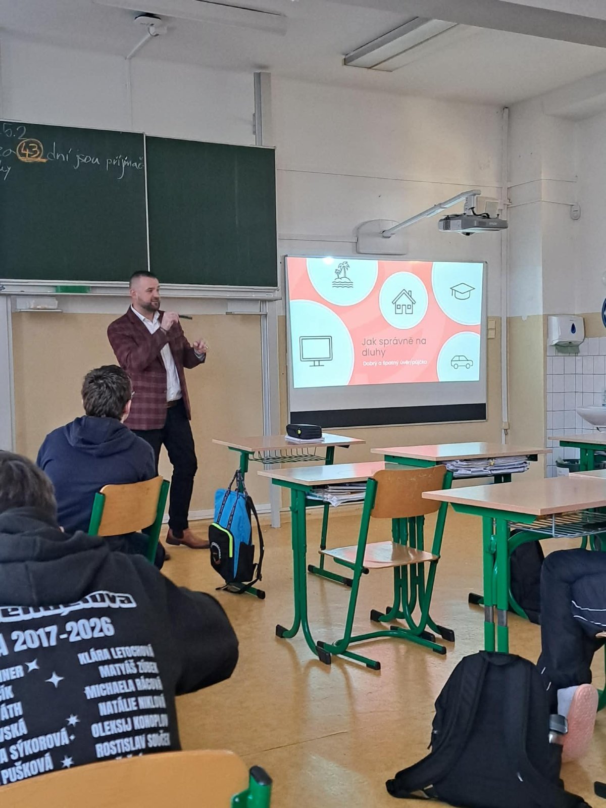 Dnes v rámci dlouhodobé spolupráce proběhla pro žáky deváté třídy hodina finanční gramotnosti. Tato vzdělávací aktivita byla zaměřena na rozvoj praktických dovedností v oblasti hospodaření s penězi, plánování osobního rozpočtu a zodpovědného finančního rozhodování. Žáci se během hodiny seznámili se základními principy správného nakládání s finančními prostředky, učili se rozlišovat mezi nezbytnými a zbytnými výdaji, diskutovali o významu tvorby finanční rezervy a o rizicích spojených s nevýhodnými půjčkami či neuváženým zadlužením. Důraz byl kladen také na prevenci finančních obtíží v budoucím osobním i profesním životě. Cílem této lekce bylo podpořit u žáků odpovědný přístup k financím a poskytnout jim praktické informace, které budou moci využít v běžném životě. Věříme, že získané znalosti přispějí k jejich větší finanční samostatnosti a jistotě při budoucím rozhodování.